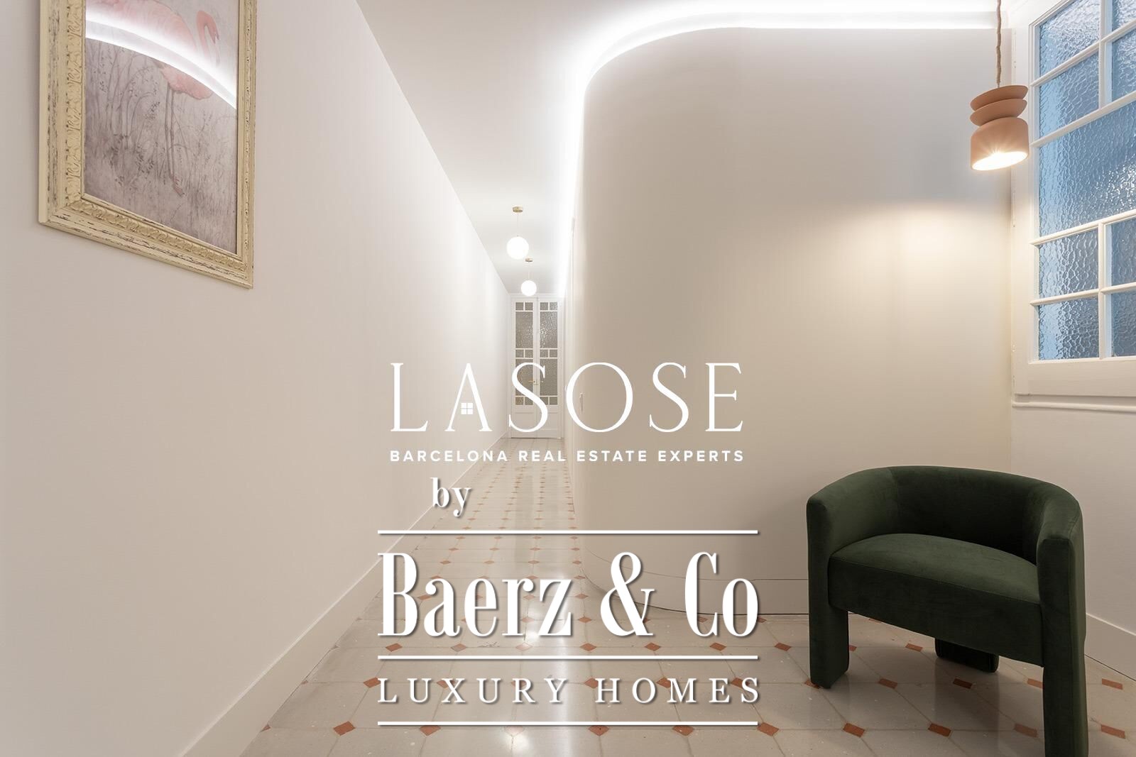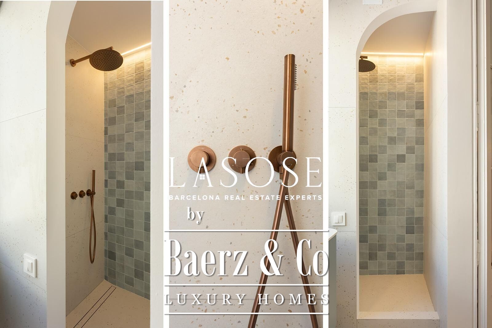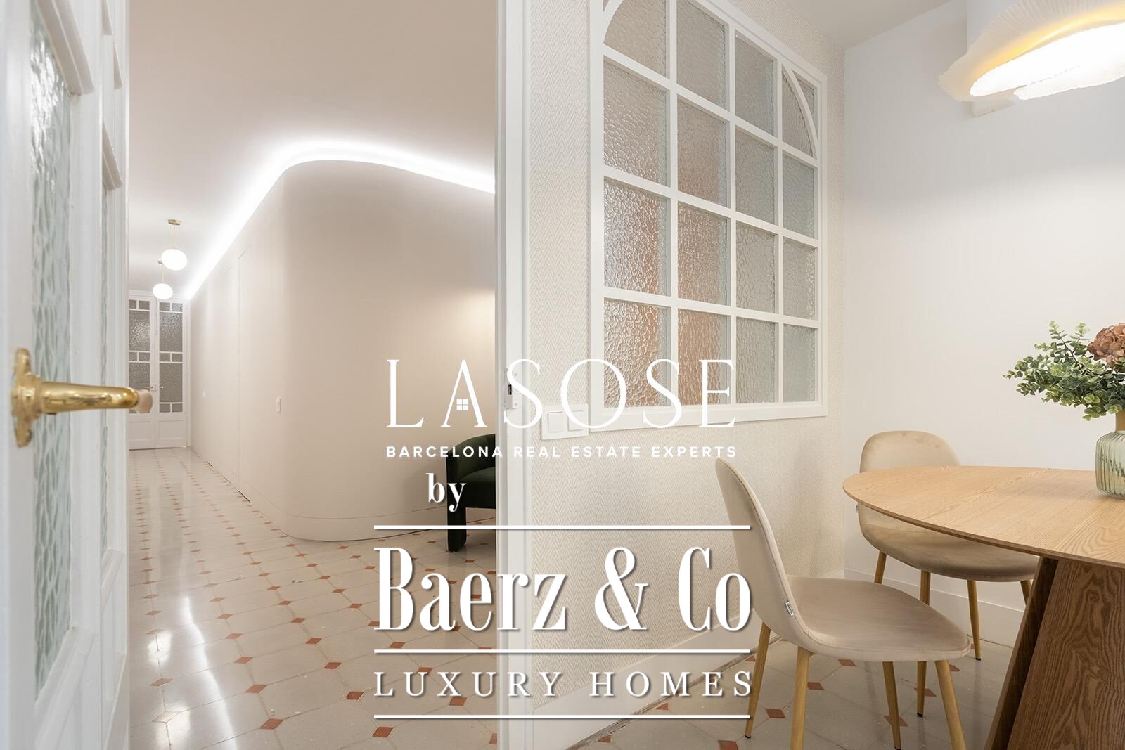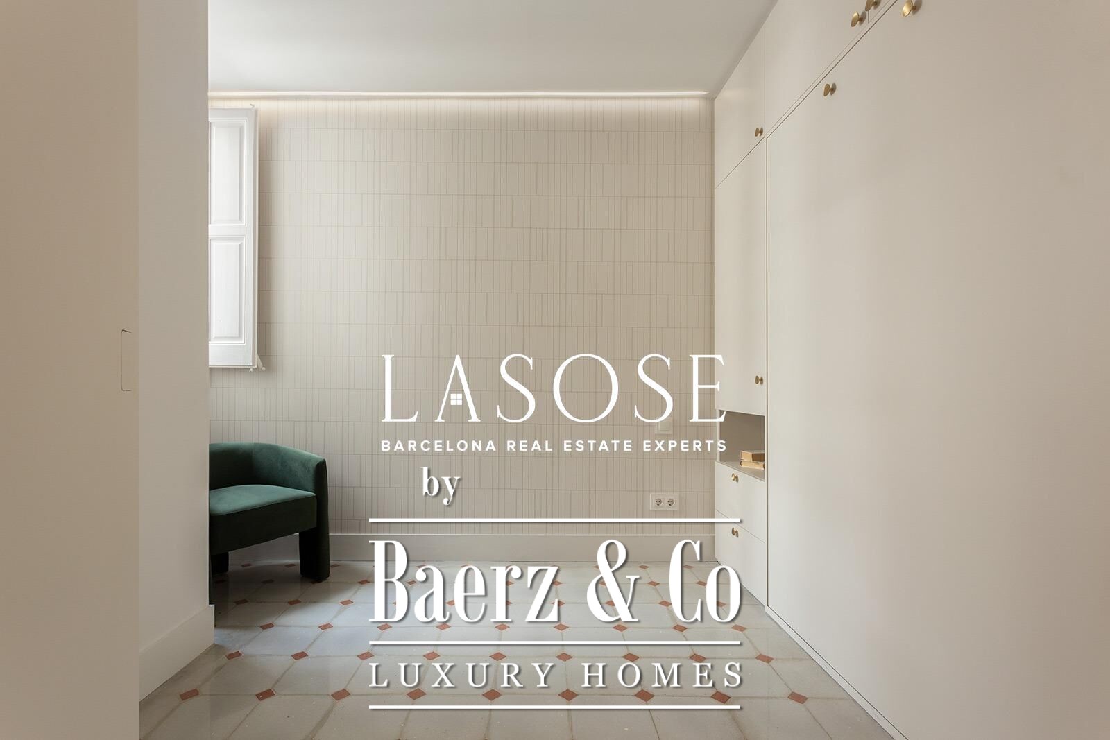 شقة برشلونة هي إقامة تجمع بين العمارة التراثية والتجديد العصري، وتقع في الطابق العلوي من منطقة إيشامبل. تبلغ مساحة الشقة 115 مترًا مربعًا، وقد تم تجديدها بالكامل في عام 2025، وتستقبل الكثير من الضوء الطبيعي من شرفتها المواجهة للجنوب الشرقي، مما يغمر المساحة الداخلية بالدفء ويتيح إطلالات مفتوحة من غرفة الجلوس. تحتفظ الشقة بأرضيات هيدروليكية أصلية وسقف كتالوني تم ترميمه بعناية وهما من بصمات الحرفية التقليدية، بينما تندمج أنظمة الإضاءة الحديثة، والحمامات الأنيقة، والأجهزة المنزلية الجديدة تمامًا بانسجام في نسيج السكن الراقي.
