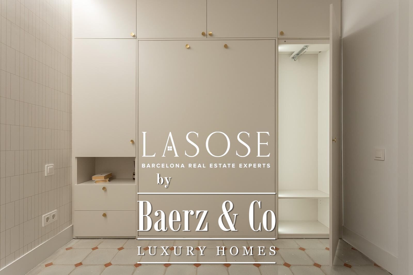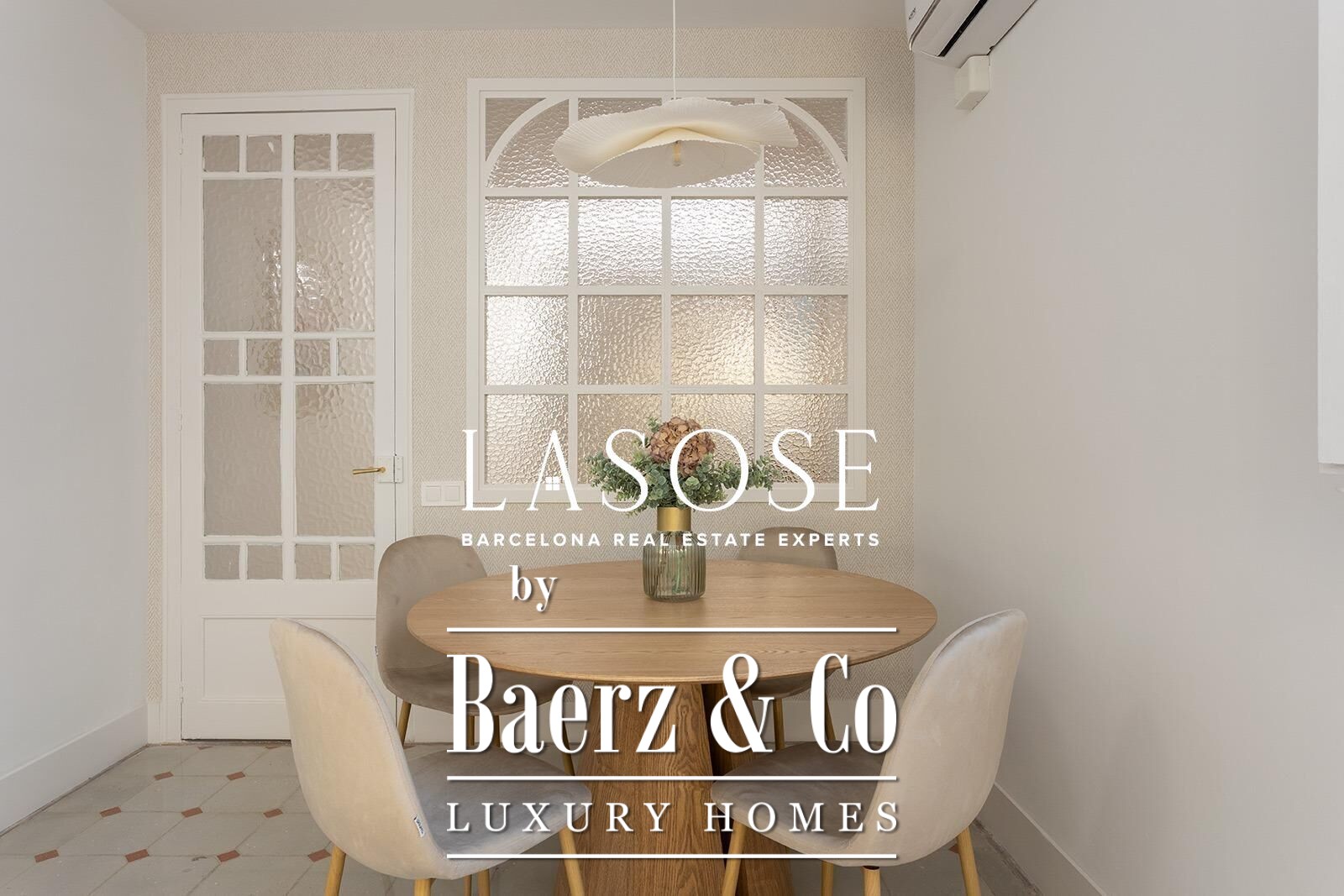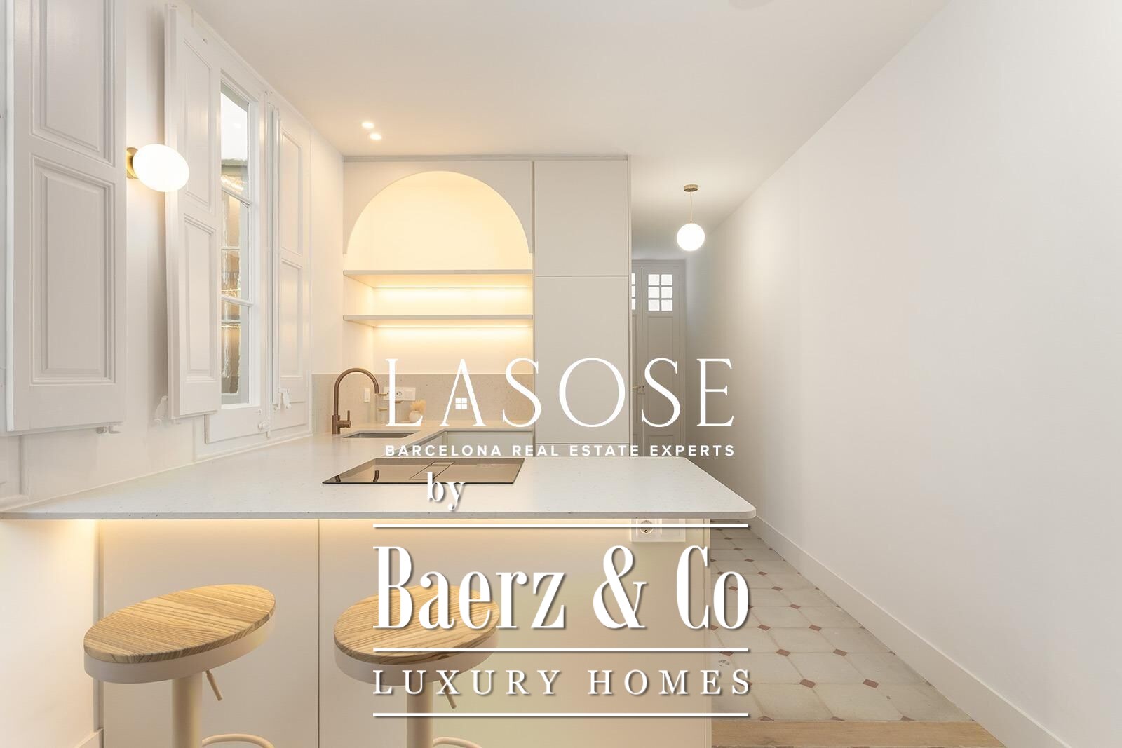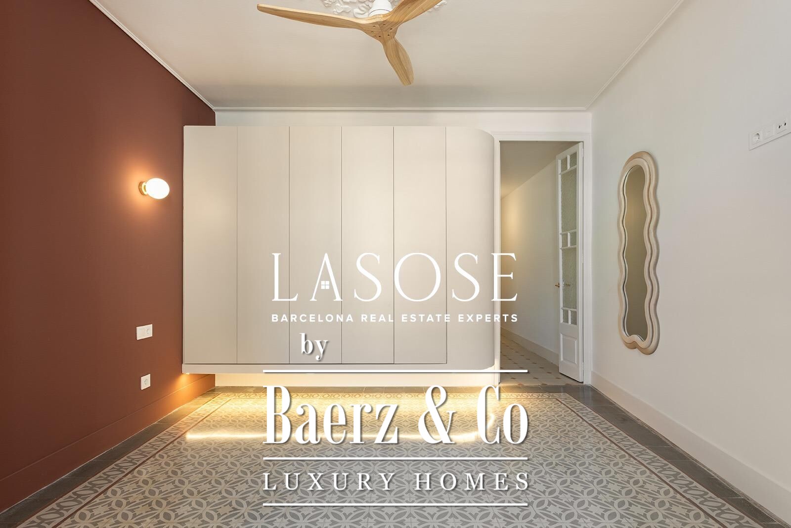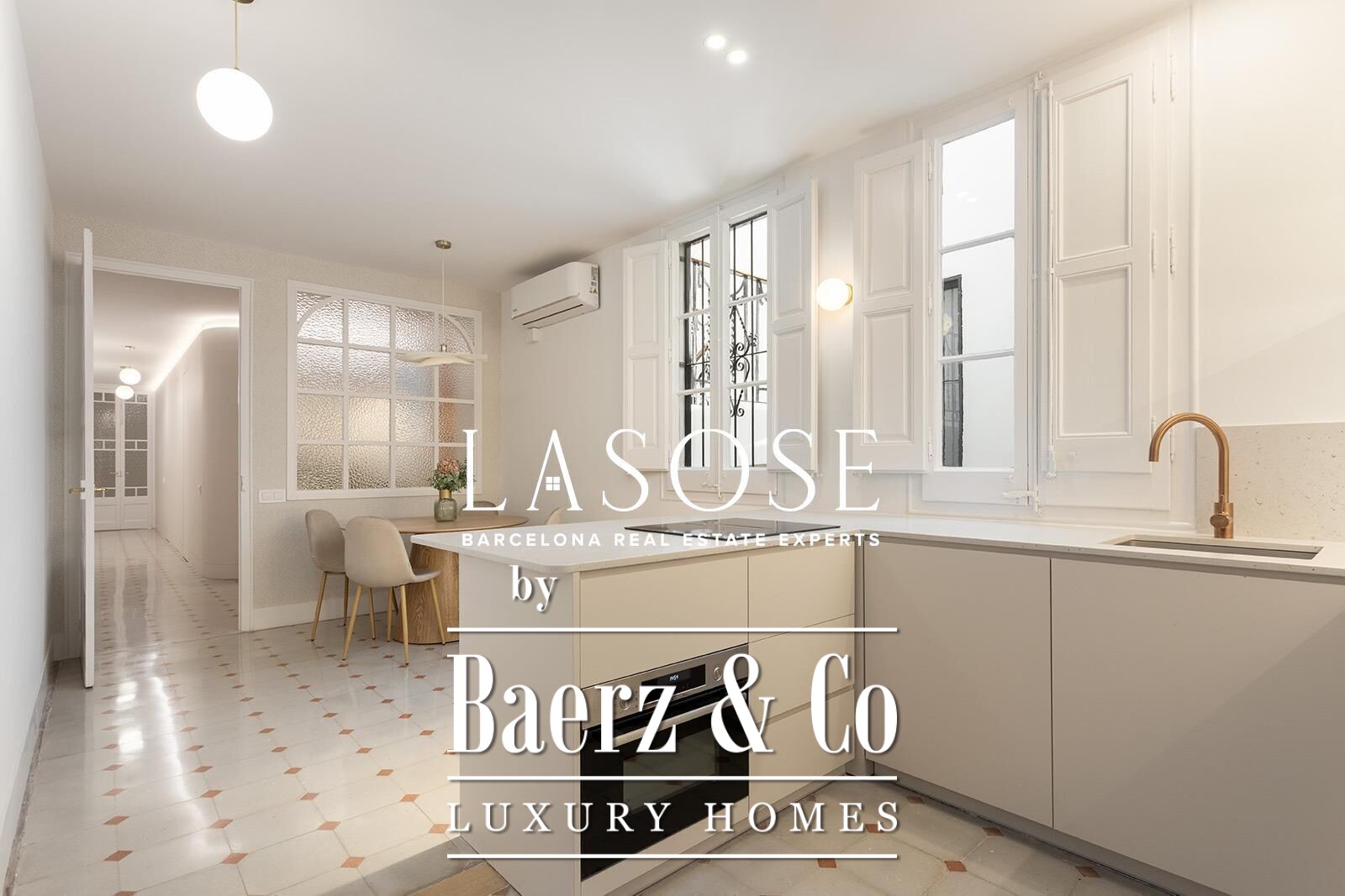 شقة برشلونة هي إقامة تجمع بين العمارة التراثية والتجديد العصري، وتقع في الطابق العلوي من منطقة إيشامبل. تبلغ مساحة الشقة 115 مترًا مربعًا، وقد تم تجديدها بالكامل في عام 2025، وتستقبل الكثير من الضوء الطبيعي من شرفتها المواجهة للجنوب الشرقي، مما يغمر المساحة الداخلية بالدفء ويتيح إطلالات مفتوحة من غرفة الجلوس. تحتفظ الشقة بأرضيات هيدروليكية أصلية وسقف كتالوني تم ترميمه بعناية وهما من بصمات الحرفية التقليدية، بينما تندمج أنظمة الإضاءة الحديثة، والحمامات الأنيقة، والأجهزة المنزلية الجديدة تمامًا بانسجام في نسيج السكن الراقي.