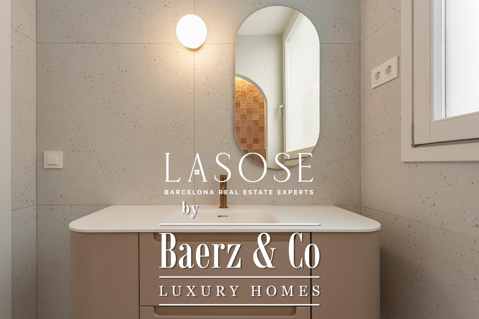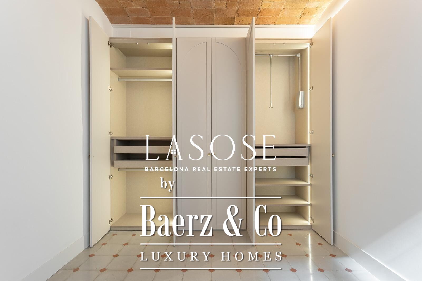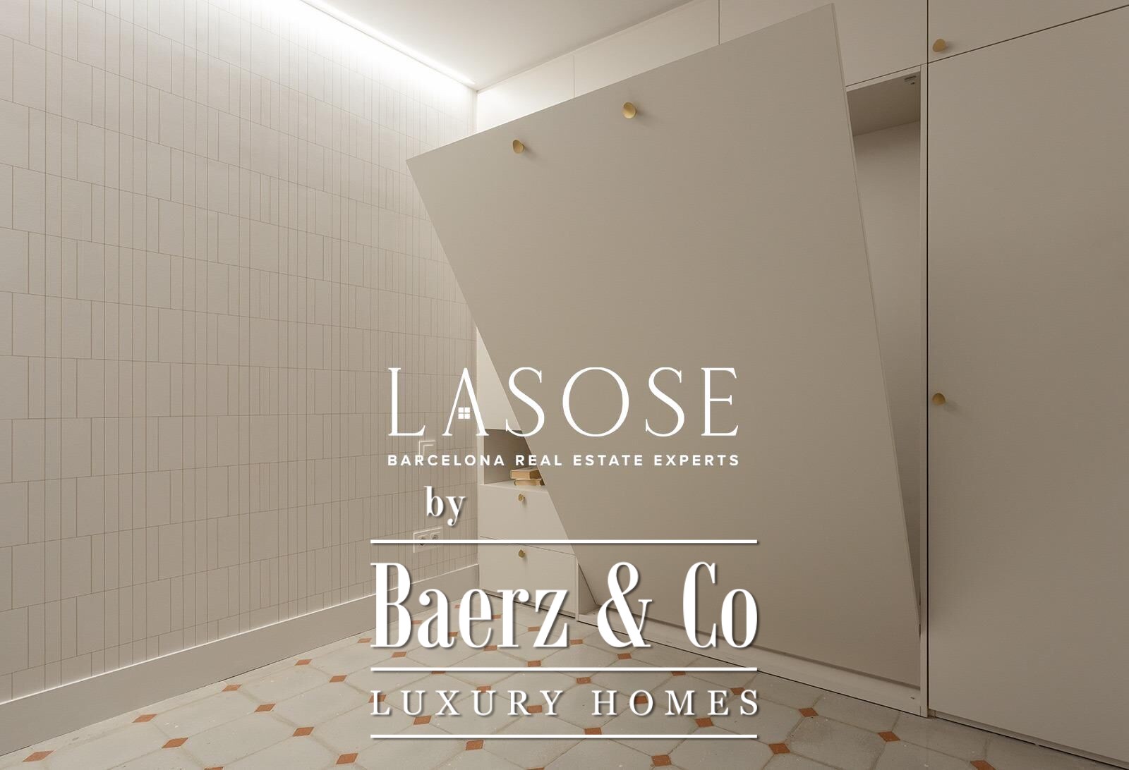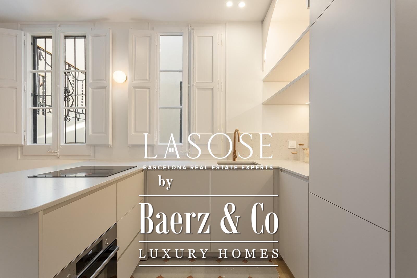 شقة برشلونة هي إقامة تجمع بين العمارة التراثية والتجديد العصري، وتقع في الطابق العلوي من منطقة إيشامبل. تبلغ مساحة الشقة 115 مترًا مربعًا، وقد تم تجديدها بالكامل في عام 2025، وتستقبل الكثير من الضوء الطبيعي من شرفتها المواجهة للجنوب الشرقي، مما يغمر المساحة الداخلية بالدفء ويتيح إطلالات مفتوحة من غرفة الجلوس. تحتفظ الشقة بأرضيات هيدروليكية أصلية وسقف كتالوني تم ترميمه بعناية وهما من بصمات الحرفية التقليدية، بينما تندمج أنظمة الإضاءة الحديثة، والحمامات الأنيقة، والأجهزة المنزلية الجديدة تمامًا بانسجام في نسيج السكن الراقي.