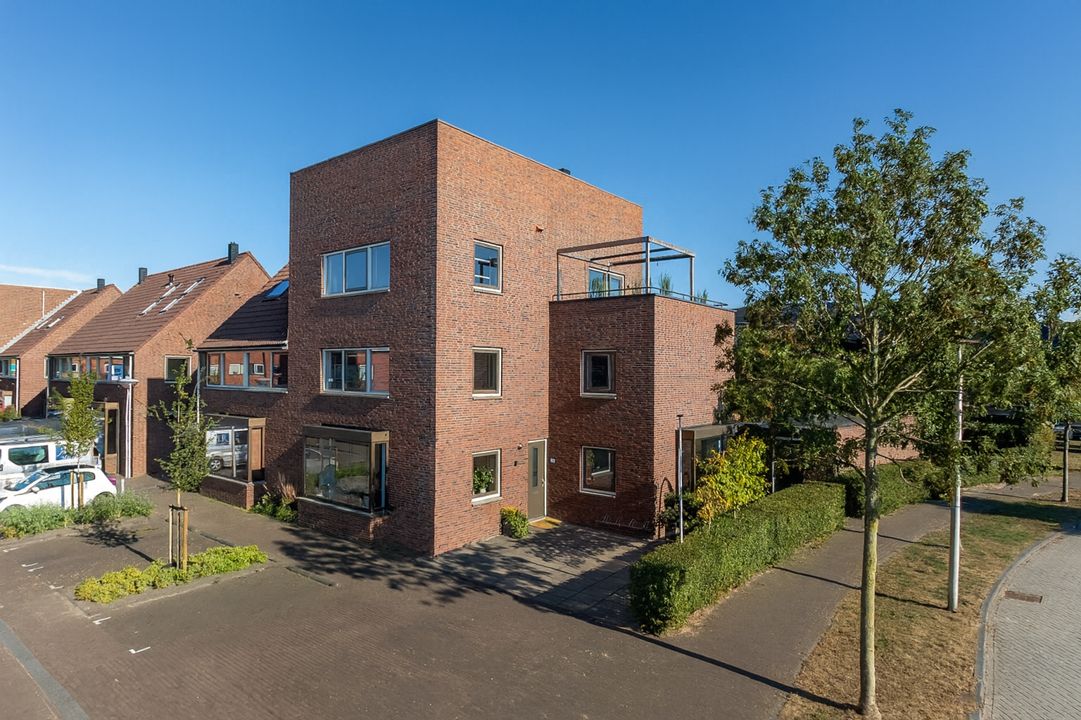 يقع هذا المنزل المتلاصق في دين هورن في زاوية هادئة ضمن القرية، بجوار المياه وبالقرب من منطقة 'دي لوكيرتوين' المزدهرة. يوفر هذا المسكن، بمساحة معيشية تبلغ 231 م² وثماني غرف نوم، وفرة في المساحة، ووظائف راقية، وحلولاً طاقية حديثة، ضمن قطعة أرض حرة تبلغ مساحتها 314 م².