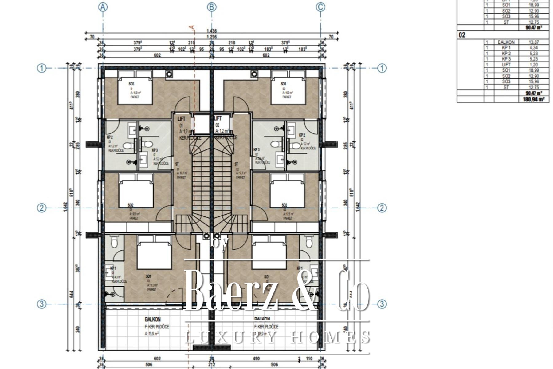في الطابق العلوي، يحتوي كل من غرف النوم الثلاث على حمام داخلي خاص، بينما تمتد الجناح الرئيسي إلى شرفة مطلة على البحر. يبرز وجود مضخة حرارية من Daikin، وتكييف هواء مركزي في السقف، ونوافذ مصنوعة من الألمنيوم جودة وراحة هذا العقار. سيكتمل هذا المنزل شبه المنفصل في كوسترينا بحلول نهاية عام 2024، ليقدم قاعدة أنيقة وخاصة لتجربة ساحل الأدرياتيك.