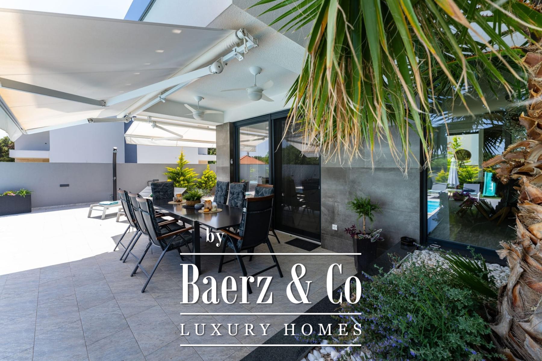 في الطابق العلوي، ثلاث غرف نوم إضافية، لكل منها حمامها الخاص مع إمكانية الوصول إلى شرفات مفتوحة، مما يخلق تواصلاً سلساً بين الراحة الداخلية والفضاء الخارجي. تعكس النوافذ الواسعة الضوء الكرواتي المميز، بينما يضم الحديقة، المزودة بنظام ري أوتوماتيكي، مسبحاً مدفأً وتراساً للتشميس ومنطقة طعام خارجية، مثالية للصباحات الهادئة والأمسيات الاجتماعية.