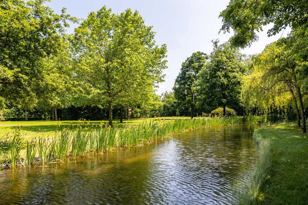 De onder architectuur aangelegde en geheel omsloten parkachtige tuin heeft ontzettend veel fijne plekjes waar u heerlijk van het buitenleven kunt genieten. Vanaf het grote terras met overkapping heeft u een mooi uitzicht over de grote vijver met fontein en loopbrug.