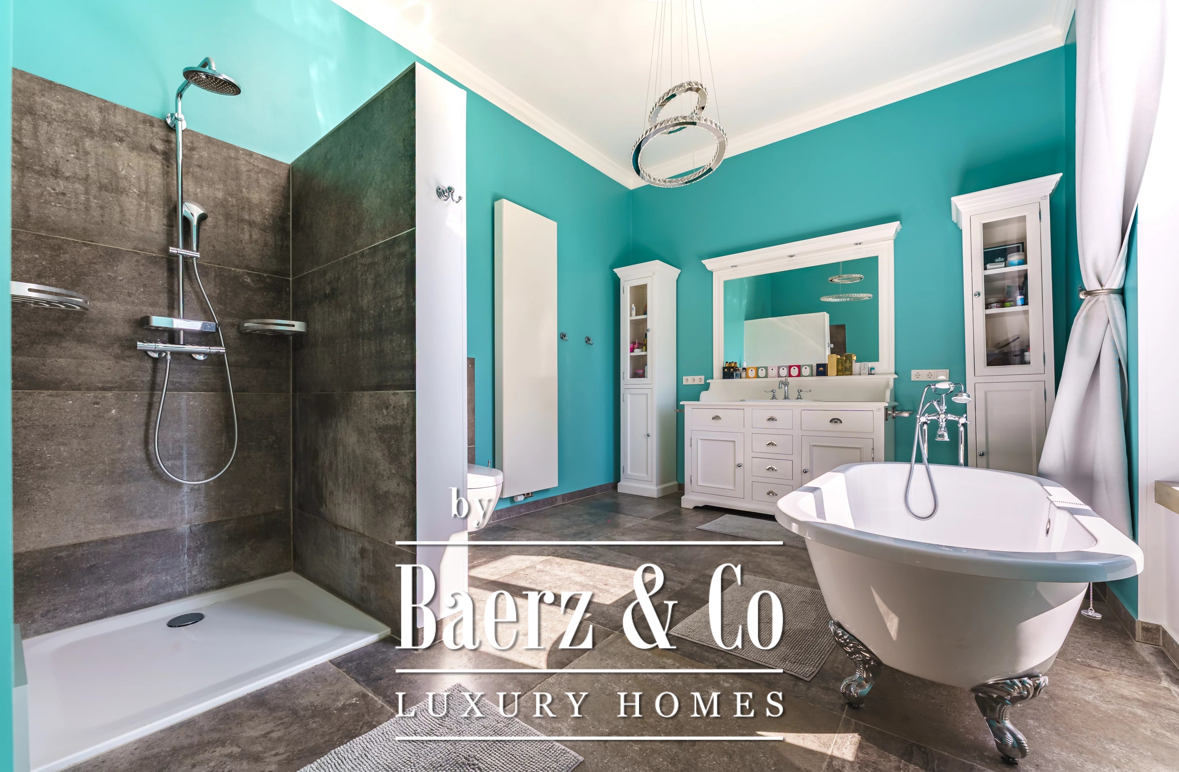 Das Anwesen erstreckt sich über 1,2 Hektar und bietet moderne Ausstattungsmerkmale wie Solarzellen mit 30 kW Leistung, fernsteuerbare Heizung sowie einen maßgefertigten Kamin – eine gelungene Verbindung aus Effizienz und stilvoller Ästhetik. Einbruch- und Brandschutzsysteme, doppelt verglaste Fenster und Grillmöglichkeiten unterstreichen den nachhaltigen Qualitätsanspruch. Der weitläufige Garten mit Ausblick auf die Natur garantiert seltene Privatsphäre und Ruhe für all jene, die Substanz, Authentizität und ein unverkennbar luxemburgisches Ambiente suchen.