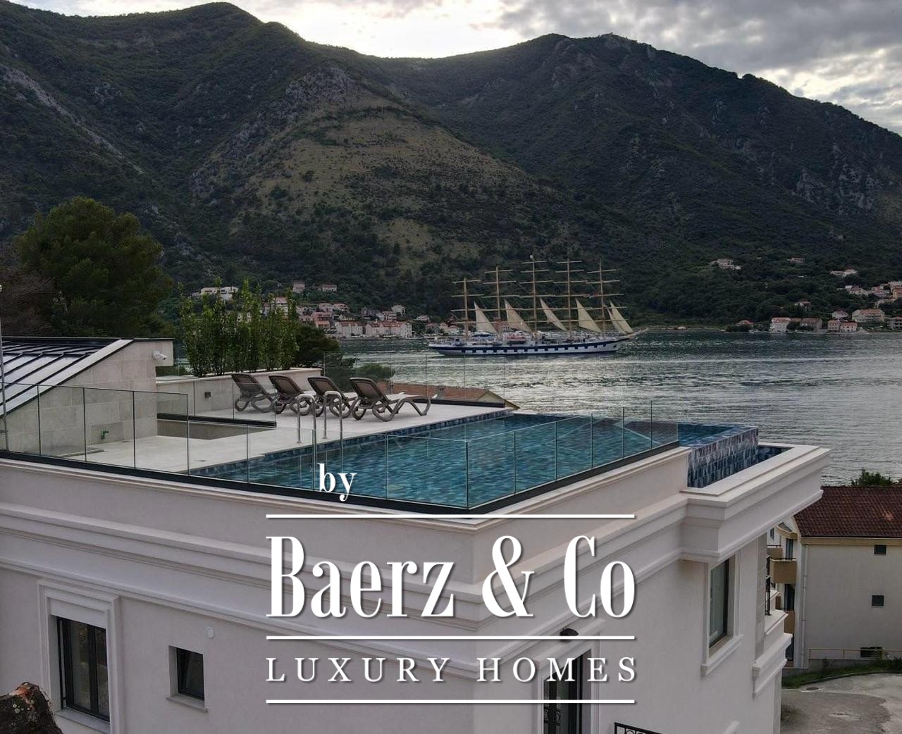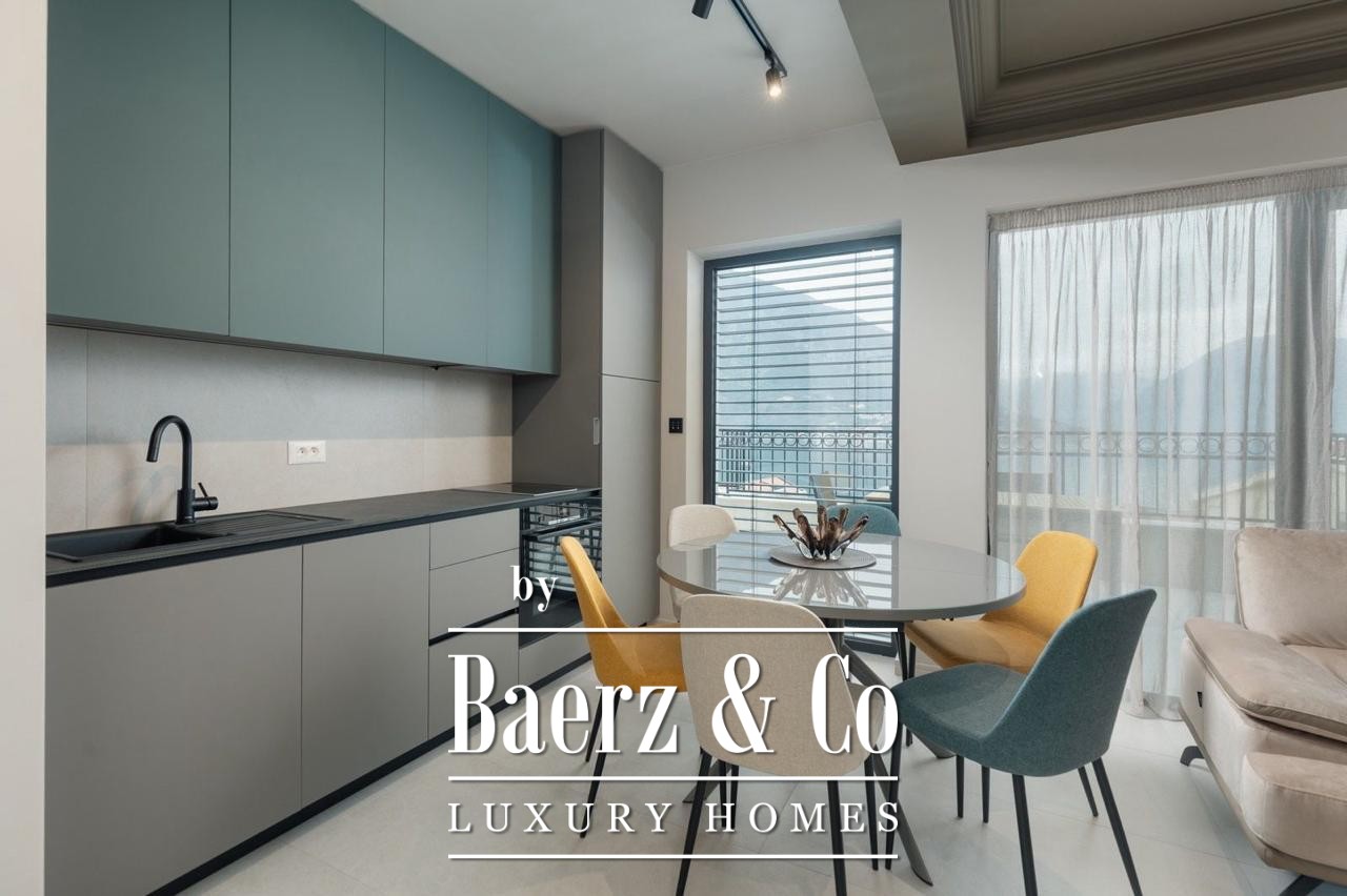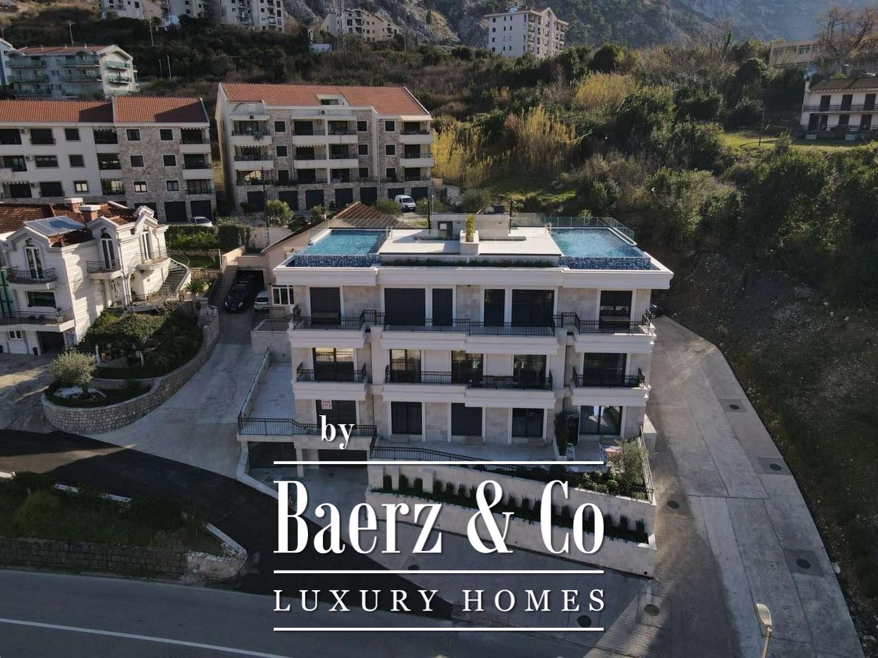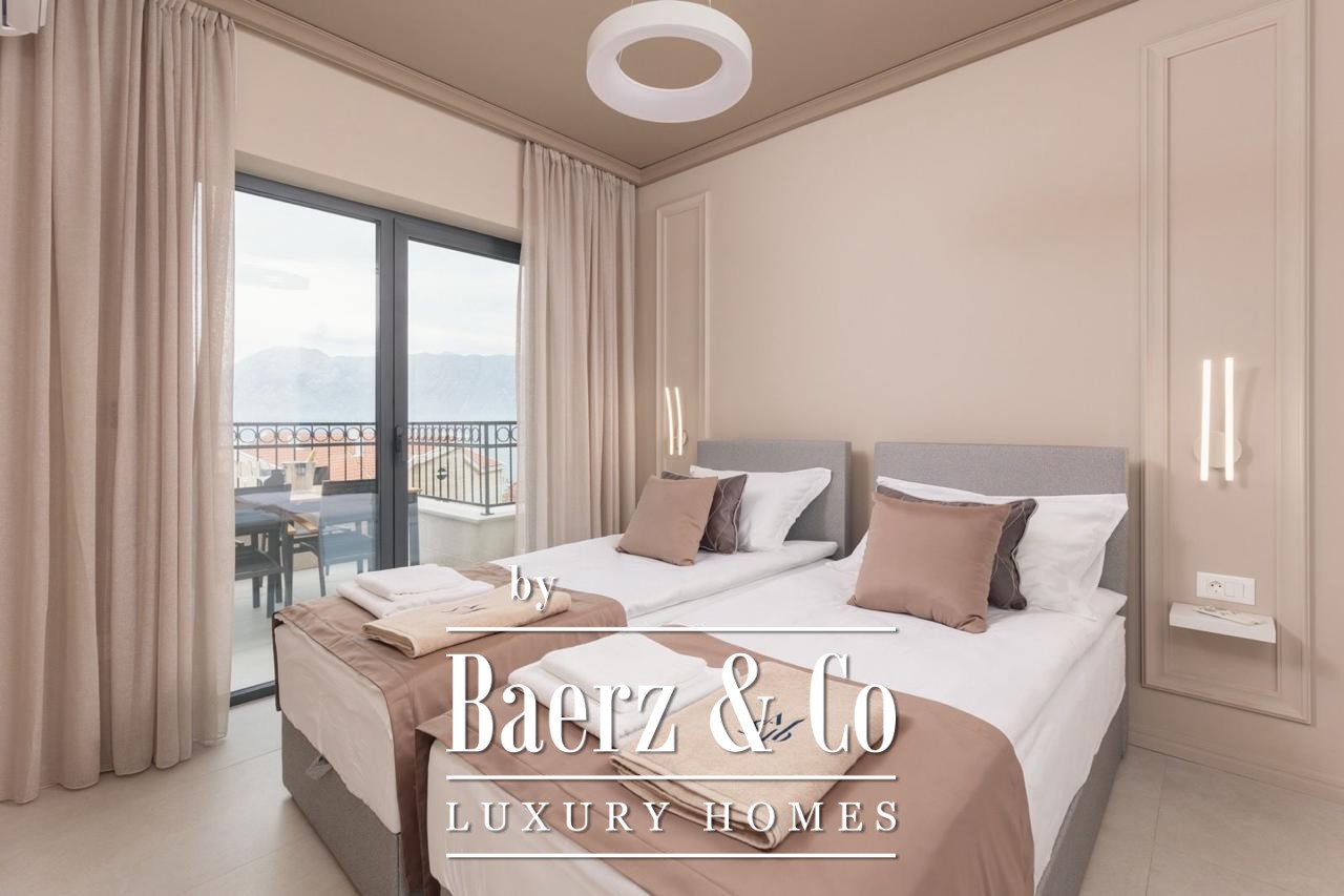 Die Wohnung überzeugt mit drei Schlafzimmern, einem Badezimmer, einer separaten Toilette und zwei Terrassen. Die raumhohen Fenster holen die wechselnden Lichtstimmungen der Bucht von Kotor ins Innere und unterstreichen die 186 m² große, komplett möblierte Wohnfläche, die sofort bezogen werden kann. Durchdachte Planung zeigt sich im Flur, der den Weg zu den Wohnbereichen und Terrassen lenkt, wo das Leben im Freien vom Rhythmus von Meer und Himmel getragen wird.