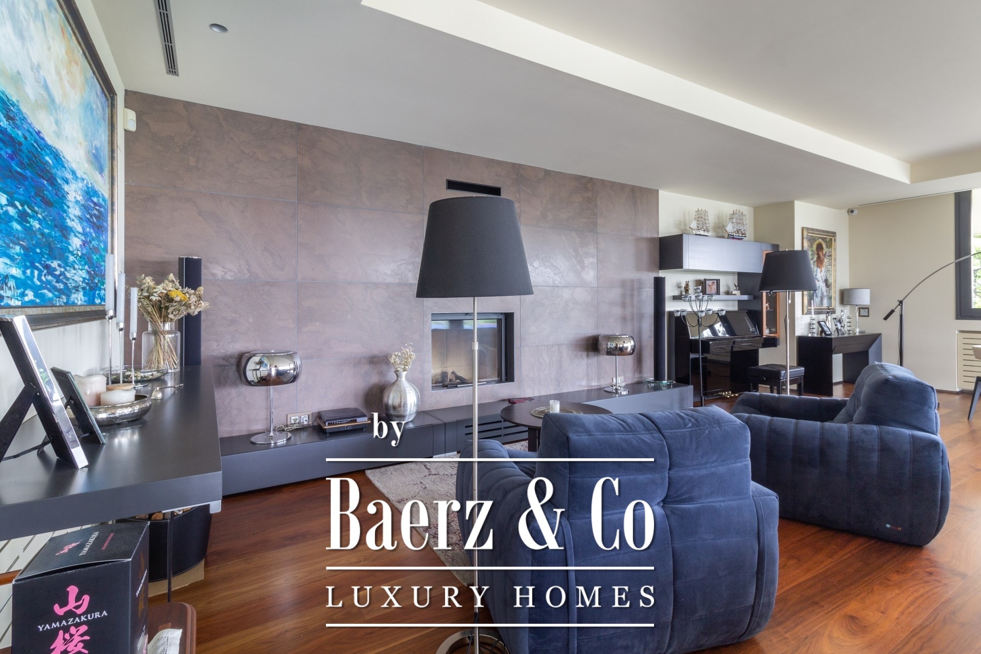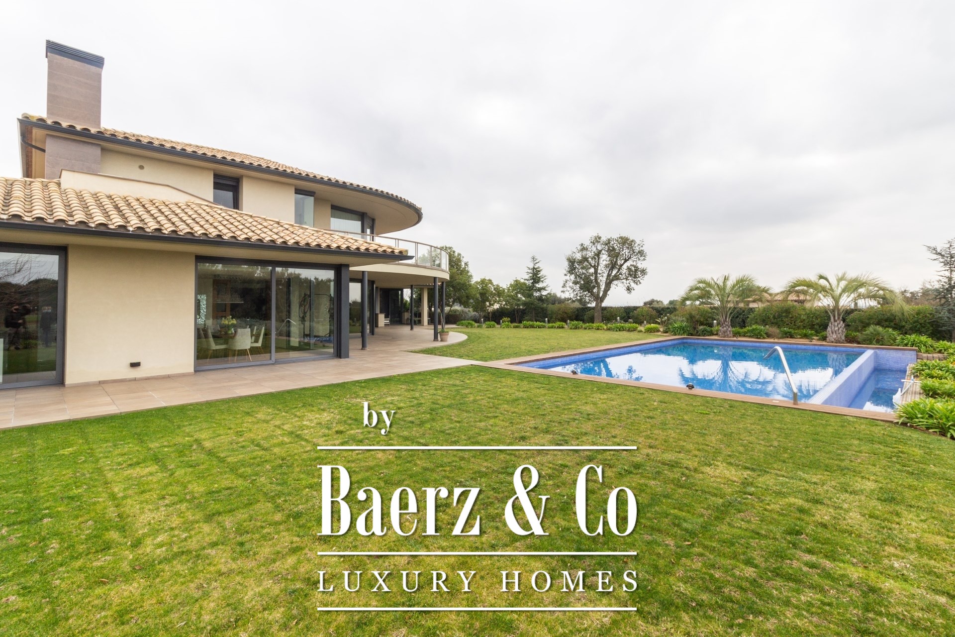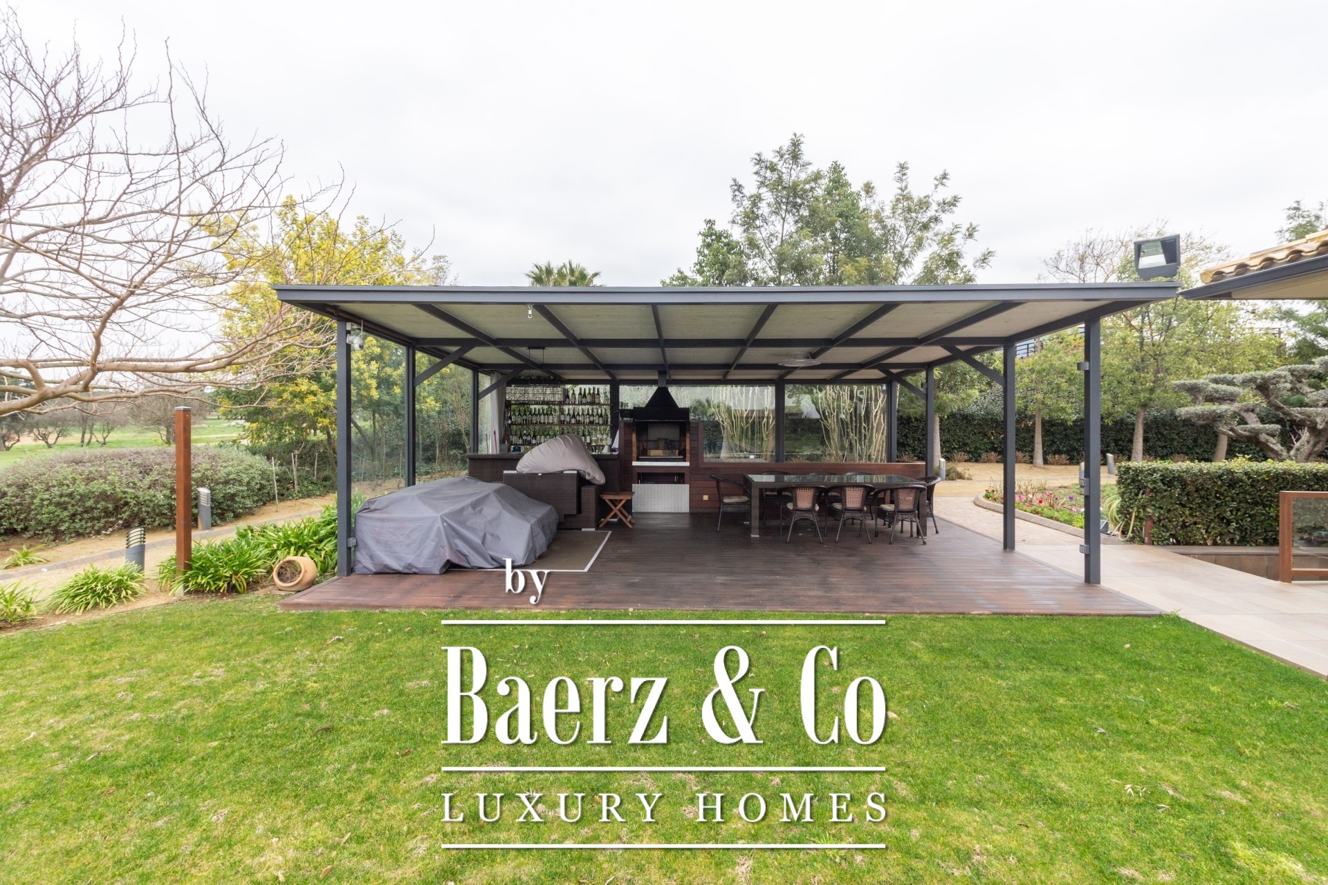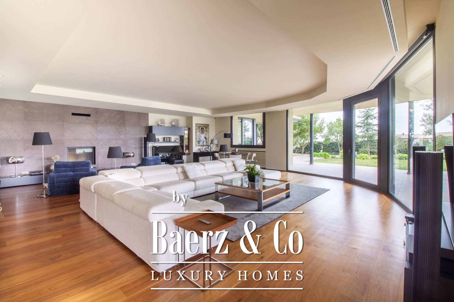 Im Außenbereich umgeben gepflegte Gärten den Pool mit Wasserfall, eine Barbecue- und Outdoor-Küche sowie großzügige Chill-out-Bereiche. Fußbodenheizung, zentrale Klimaanlage, elektrische Fenster, integriertes Audiosystem, vollständige Überwachungsanlage und ein Aufzug unterstreichen den Fokus auf Komfort und Sicherheit.