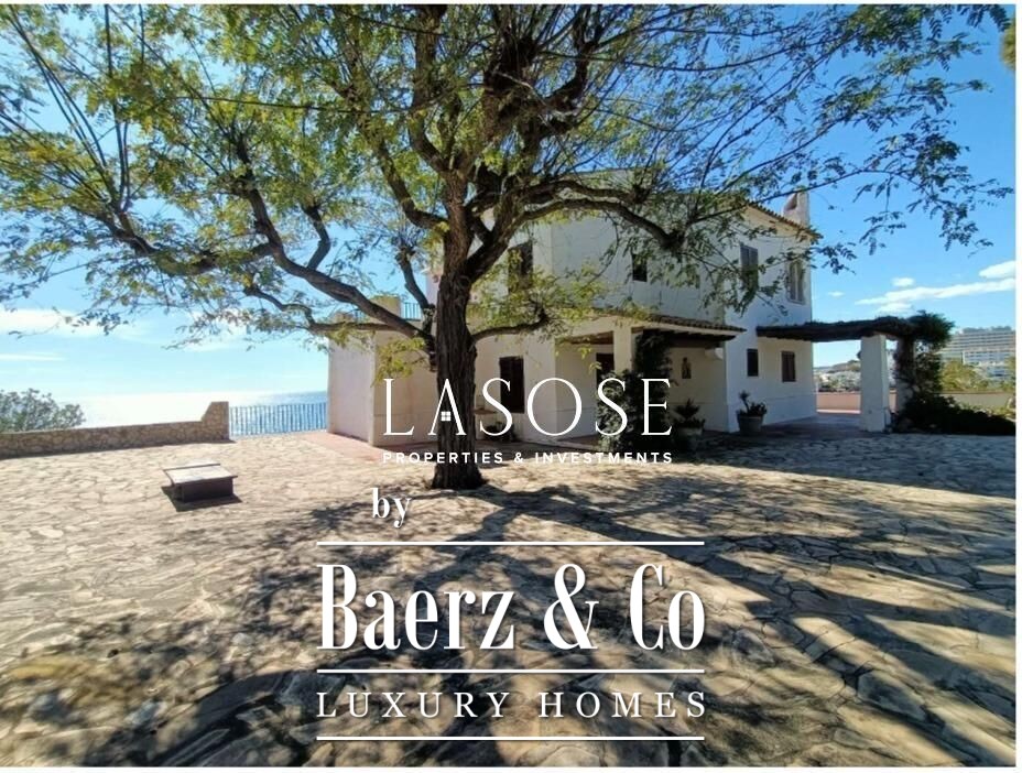 Das Anwesen umfasst 274 m² Wohnfläche auf drei Ebenen, geprägt von unverwechselbarem mediterranem Stil und gekrönt von einem originalen Wachturm. Die Hauptebene eröffnet sich mit einer repräsentativen Diele, die in drei lichtdurchflutete Empfangsräume übergeht, von denen jeder Meerblick bietet und Zugang zur großzügigen Terrasse mit Blick auf das Wasser gewährt. Die Küche integriert einen Büroraum sowie einen Zugang zum Keller, während ein Bad mit Dusche das Erdgeschoss komplettiert.
