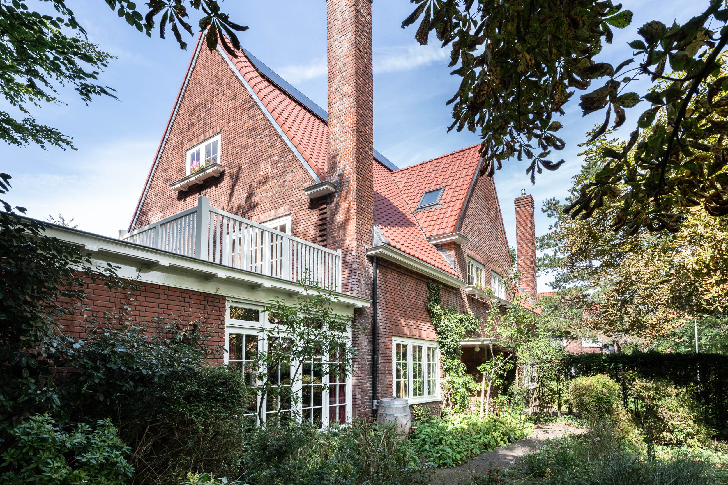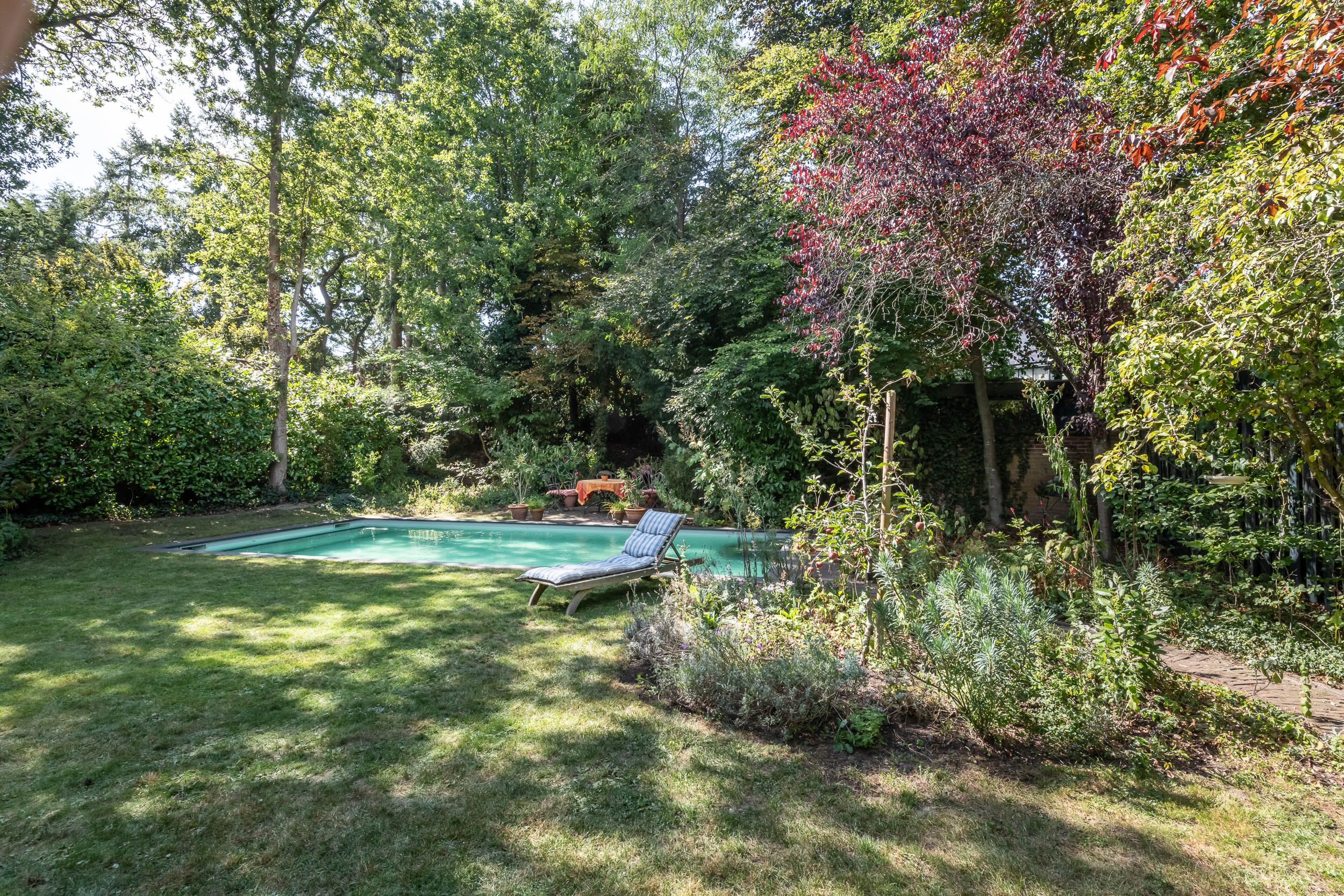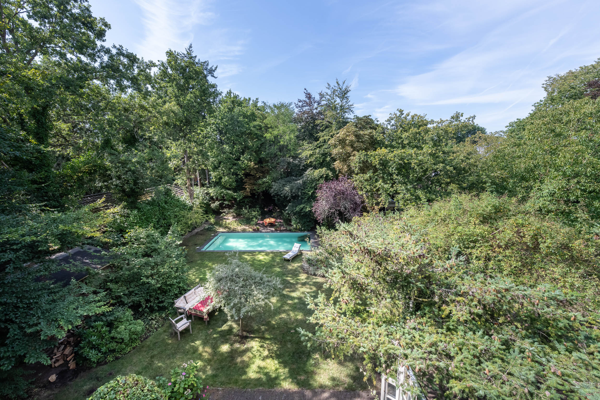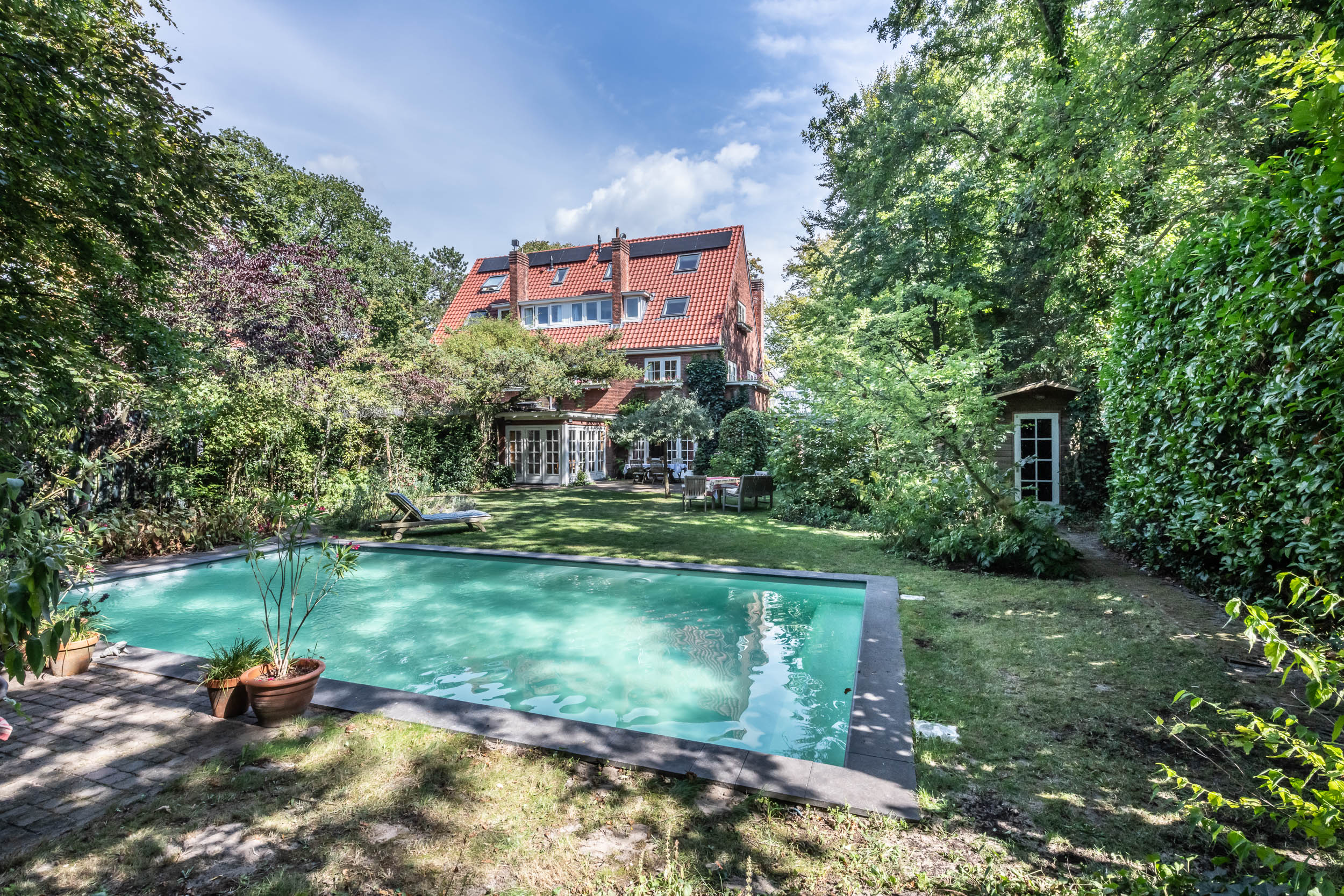 This well-maintained, semi-detached distinctive and uniquely designed villa with swimming pool and garage on a large plot of over 1,000 m² is located on the green and quiet Grenslaan. All living areas are beautifully situated facing the sun (west and south side). A family home par excellence: 6 bedrooms and 2 bathrooms! The extension on the side of the house (which completely matches the style of the main house) has created plenty of space on the ground floor for an extra room, such as a playroom, TV room or study.  The beautifully landscaped garden has several terraces, is in a sunny location facing the west and offers complete privacy! At the rear of the garden, where the plot borders Wikkelaan, there is parking space for two cars on private land with two private charging stations.