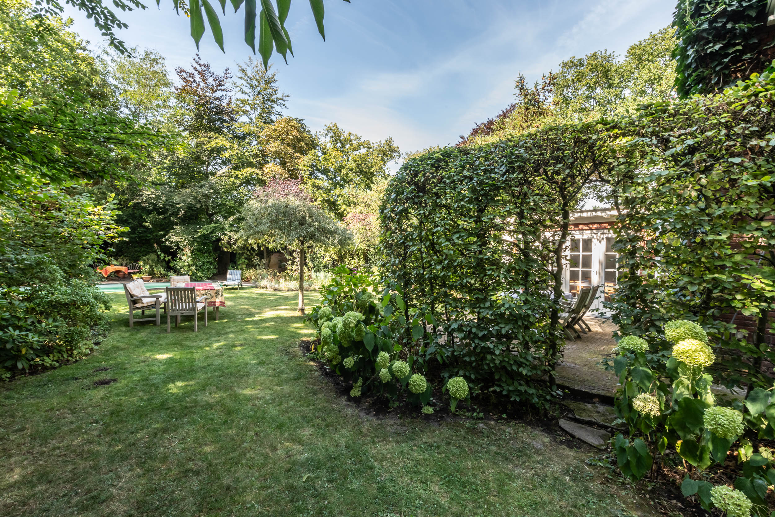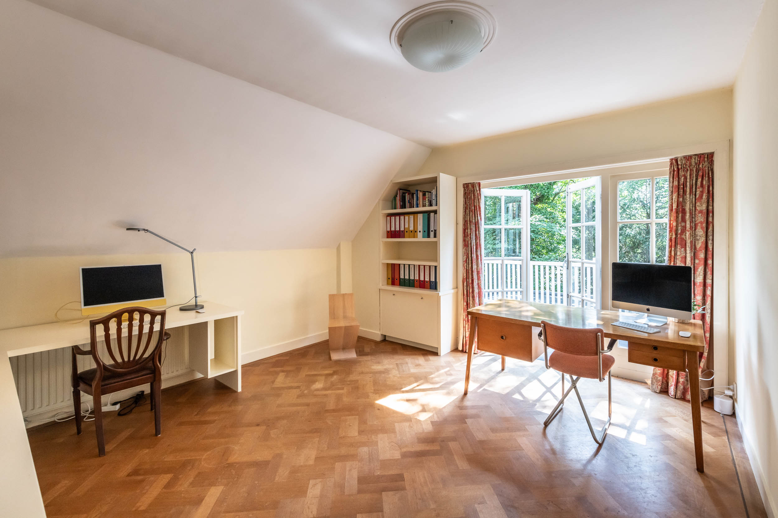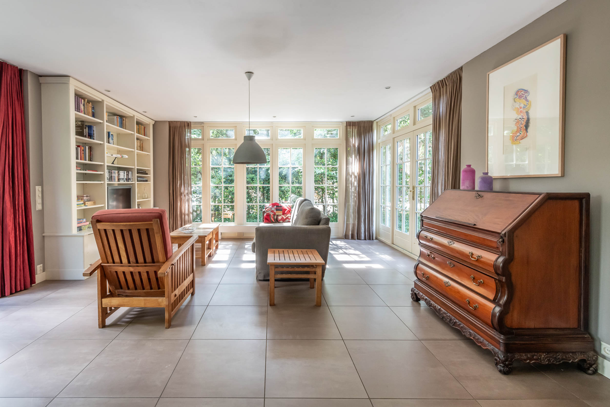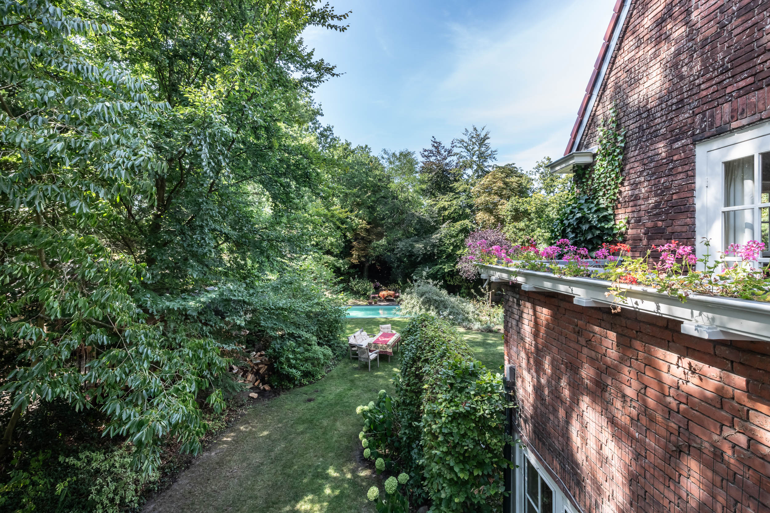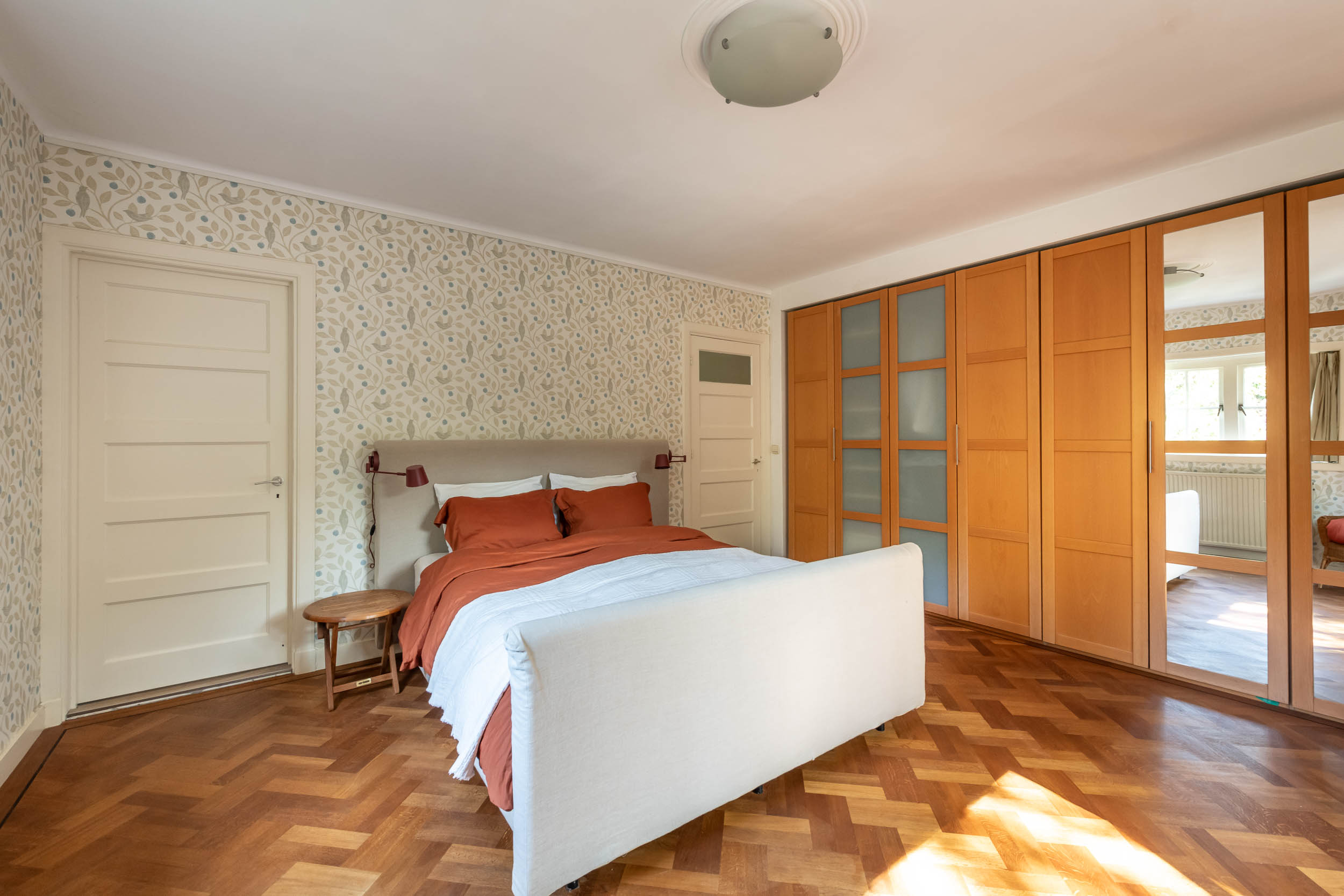 This well-maintained, semi-detached distinctive and uniquely designed villa with swimming pool and garage on a large plot of over 1,000 m² is located on the green and quiet Grenslaan. All living areas are beautifully situated facing the sun (west and south side). A family home par excellence: 6 bedrooms and 2 bathrooms! The extension on the side of the house (which completely matches the style of the main house) has created plenty of space on the ground floor for an extra room, such as a playroom, TV room or study.  The beautifully landscaped garden has several terraces, is in a sunny location facing the west and offers complete privacy! At the rear of the garden, where the plot borders Wikkelaan, there is parking space for two cars on private land with two private charging stations.