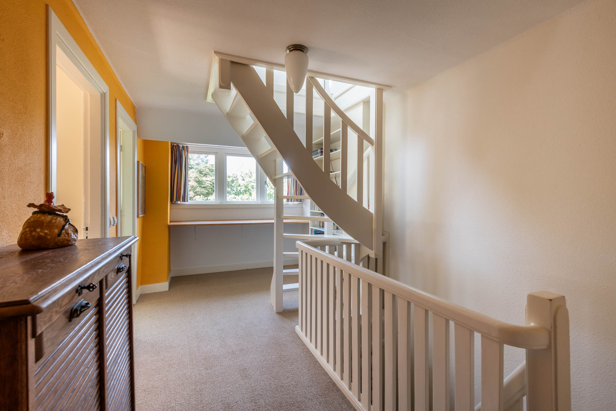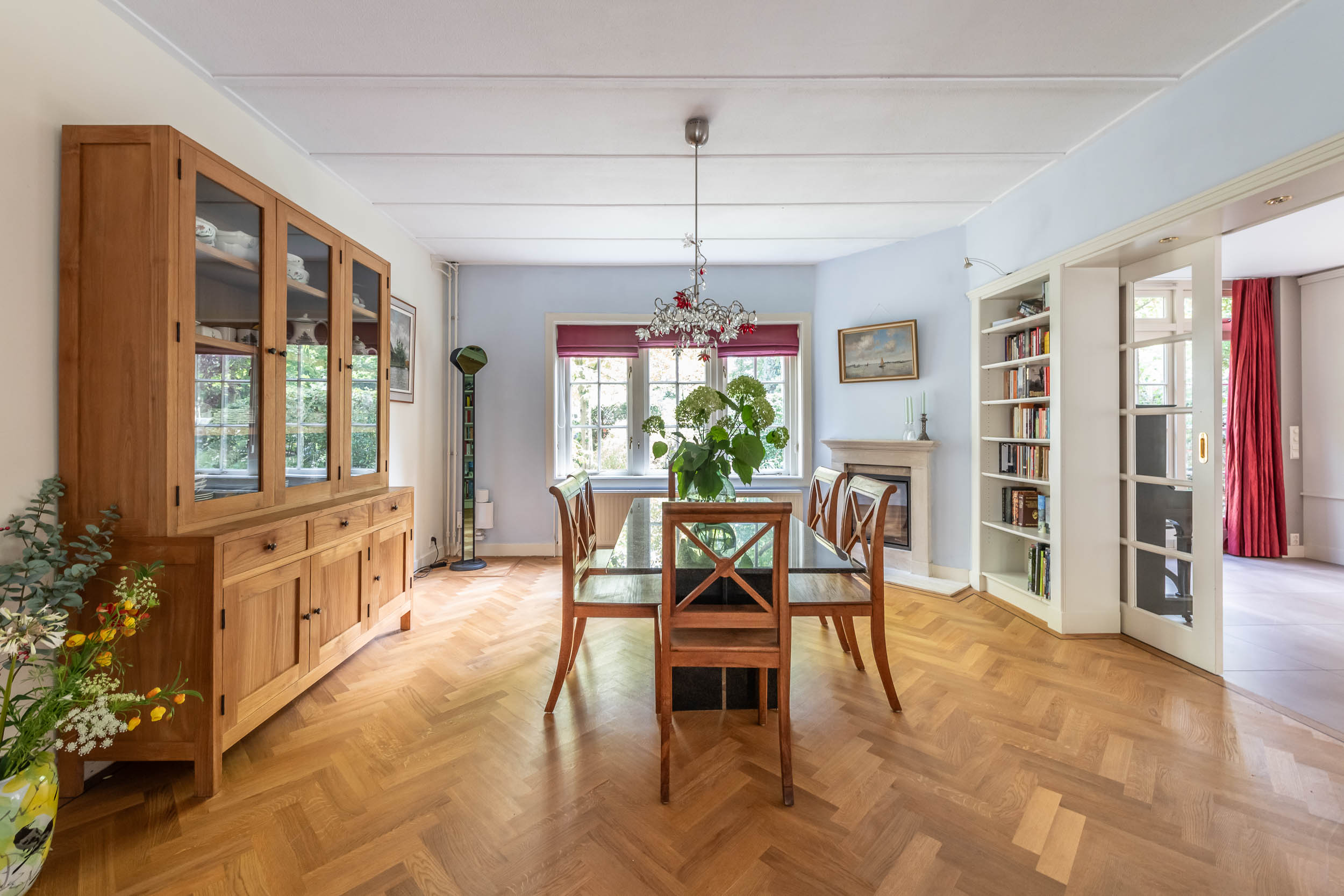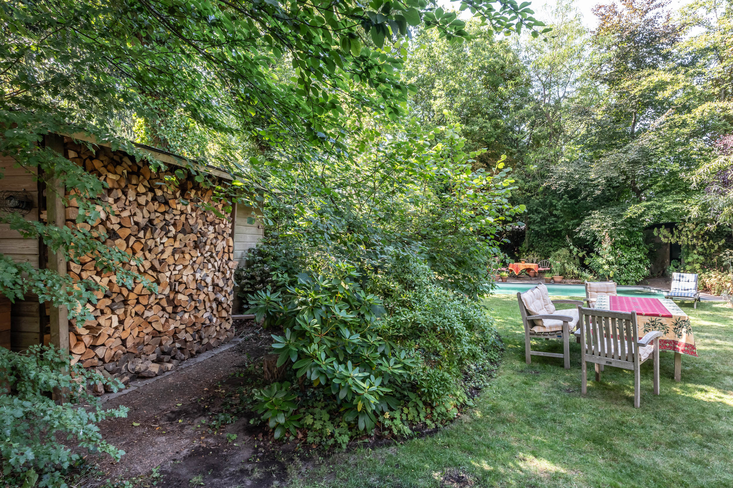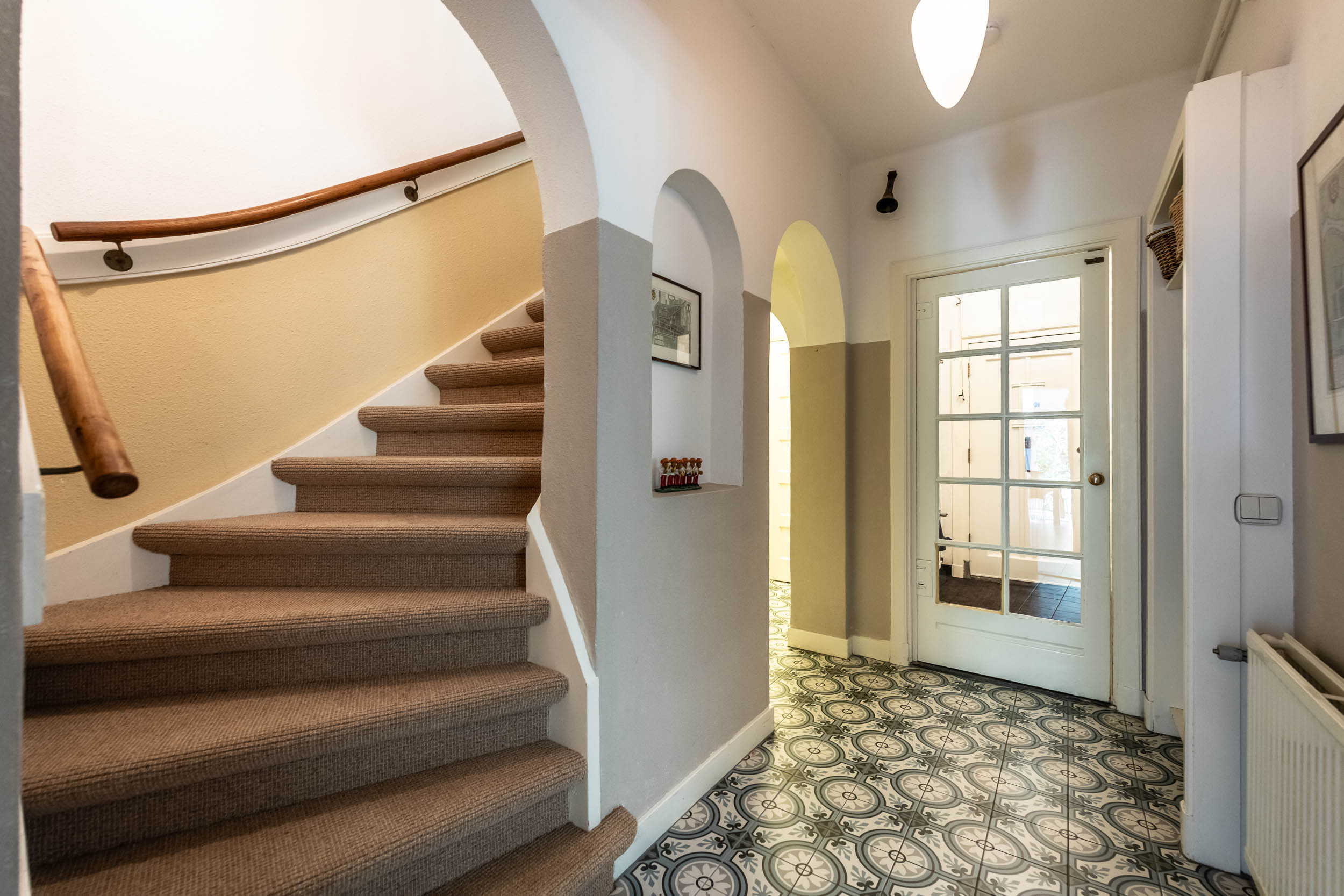 This well-maintained, semi-detached distinctive and uniquely designed villa with swimming pool and garage on a large plot of over 1,000 m² is located on the green and quiet Grenslaan. All living areas are beautifully situated facing the sun (west and south side). A family home par excellence: 6 bedrooms and 2 bathrooms! The extension on the side of the house (which completely matches the style of the main house) has created plenty of space on the ground floor for an extra room, such as a playroom, TV room or study.  The beautifully landscaped garden has several terraces, is in a sunny location facing the west and offers complete privacy! At the rear of the garden, where the plot borders Wikkelaan, there is parking space for two cars on private land with two private charging stations.