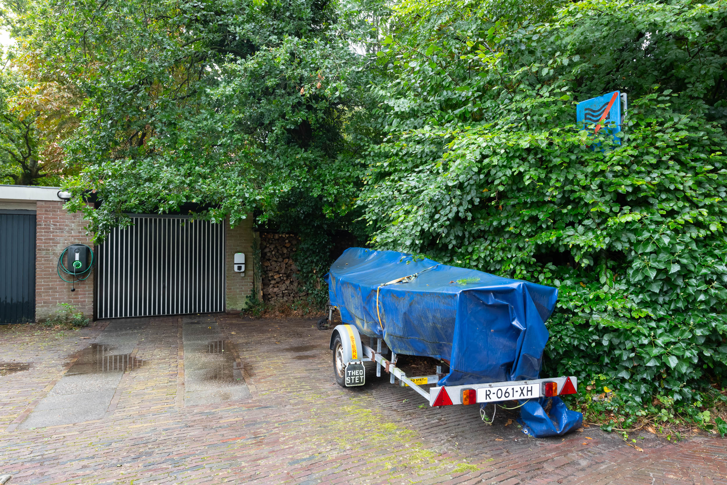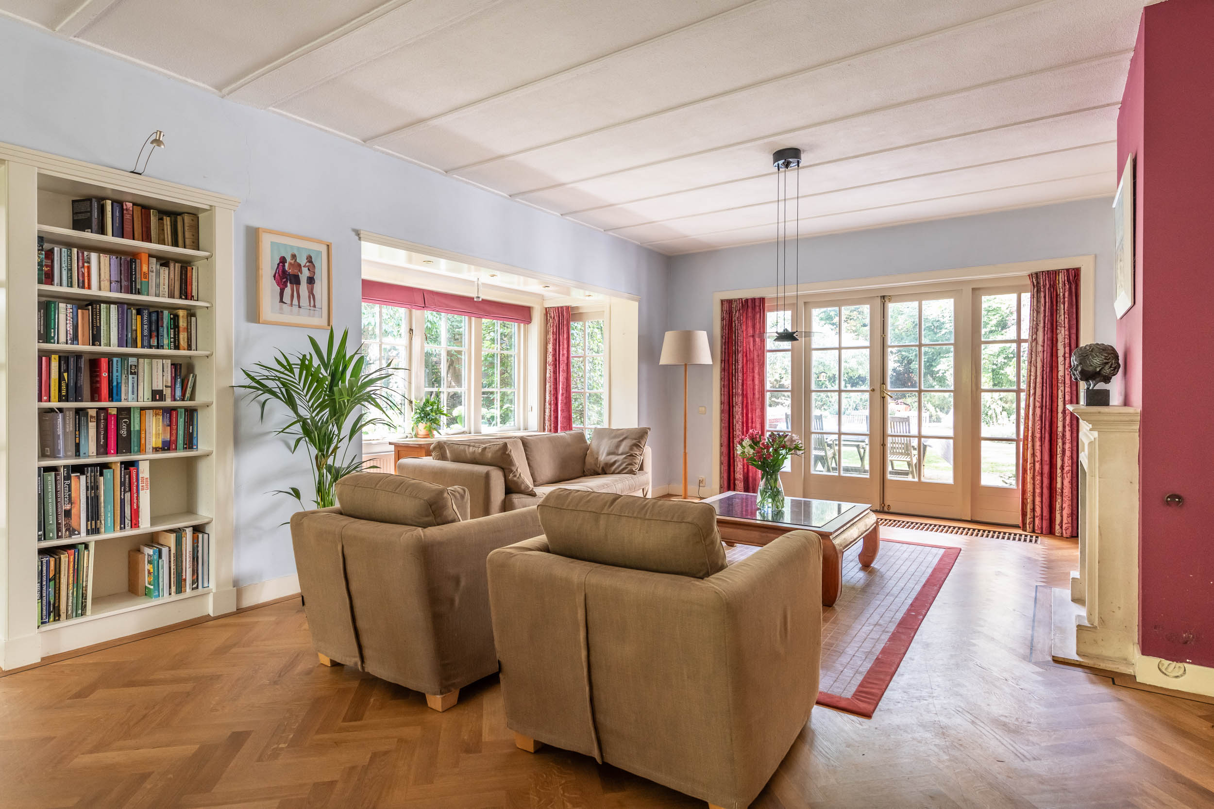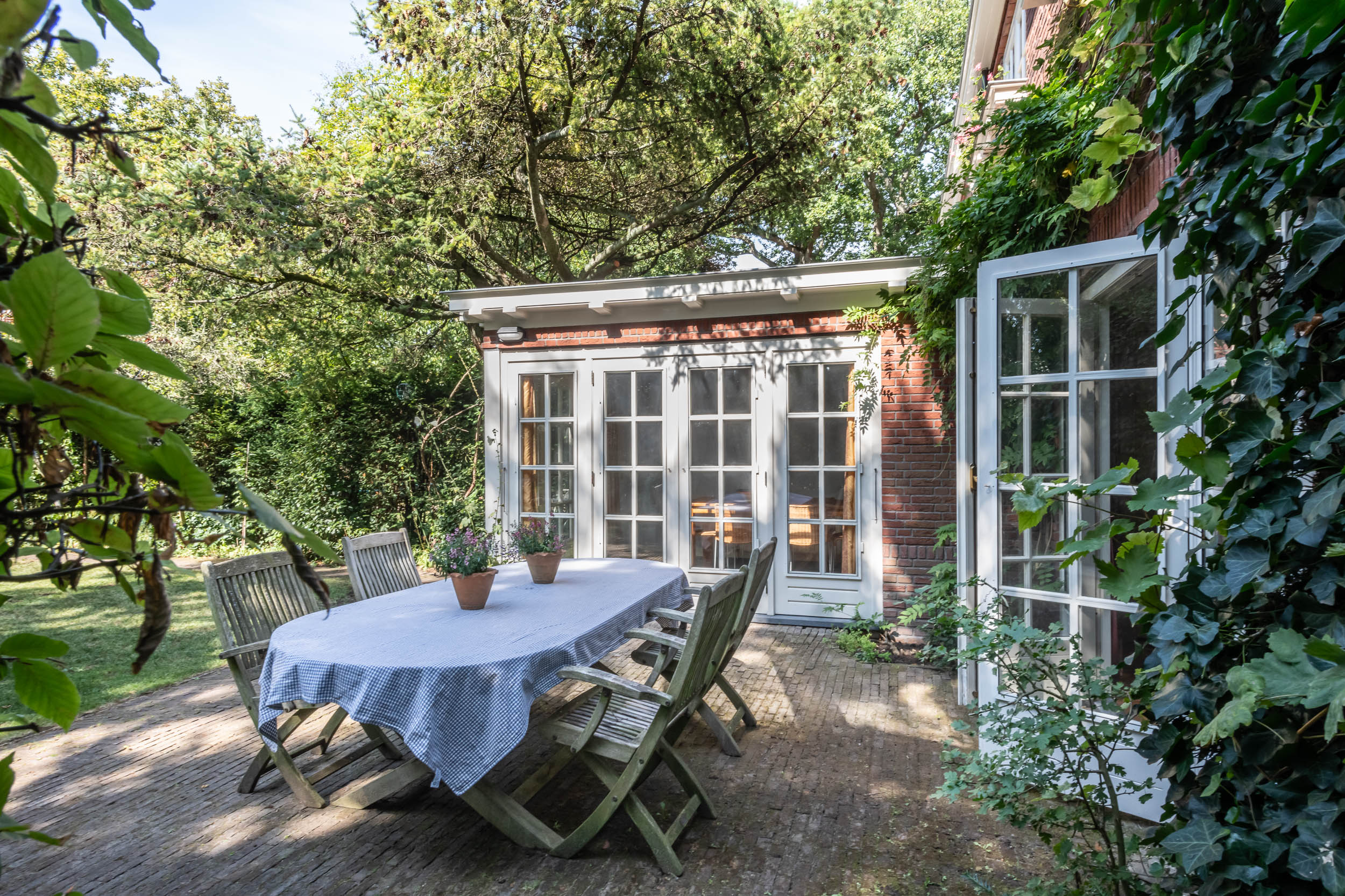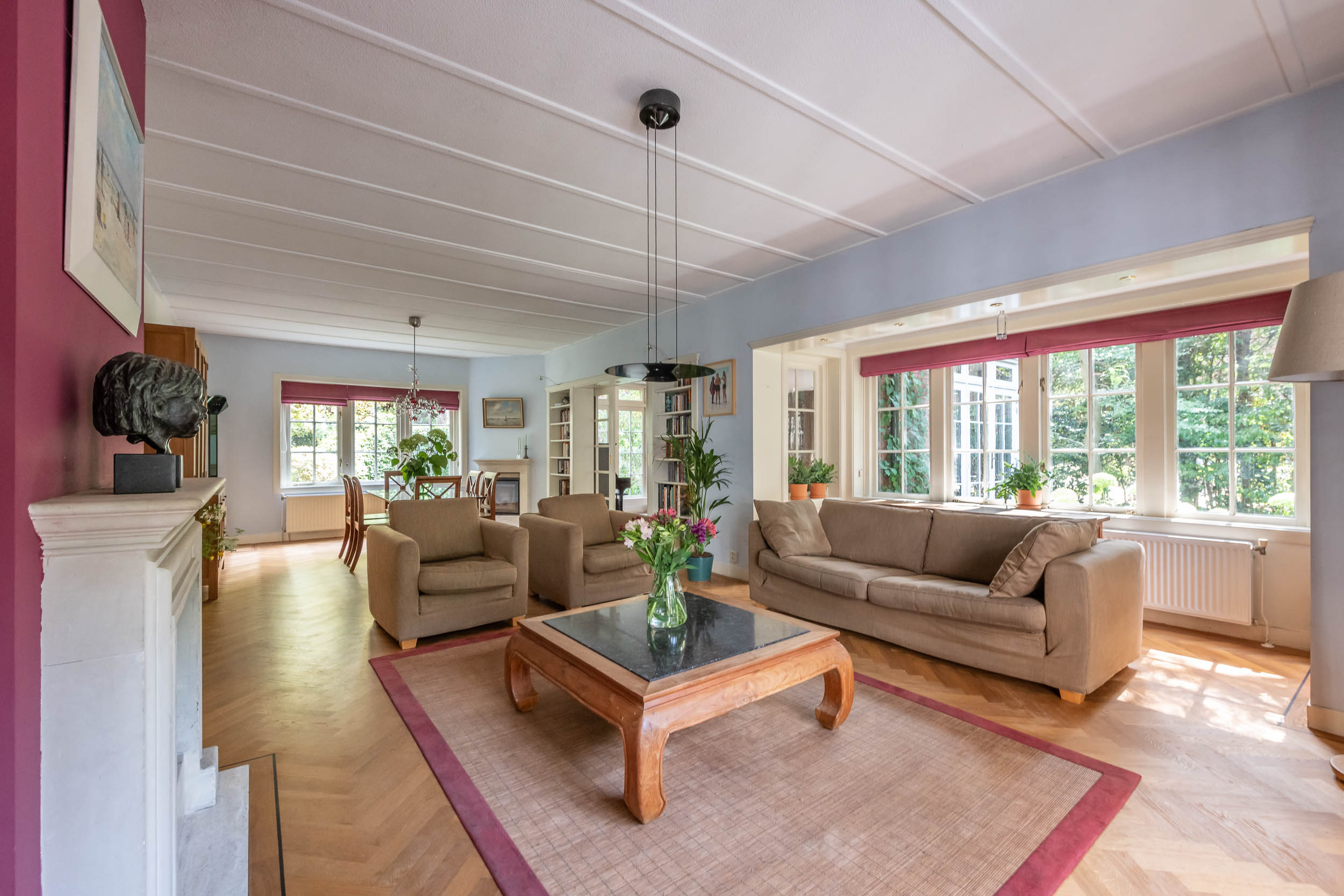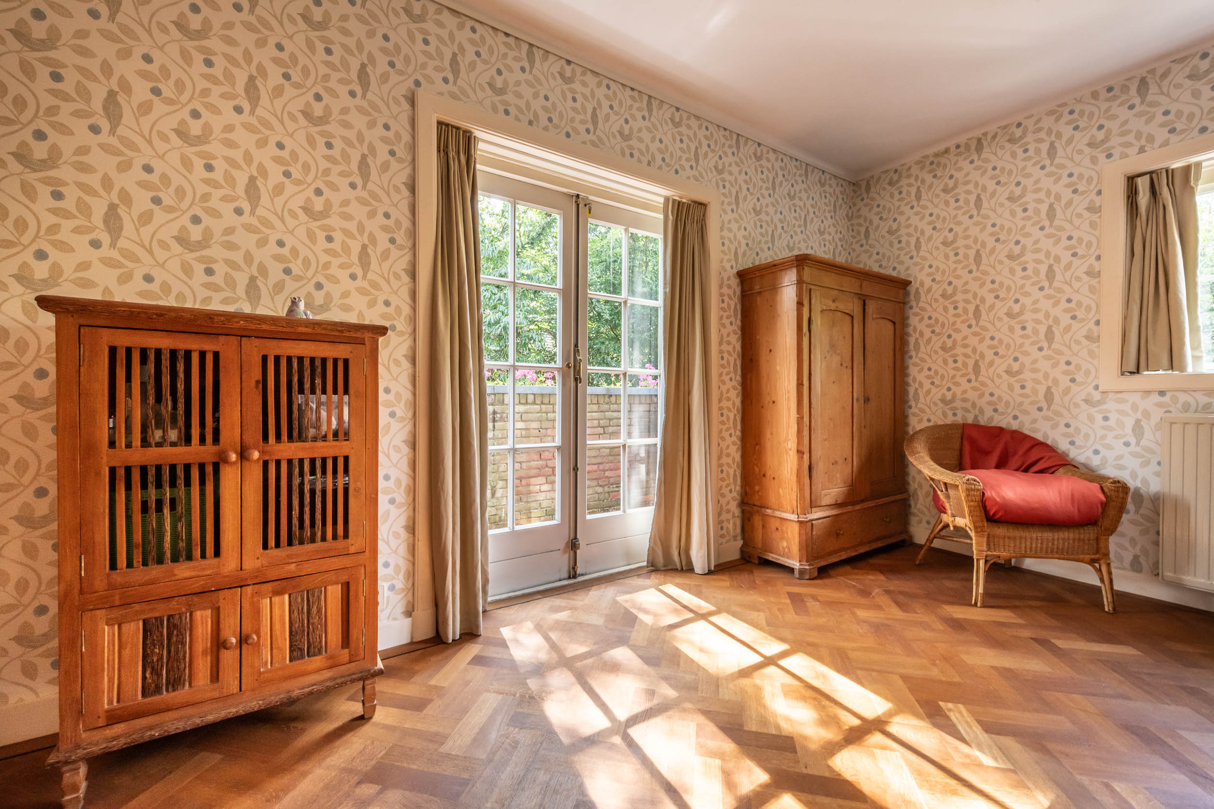 This well-maintained, semi-detached distinctive and uniquely designed villa with swimming pool and garage on a large plot of over 1,000 m² is located on the green and quiet Grenslaan. All living areas are beautifully situated facing the sun (west and south side). A family home par excellence: 6 bedrooms and 2 bathrooms! The extension on the side of the house (which completely matches the style of the main house) has created plenty of space on the ground floor for an extra room, such as a playroom, TV room or study.  The beautifully landscaped garden has several terraces, is in a sunny location facing the west and offers complete privacy! At the rear of the garden, where the plot borders Wikkelaan, there is parking space for two cars on private land with two private charging stations.