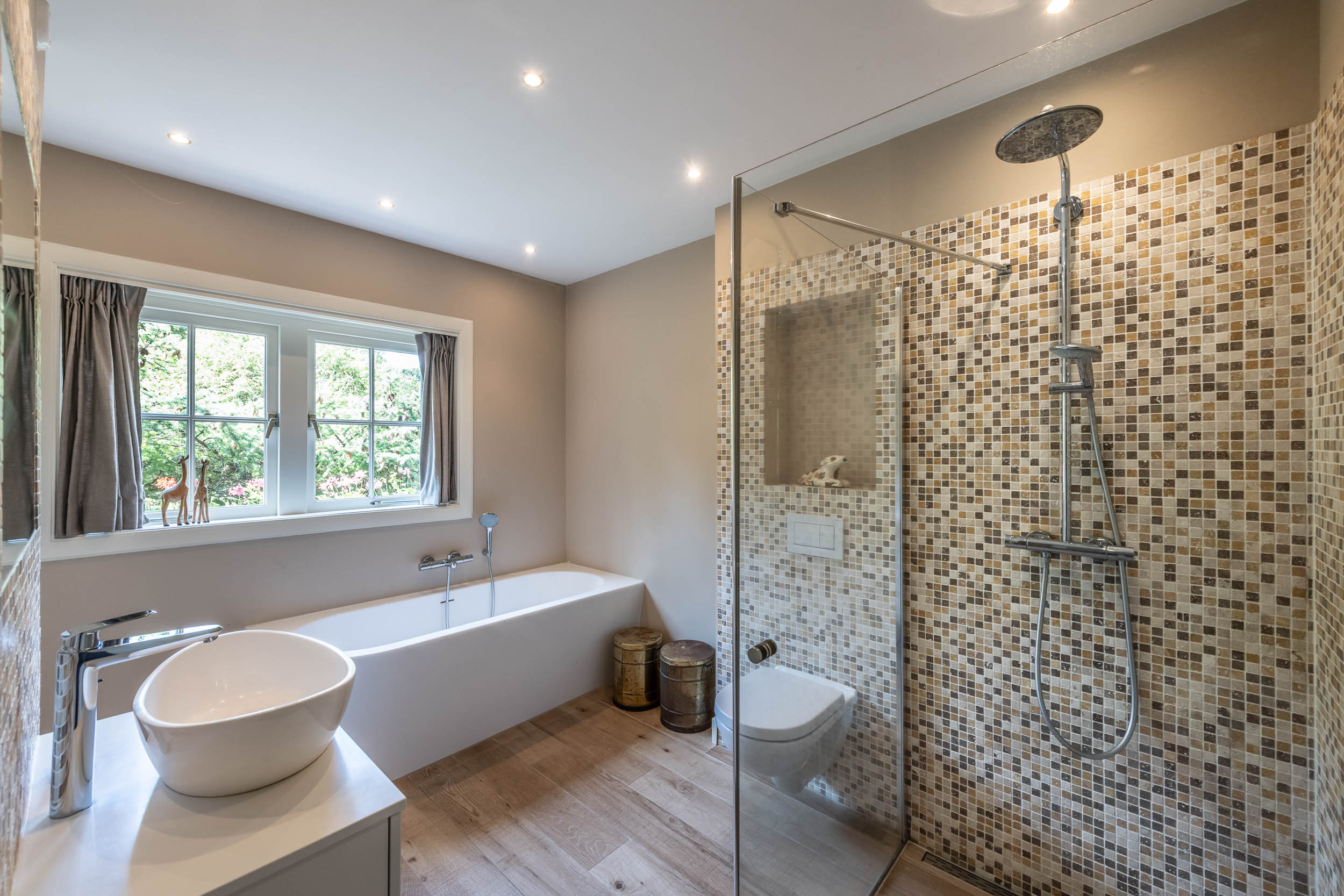 Schools, shops, the railway station and sports facilities are all within cycling distance, as are the beach and town. In short, wonderful living in a green area with everything within easy reach.