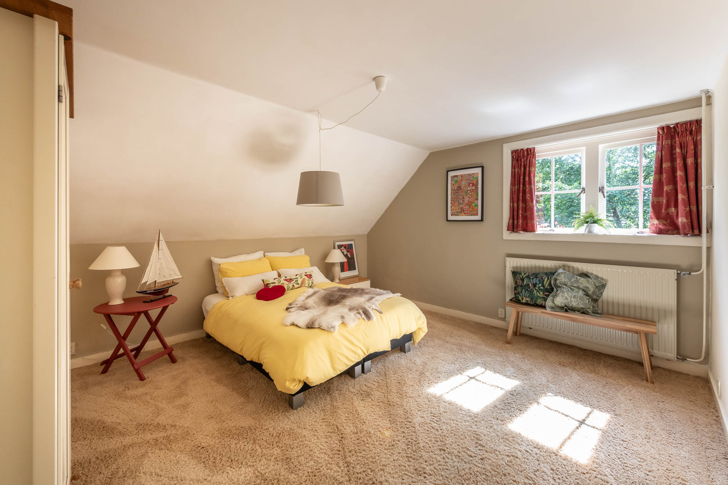 Landing with cupboard space and central heating boiler (2025), large, ridge-high bedroom with Velux window