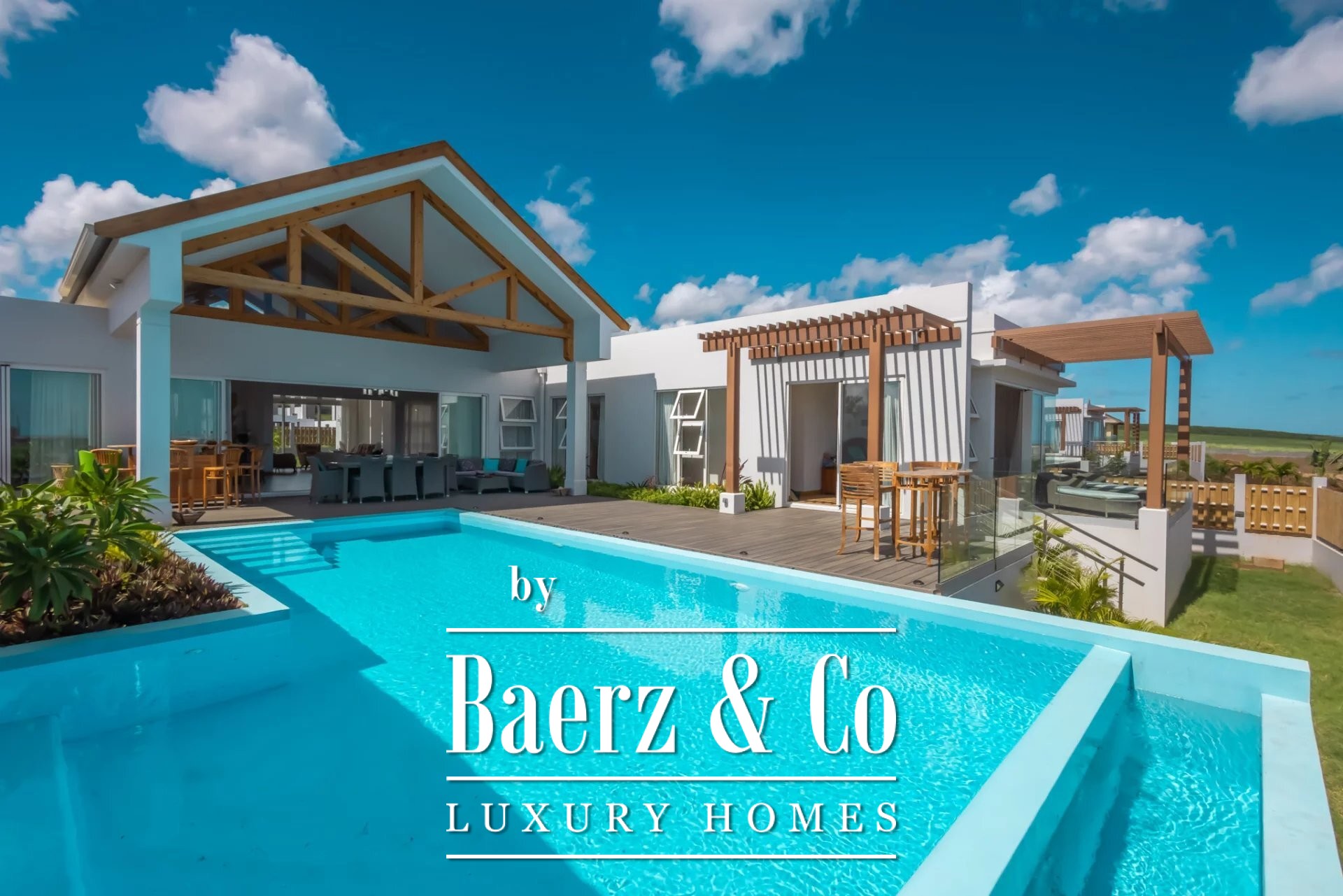 Luxury villa Albion Mauritius presents a rare blend of modern architecture and generous proportions on the west coast of Mauritius. This 552 m² residence is situated in a newly established residential enclave in the heart of Albion, where privacy and security form the backdrop for elegant daily living.