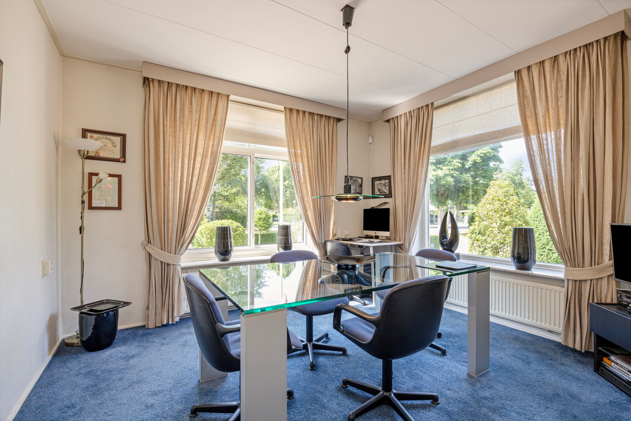 The spacious and bright study with closet is located at the front on the corner of the villa directly to the right of the corridor.