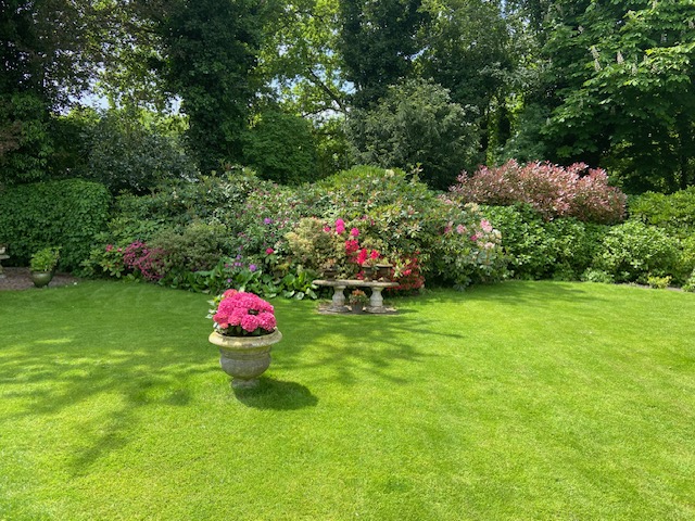 The spacious driveway offers space for several cars, in addition to the detached double garage and a lush front garden.