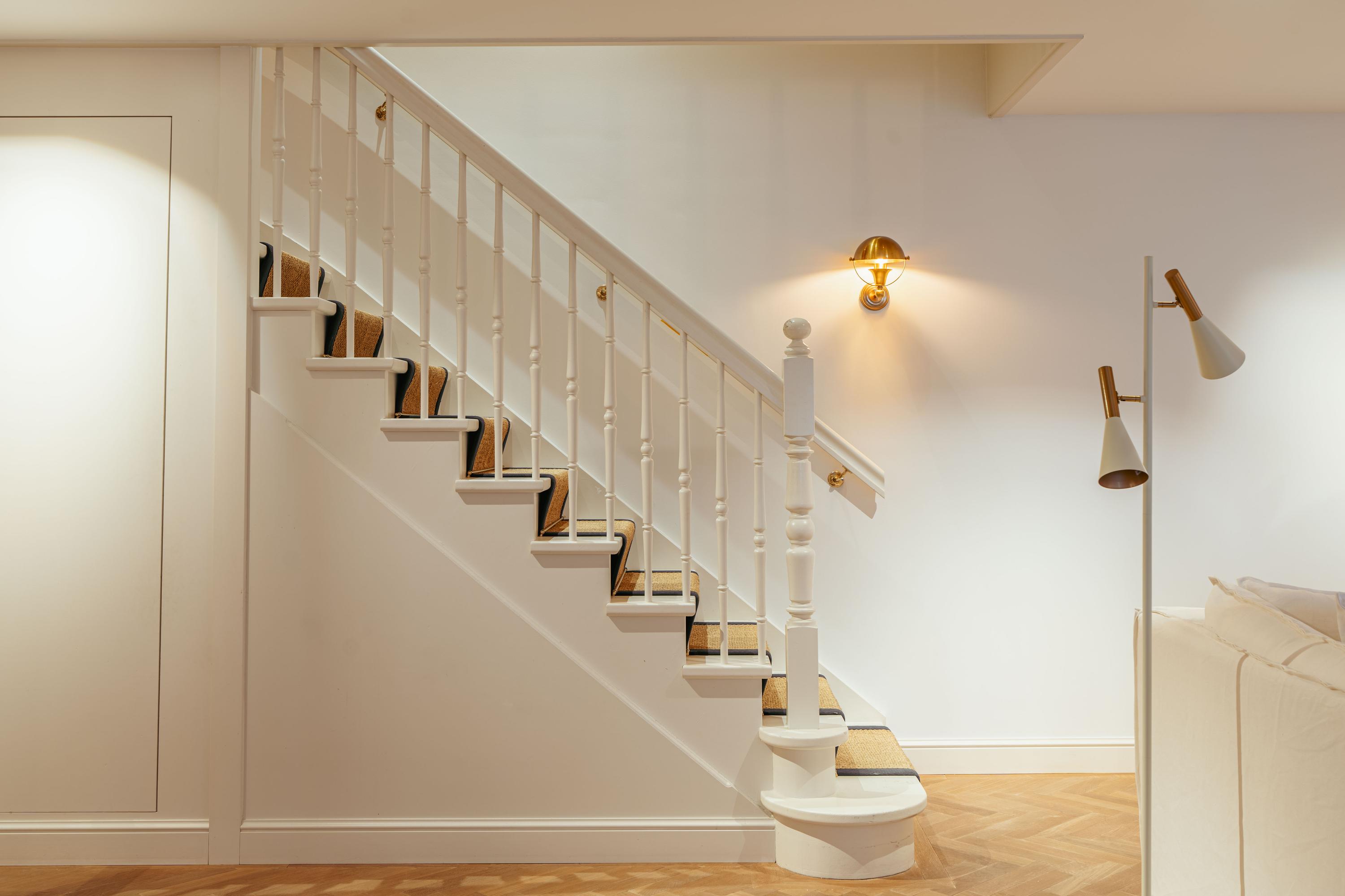 The cohesive style from the ground floor continues upstairs, with a keen eye for detail and high-quality finishes. This level includes three spacious bedrooms, one of which is the master bedroom, as well as two bathrooms featuring amenities such as a bathtub and a rain shower for two. The master bedroom boasts a walk-in closet and built-in audio speakers.