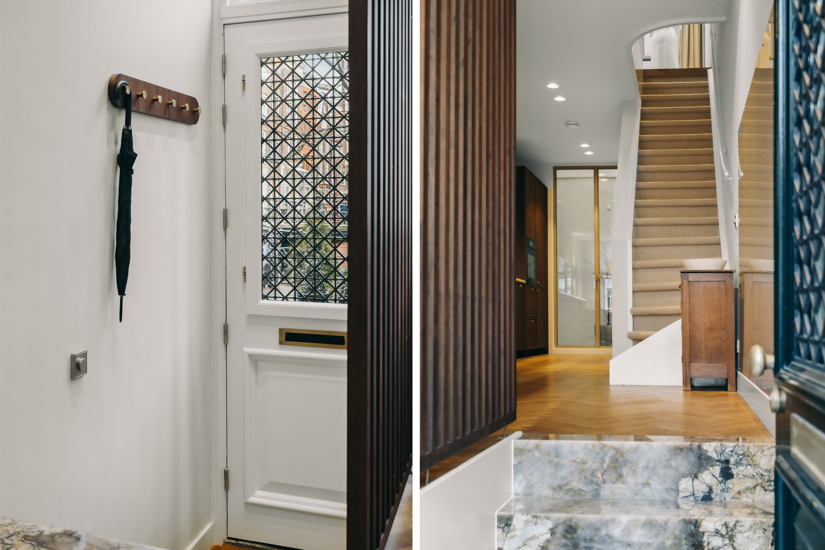 Canal House Amsterdam stands as a testament to timeless architecture, combining 17th-century heritage with a refined, architect-led renovation. The residence offers 134 m² of living space with a distinctive layout and a secluded mini-courtyard, all set along the illustrious Herengracht. Entering through the classic façade, one is welcomed into warmly lit interiors featuring high ceilings, oak herringbone parquet floors, and bespoke cabinetry. The living-dining kitchen is custom designed, seamlessly connecting to an intimate patio through double doors. A thoughtfully placed workspace enjoys views over the canal.