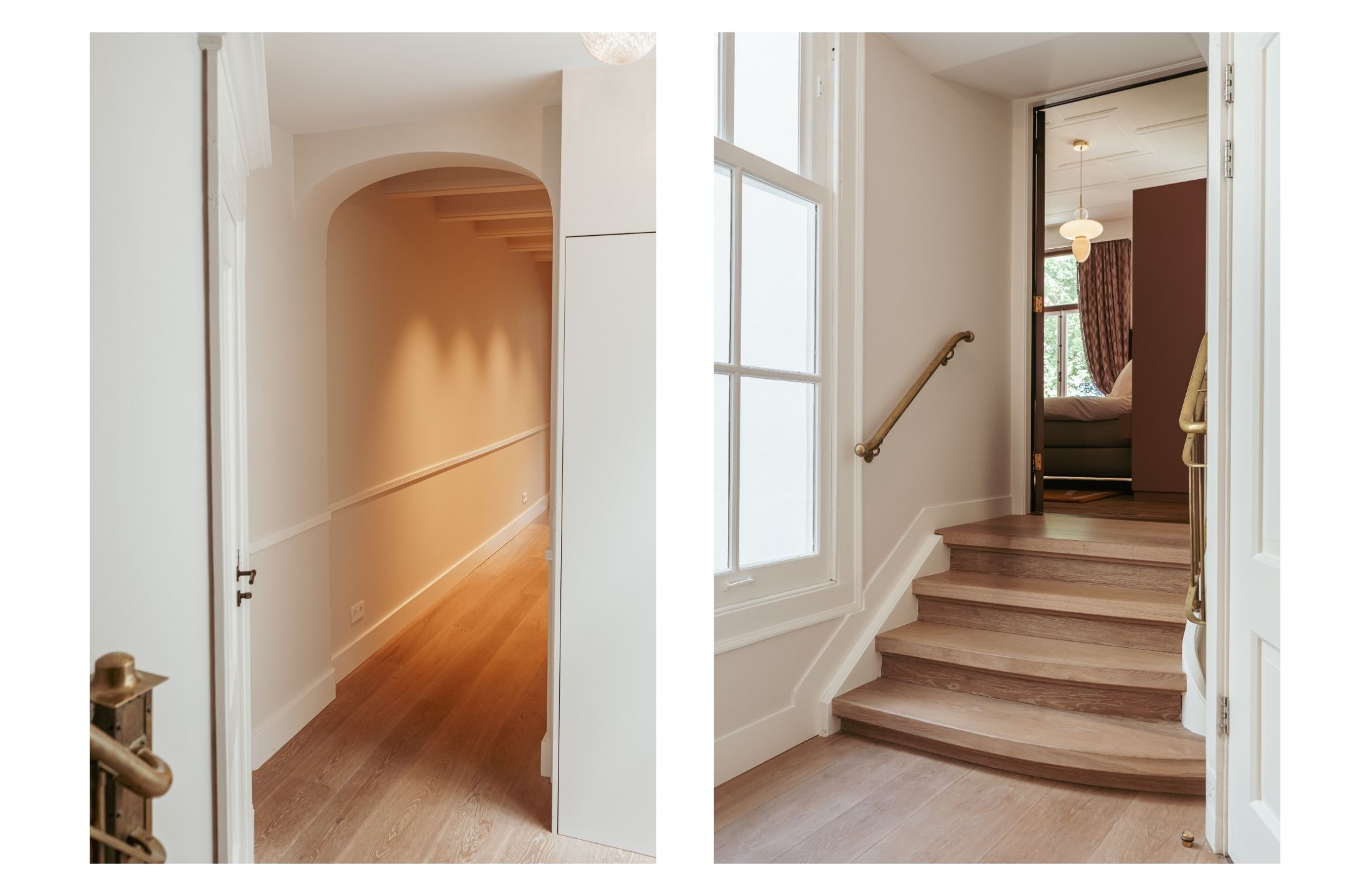 Middels het gemeenschappelijke trappenhuis bereikt u de entree van dit indrukwekkende appartement. De woning is in 2022 volledig en hoogwaardig verbouwd door architecten, waarbij klassieke details en moderne luxe op sublieme wijze zijn gecombineerd. Dankzij de aanwezigheid van onder meer domotica en vloerverwarming is het wooncomfort van een hoog niveau.