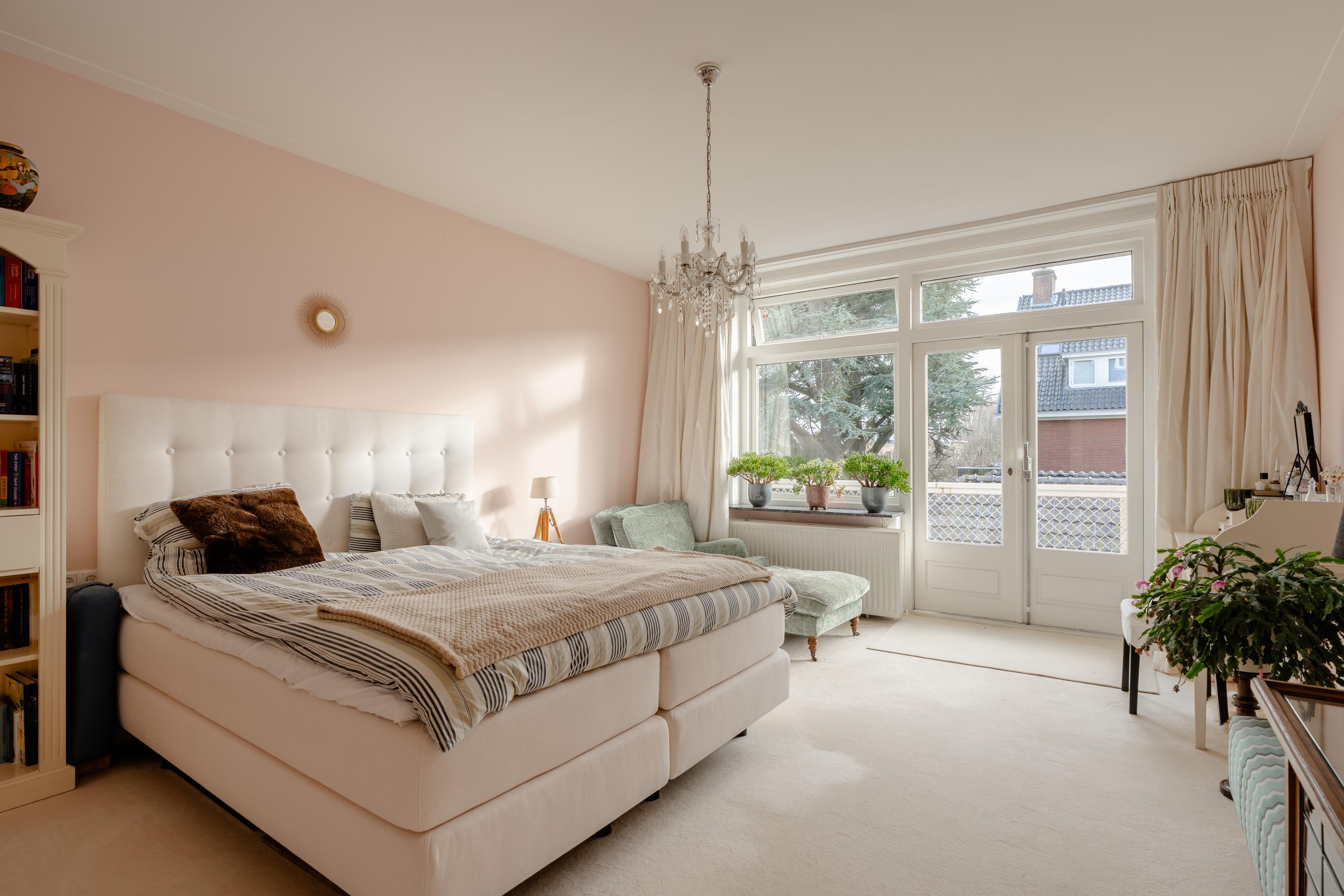 Through the French doors in both the kitchen and dining room you reach the large backyard, which is ideally positioned facing southwest. The sunny garden offers plenty of privacy and space to enjoy the afternoon and evening sun. At the southern side of the garden there is a spacious detached garage with private driveway.