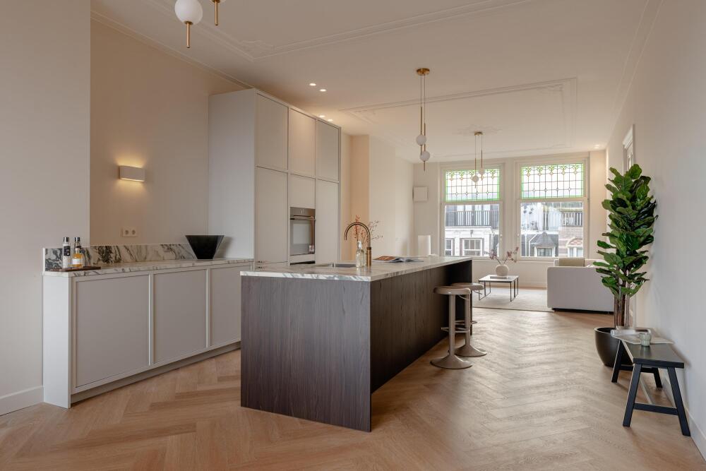 Located on the sought-after Koninginneweg in Amsterdam Oud-Zuid, this elegantly finished apartment of 87.7 m² is situated on the third floor. The property is distinguished by a generous open-plan living area, high ceilings and a quiet position with green views at the rear. With two bedrooms, two bathrooms and a covered balcony, this is a refined and comfortable home in close proximity to the Vondelpark and the Museum Quarter.