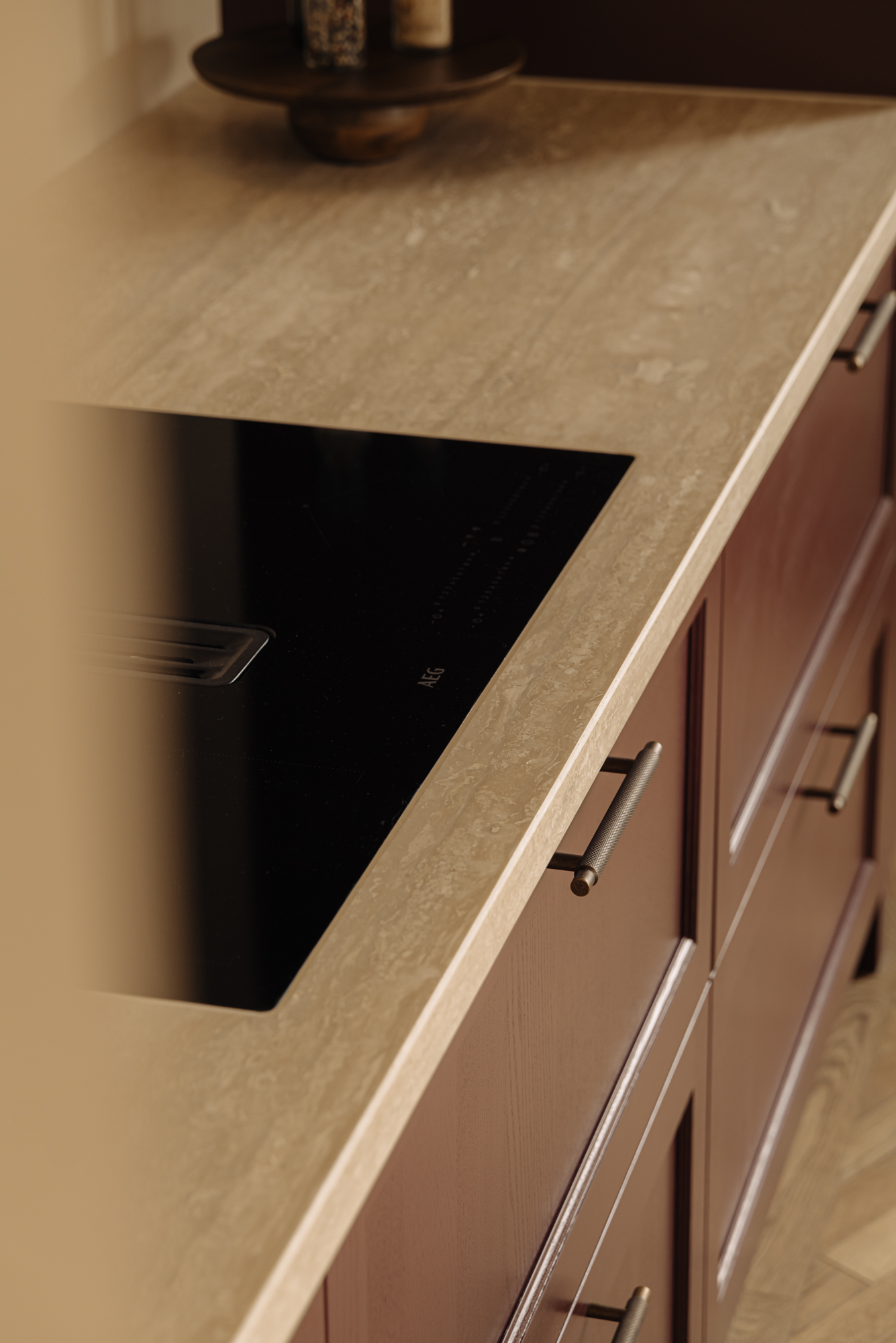 The apartment has been fully renovated to the highest standards, using rare, premium materials such as natural stone. The practical layout includes a spacious living room with ceilings reaching 3.44 metres, a modern open-plan kitchen with integrated appliances, and a private bedroom with en-suite bathroom on the lower level. Large windows flood the space with natural light, allowing the carefully designed interior to shine and enhancing the historic surroundings.