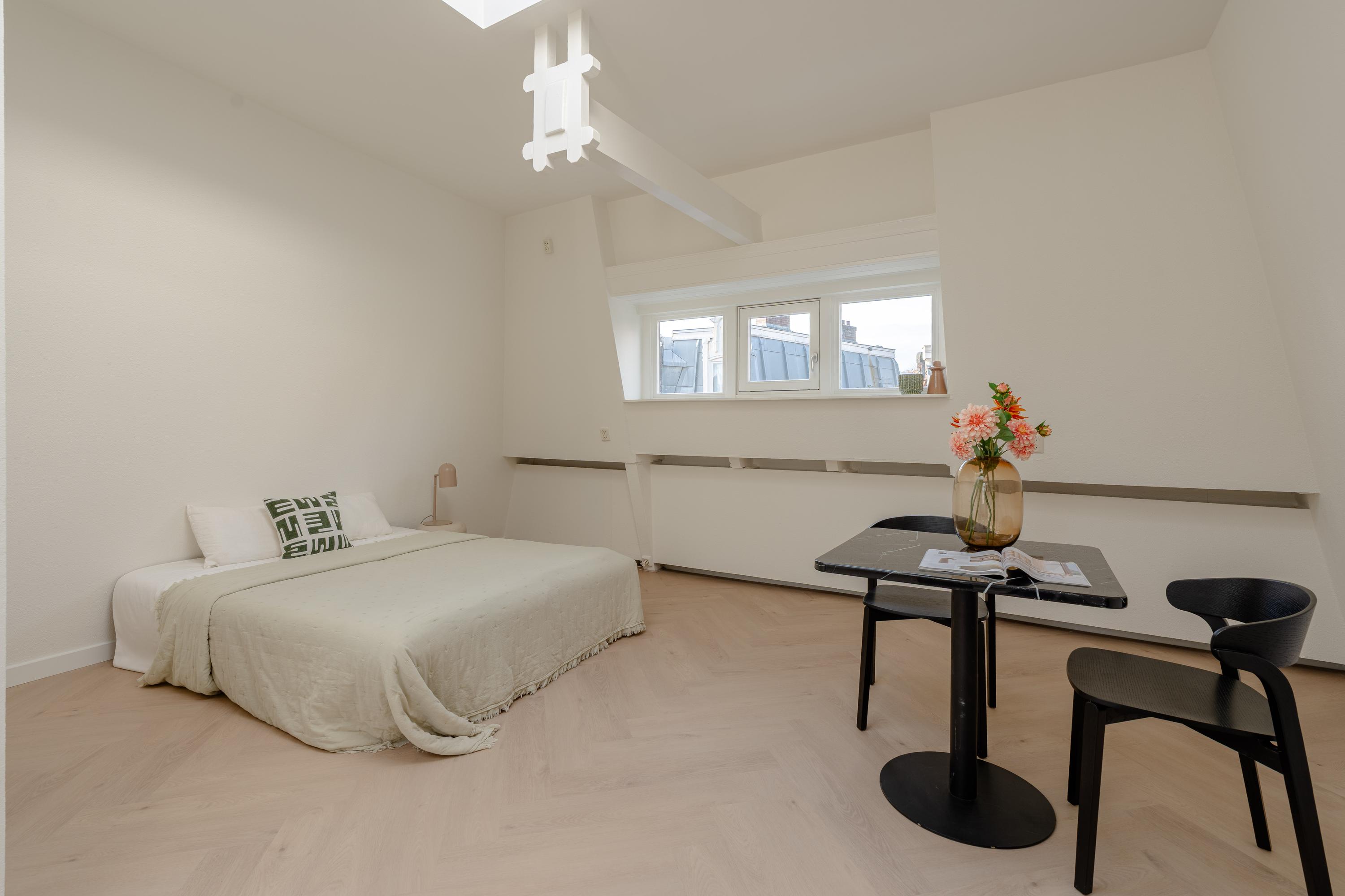 The spacious living room overlooks Nieuwe Spiegelstraat and receives abundant natural light. The bay window offers a beautiful view of the Rijksmuseum. From the kitchen, you can access the large south-facing roof terrace (approx. 44 m²) — a true rarity in this area. Authentic wooden flooring extends throughout this level.
