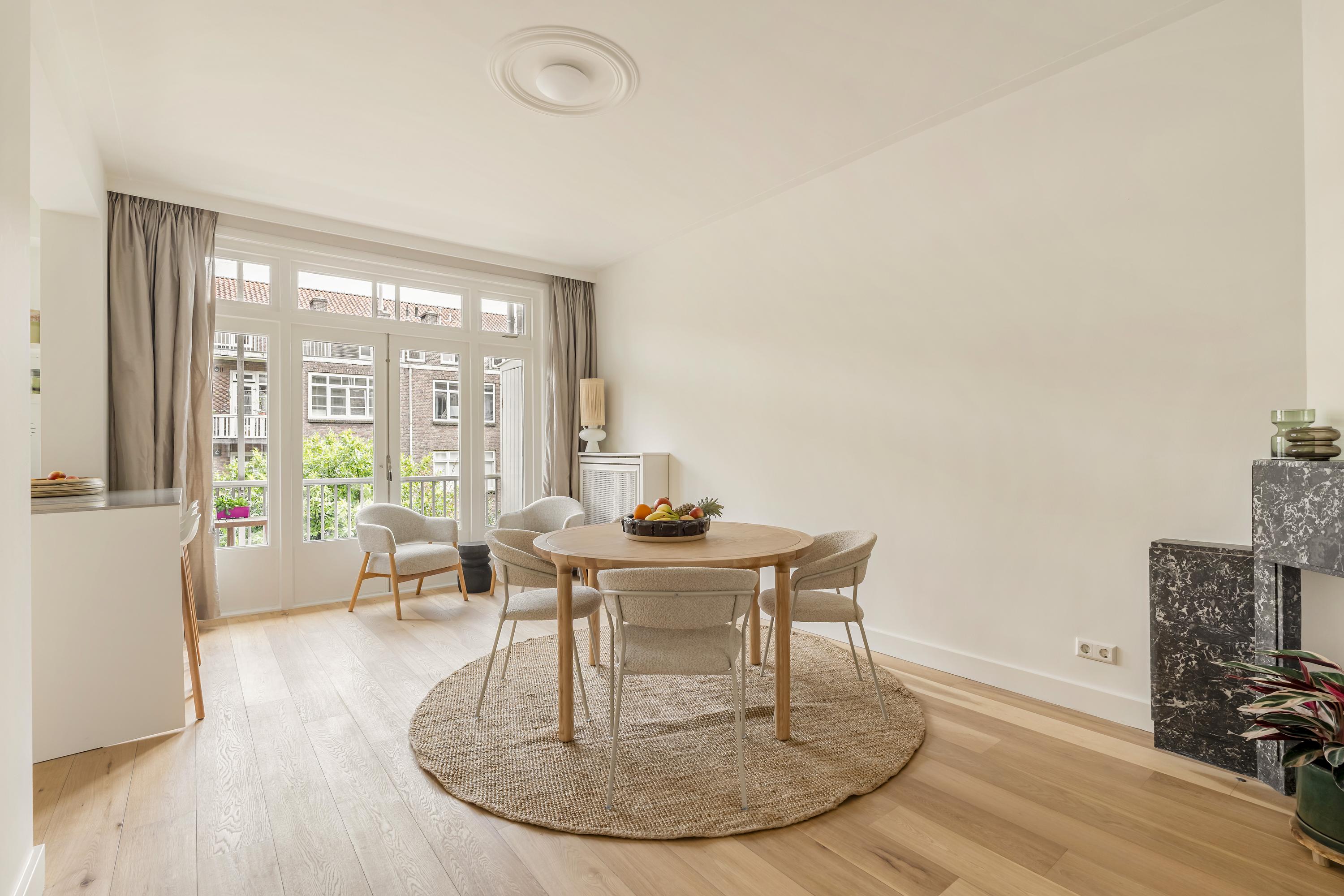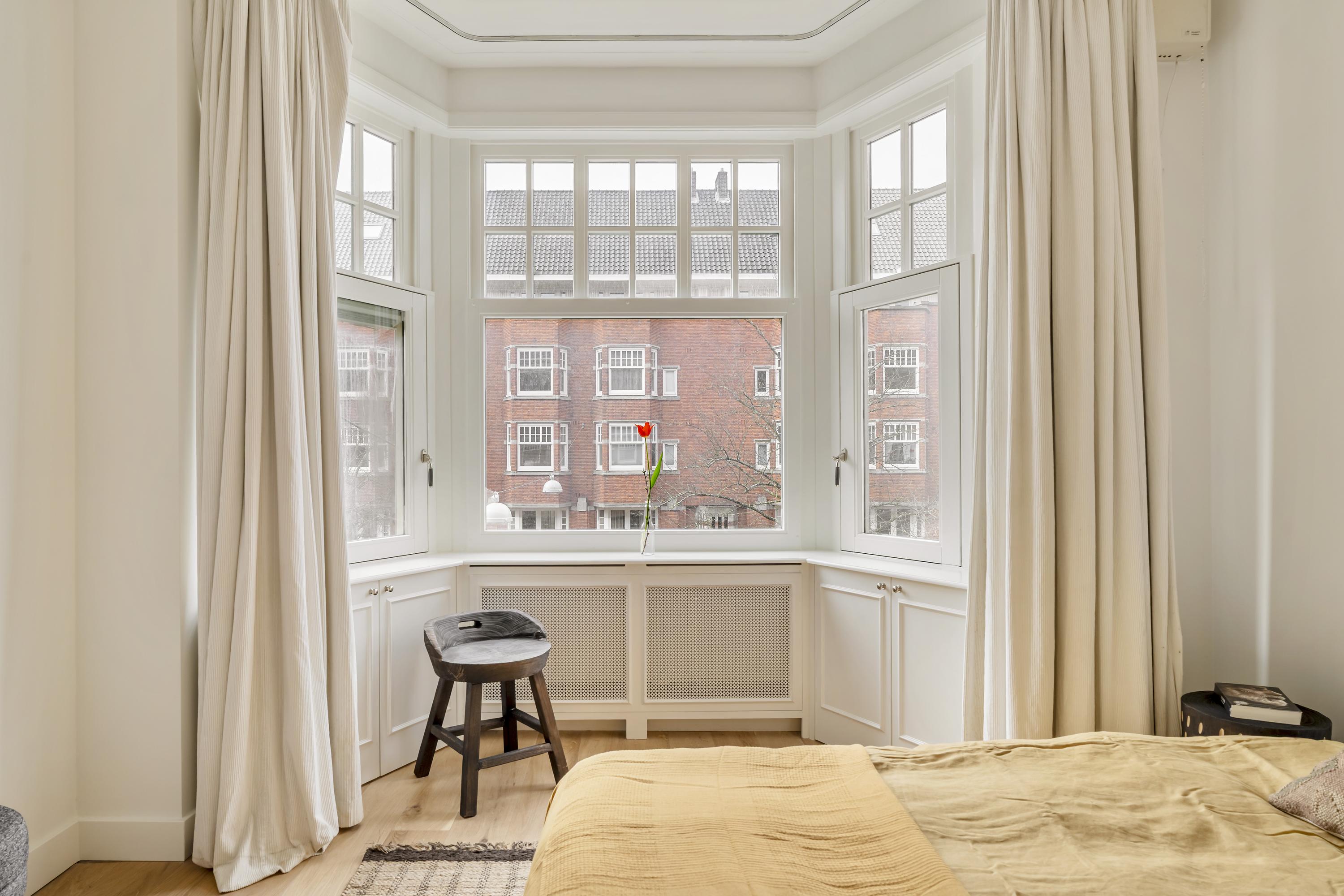 Apartment Amsterdam Zuid brings together period charm and contemporary comfort in a coveted Amsterdam-Zuid address. This residence spans approximately 112 m², offering three well-proportioned bedrooms and a spacious living area infused with character. The apartment’s heritage features, including original sliding doors, custom cabinetry, and iconic bay windows, are complemented by thoughtful renovations such as floor insulation and double glazing.