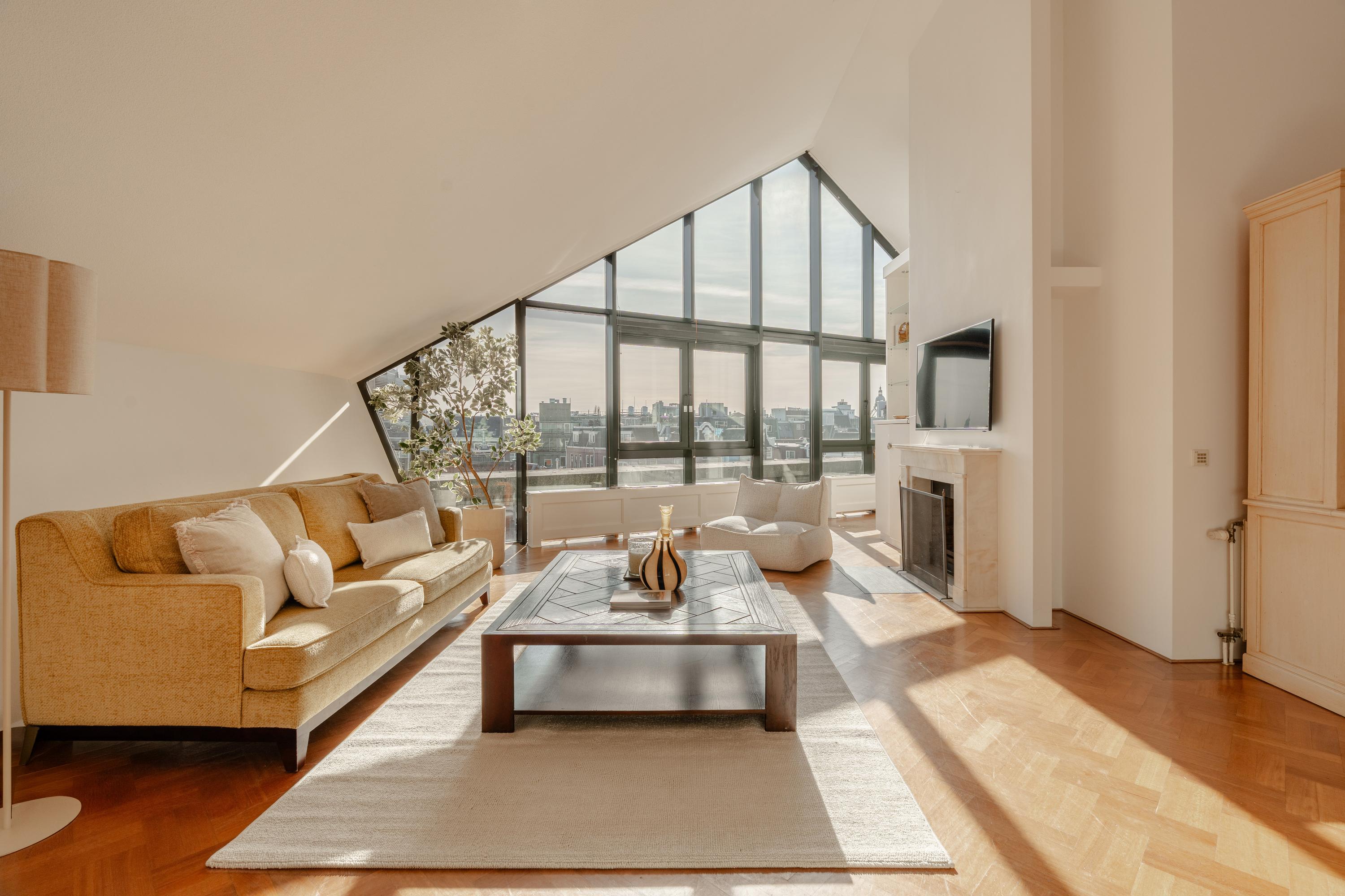 Bedrooms across the lower floor enjoy thoughtful layouts, quality fittings, and French balconies or direct outdoor access, providing sanctuary and flexibility for sleep, study, or work. Modern comforts include air conditioning, lift, and advanced insulation, combined with monumental architecture and understated luxury. Positioned among Amsterdam’s finest boutiques, cultural institutions, and top dining, this apartment places classical heritage and cosmopolitan life side by side.