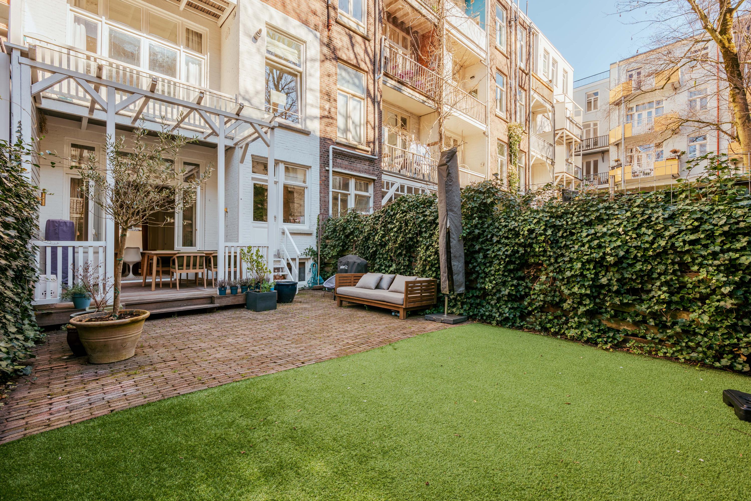 - Spacious sunny garden with covered terrace of 61 m² + two balconies