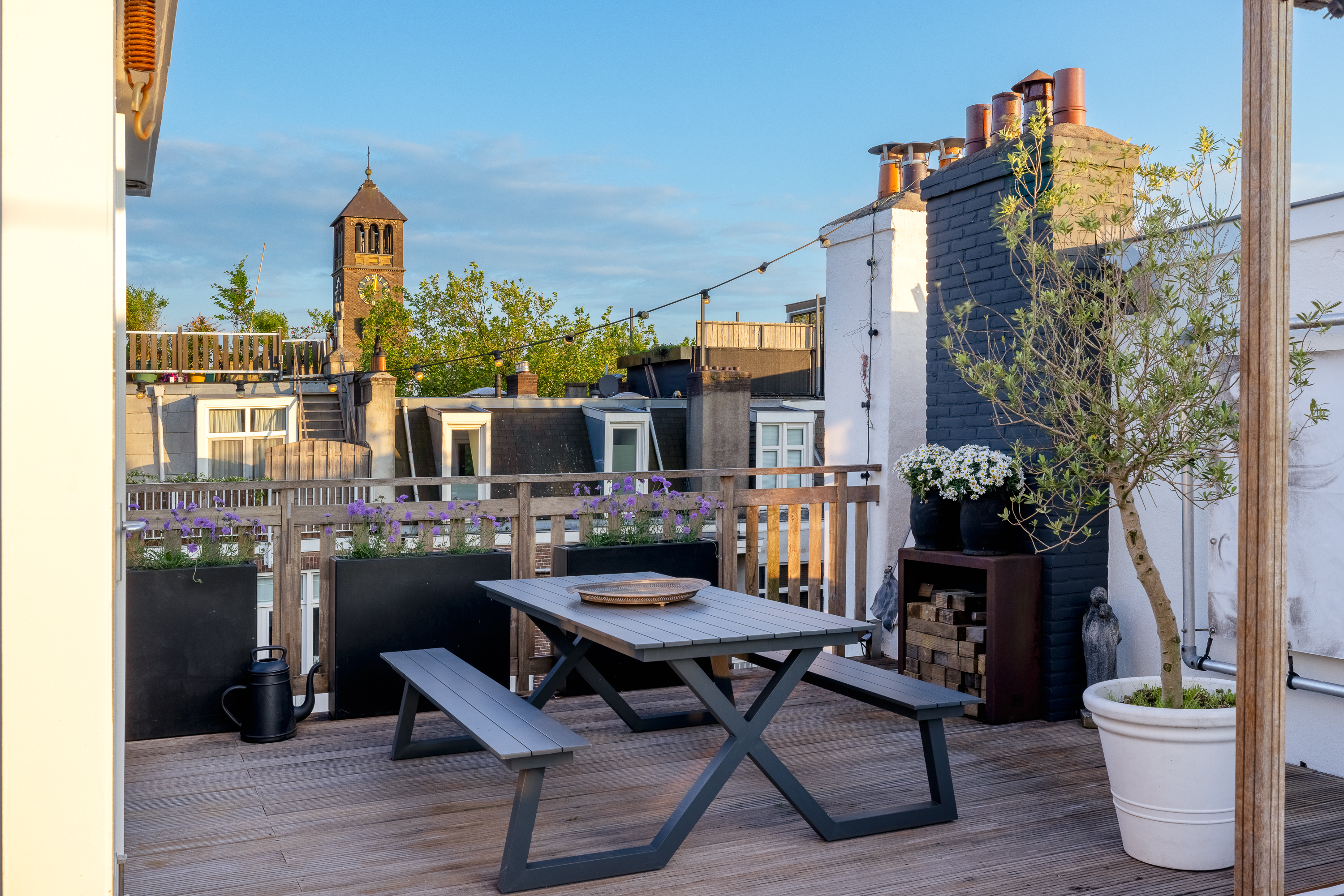 At a fantastic location in the popular Amsterdam Oud-Zuid, we offer this wonderfully bright and spacious double upper house. The beautiful roof terrace provides plenty of privacy, and you can enjoy the sun all day long. Multiple seating areas can be created. The house has three bedrooms, a spacious walk-in closet, and a roof terrace structure that can also be set up as a home office or yoga space. At the front of the house, there is also a lovely balcony.