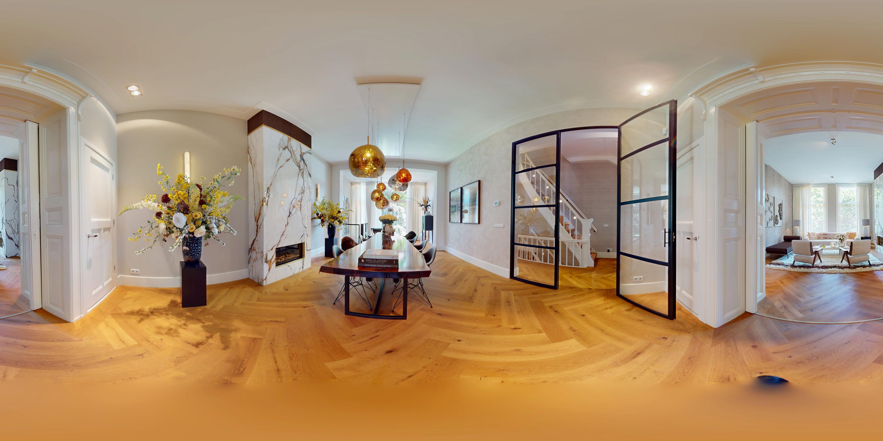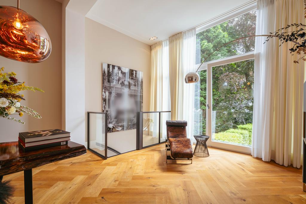 Located on the beautiful Vossiusstraat, this exceptionally stylish and spacious home of 323 m², spread over three floors and situated on freehold land, offers a rare combination of classic elegance and contemporary comfort. Finished with high-quality materials, including herringbone wooden floors, steel pivot doors, marble accents, and multiple gas fireplaces, this property features six bedrooms, three luxurious bathrooms, an expansive live-in kitchen, a beautifully landscaped south-facing garden (157 m²), and stunning views over the park. It provides an exceptional blend of space, tranquility, and urban allure—right in the heart of Amsterdam Oud-Zuid.