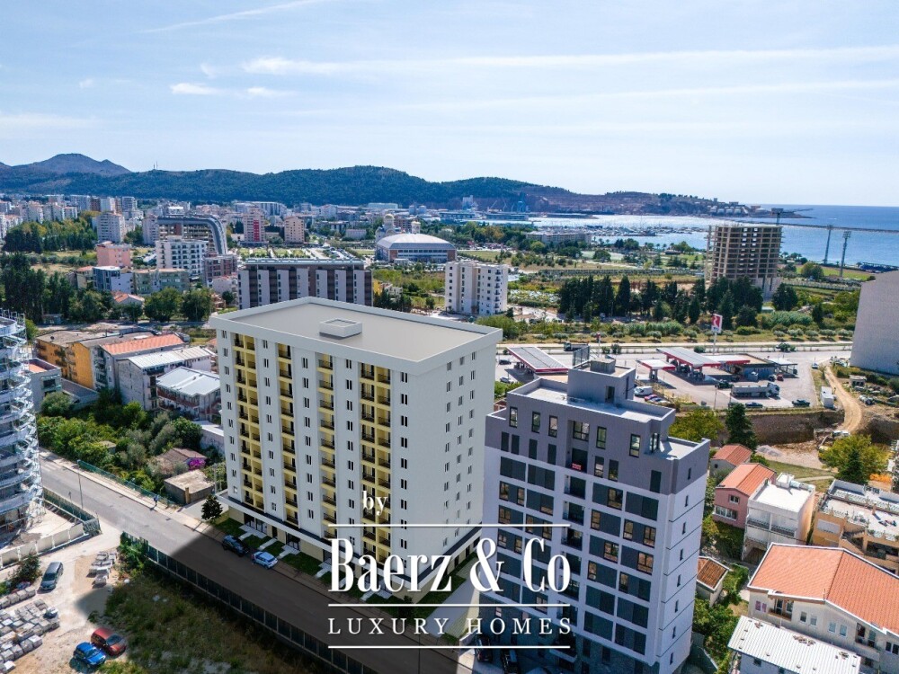 Apartment Bar offers a rare perspective on Montenegro’s Adriatic coast. Just 800 m from Bar’s city centre, this 114 m² apartment brings together panoramic sea and mountain views from the tenth floor of a newly built, ten-storey residence scheduled for completion in February 2028. The beach is a 500 m stroll, with restaurants and shops in close proximity, emphasizing a lifestyle rooted in both convenience and connection to nature.
