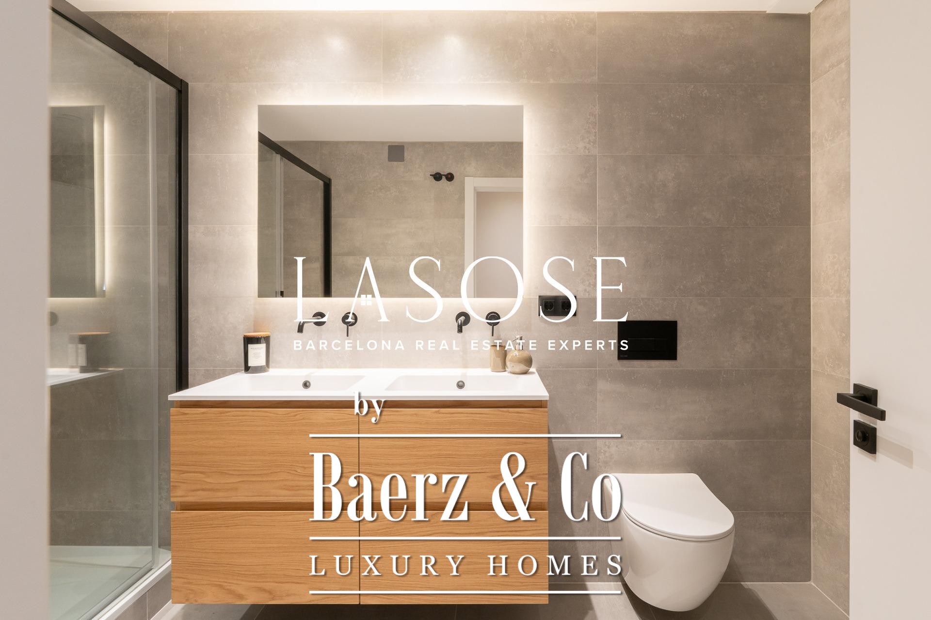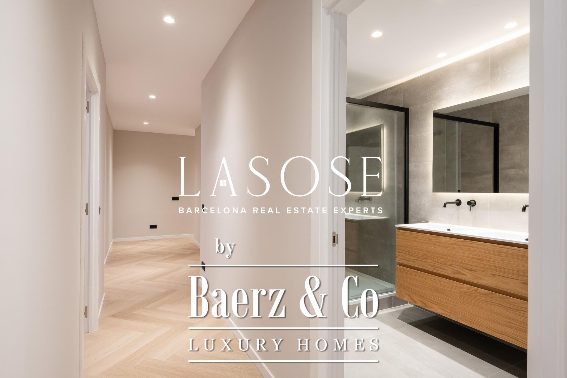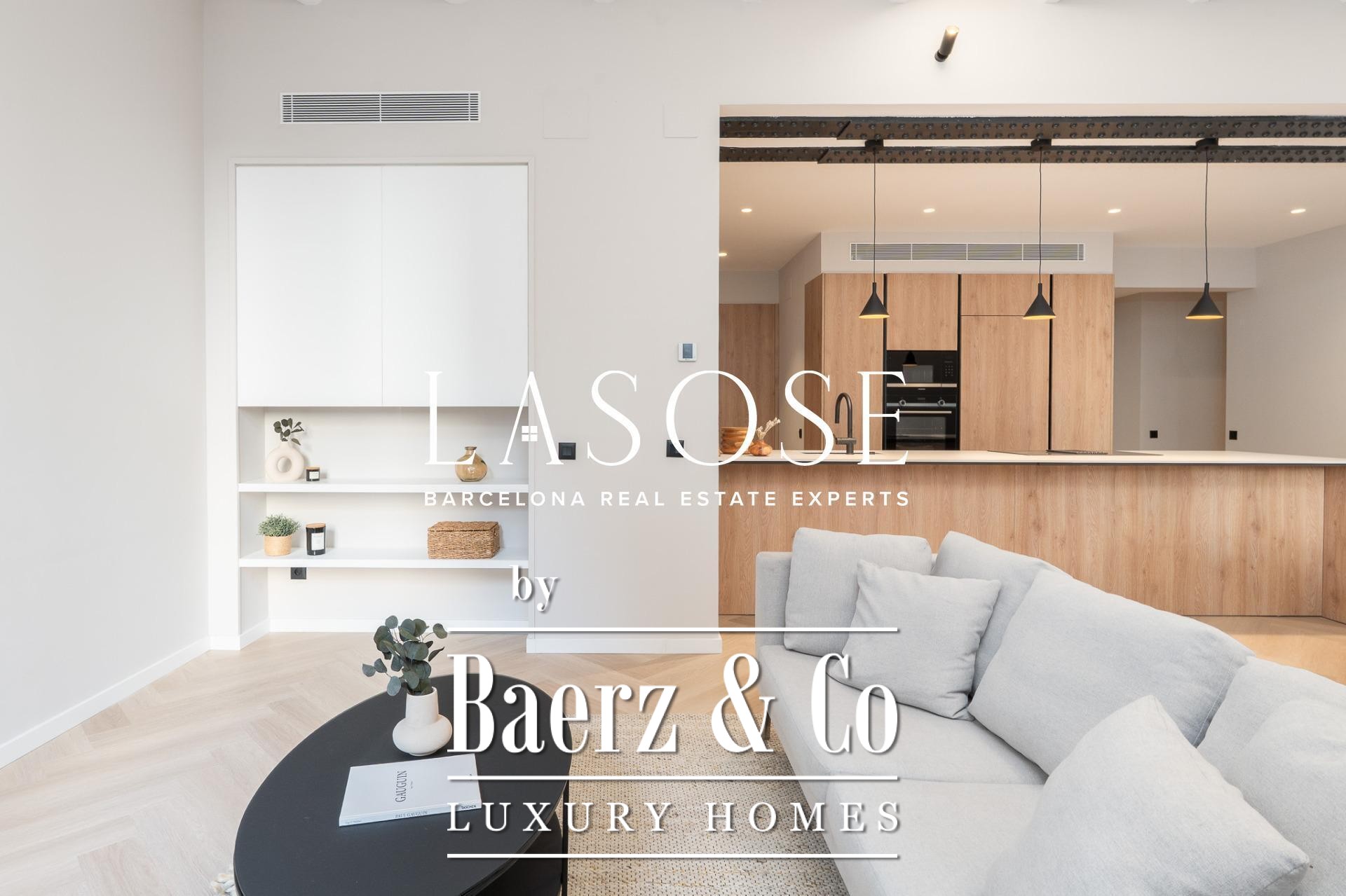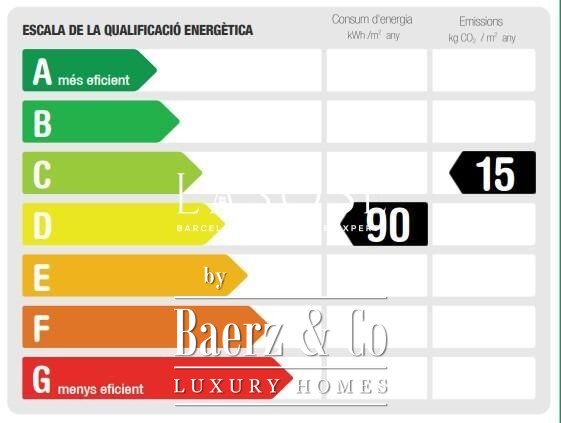 Three bedrooms, including a master suite with private bathroom and separate dressing room, are complemented by fitted wardrobes and custom carpentry. Comfort is assured through aerothermal air conditioning and double-glazed wooden windows. Residents benefit from the convenience of an elevator, concierge service, video intercom, and secure armored door. The long-tail variation luxury apartment for sale in Barcelona is well-suited for those who value discretion and design.