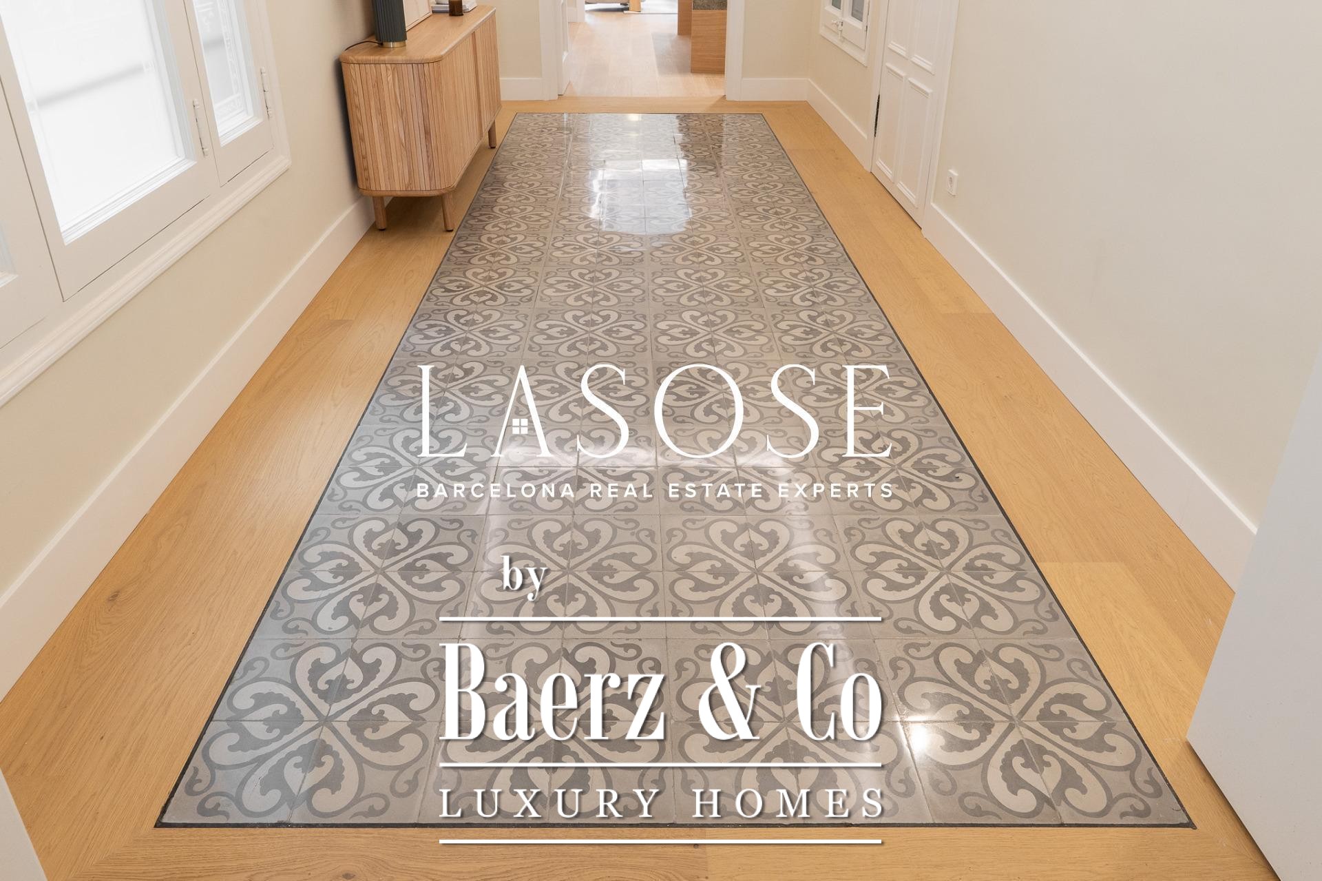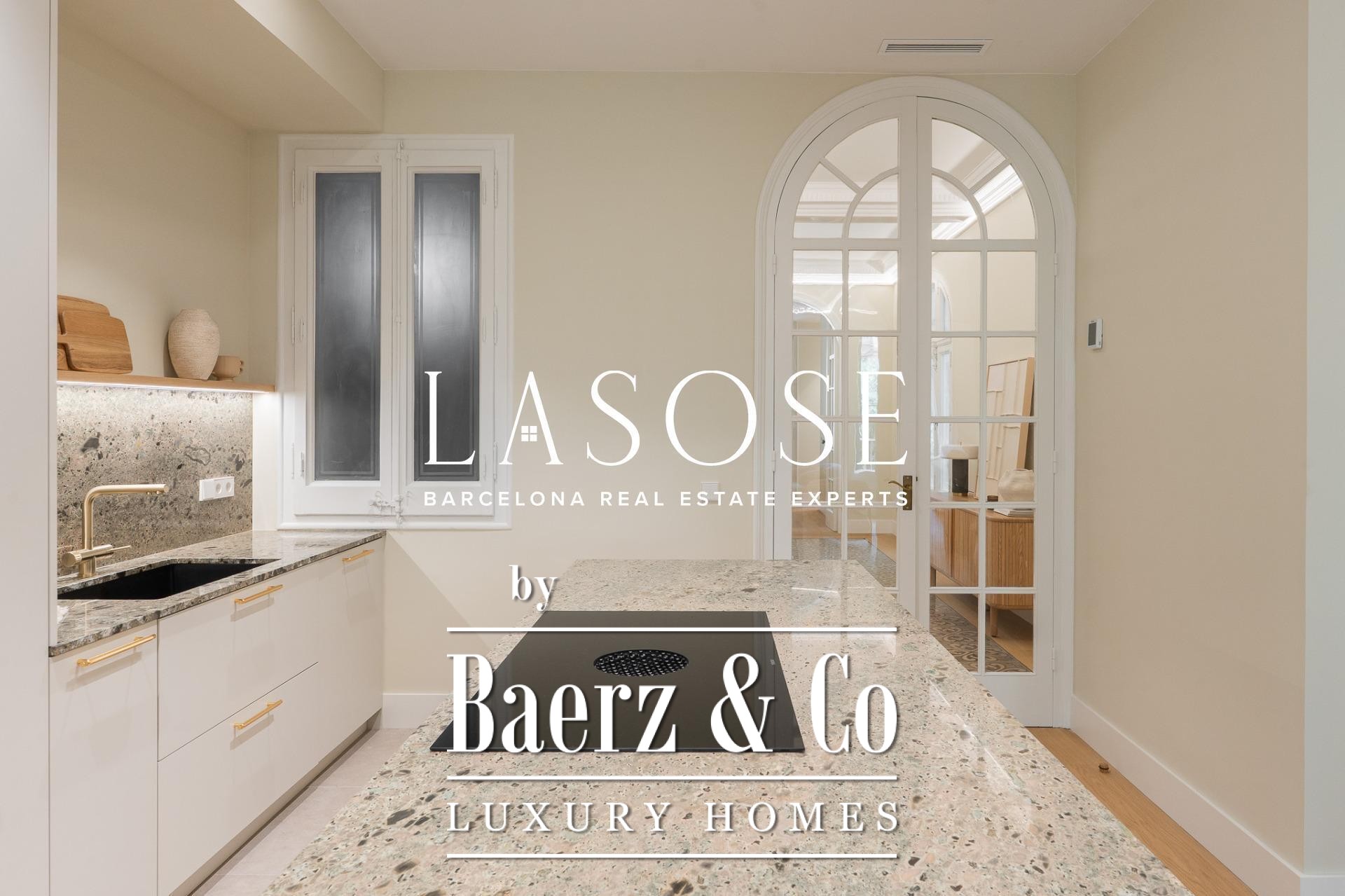 LASOSE is privileged to present this magnificent high-end residence, located in the heart of Barcelona's coveted Eixample district.. . Located in an elegant listed royal estate dating from 1900, this property stands out for its stately architecture, its historical value and its unmistakable character. It is a unique apartment, where the charm of Barcelona's modernism merges with the most demanding comfort and contemporary design.. . Located on a bright 2nd floor with double orientation, the property enjoys abundant natural light throughout the day. Its careful distribution maximizes every corner, offering spacious, functional and stylish spaces.. . The property has three elegant double suites, all with full bathroom, and one of them equipped with an exclusive glazed gallery, perfect as a chill out corner or as a sophisticated workspace.. . The spacious living-dining room is harmoniously integrated with a designer kitchen with central island, equipped with top-of-the-line materials and appliances: polished marble countertop by Levantina, porcelain flooring, and high-end appliances by De Dietrich, Bora and Liebherr (including refrigerator, dishwasher and wine cooler).. . In addition, the dining room - bathed in natural light - can easily be transformed into a fourth bedroom according to the buyer's needs.. . This exclusive home offers luxury finishes such as natural wood floors, original hydraulic tiles and high ceilings decorated with moldings and rosettes, which