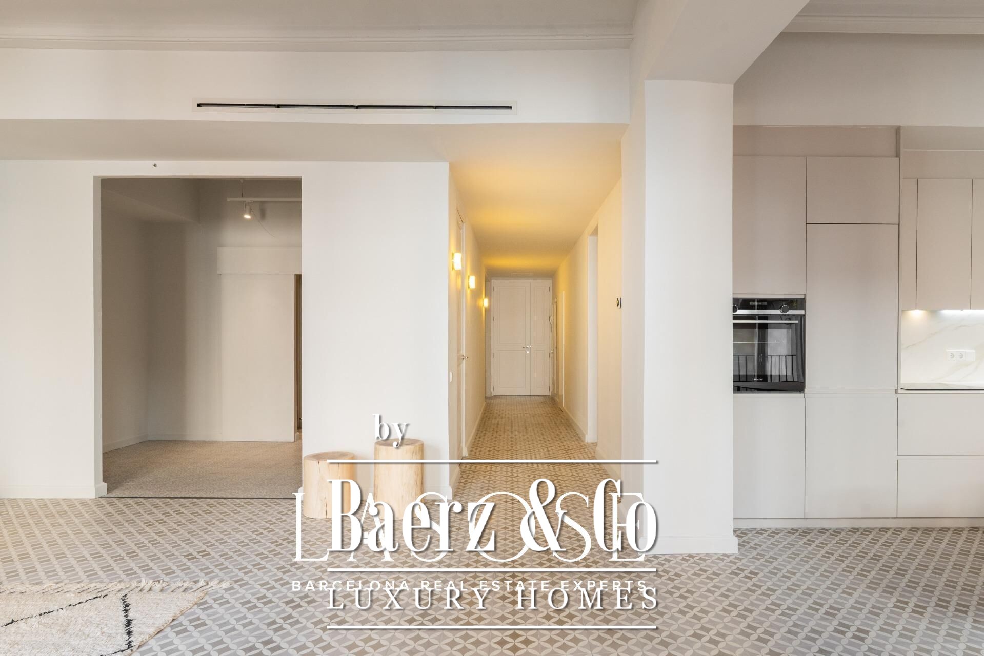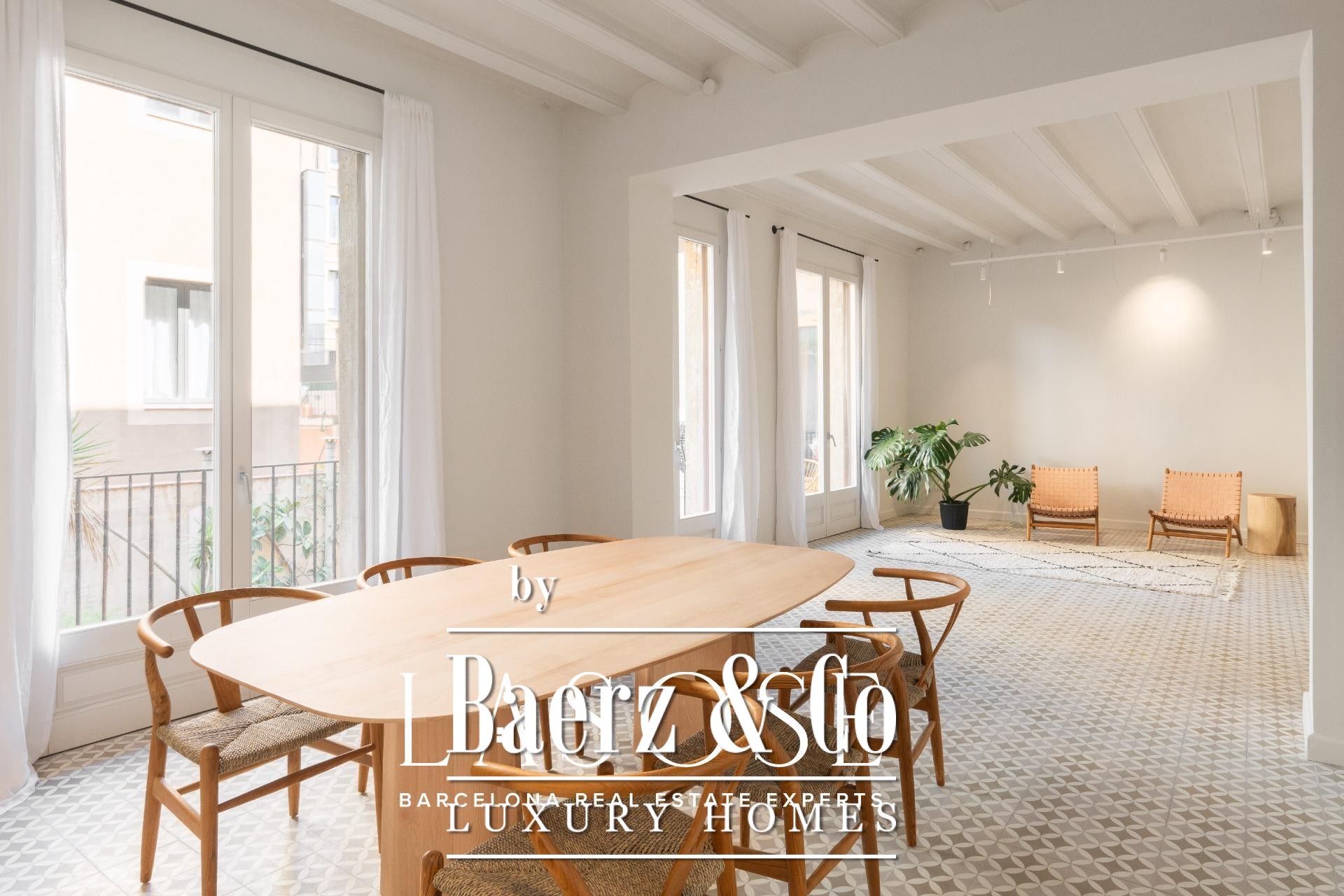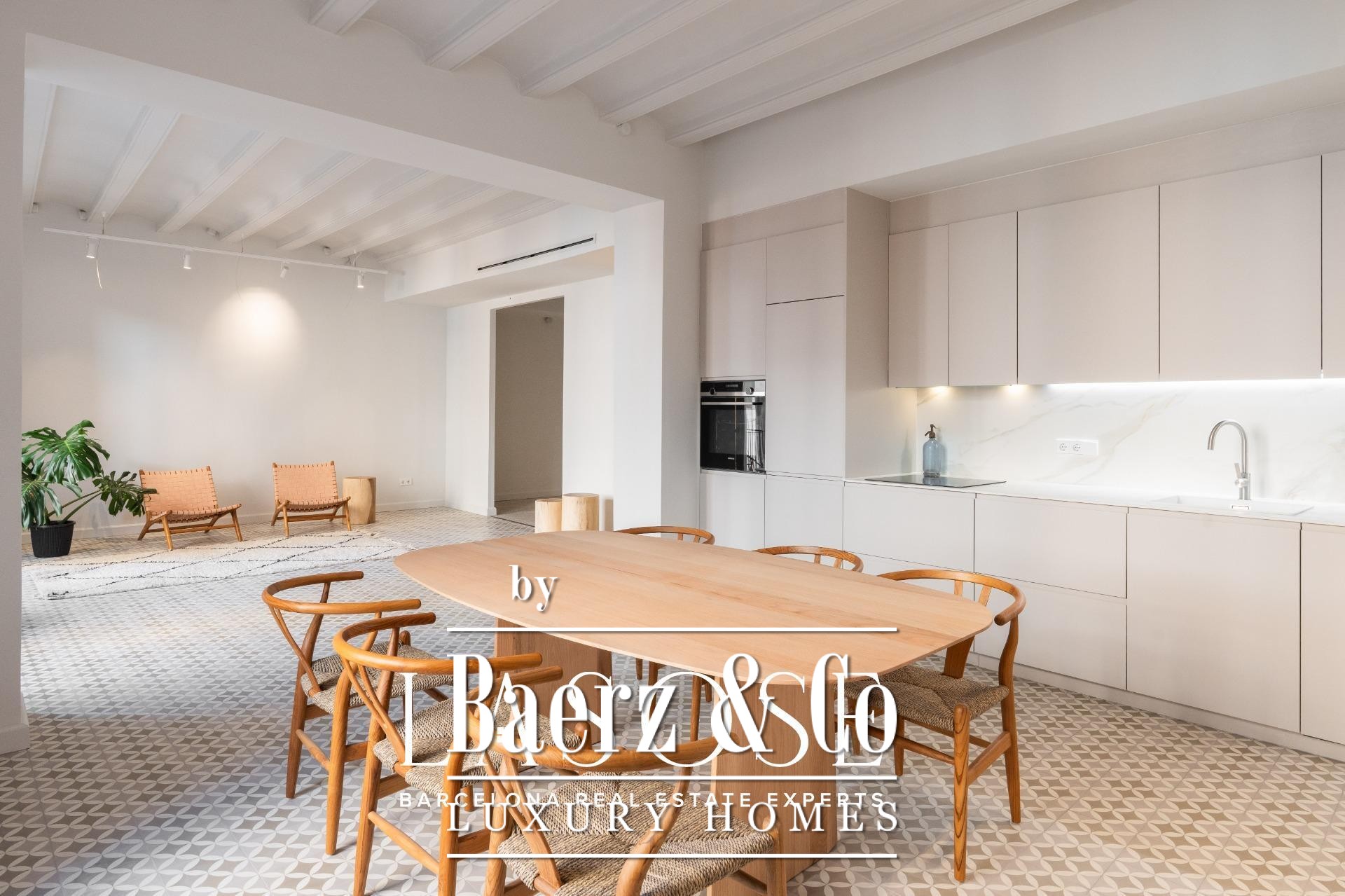 Stylish Renovated Home in the Heart of El Born – 133 m² Full of Charm and Modernity. . Discover this spectacular 133 m² apartment, fully renovated and located in the northern part of the iconic 'El Born district', near Eixample Dret. A unique opportunity to live in one of Barcelona’s most sought-after areas, where history and contemporary lifestyle blend seamlessly. . . Key Features: . - 2 spacious bedrooms with en-suite bathrooms, maximum privacy and comfort. . - Versatile third room, perfect as a bedroom, home office, or workspace. . - Bright and inviting living-dining area, opens to a modern open-concept kitchen with high-end integrated appliances. . - Exposed wooden beams and original details, blending classic charm with top-quality