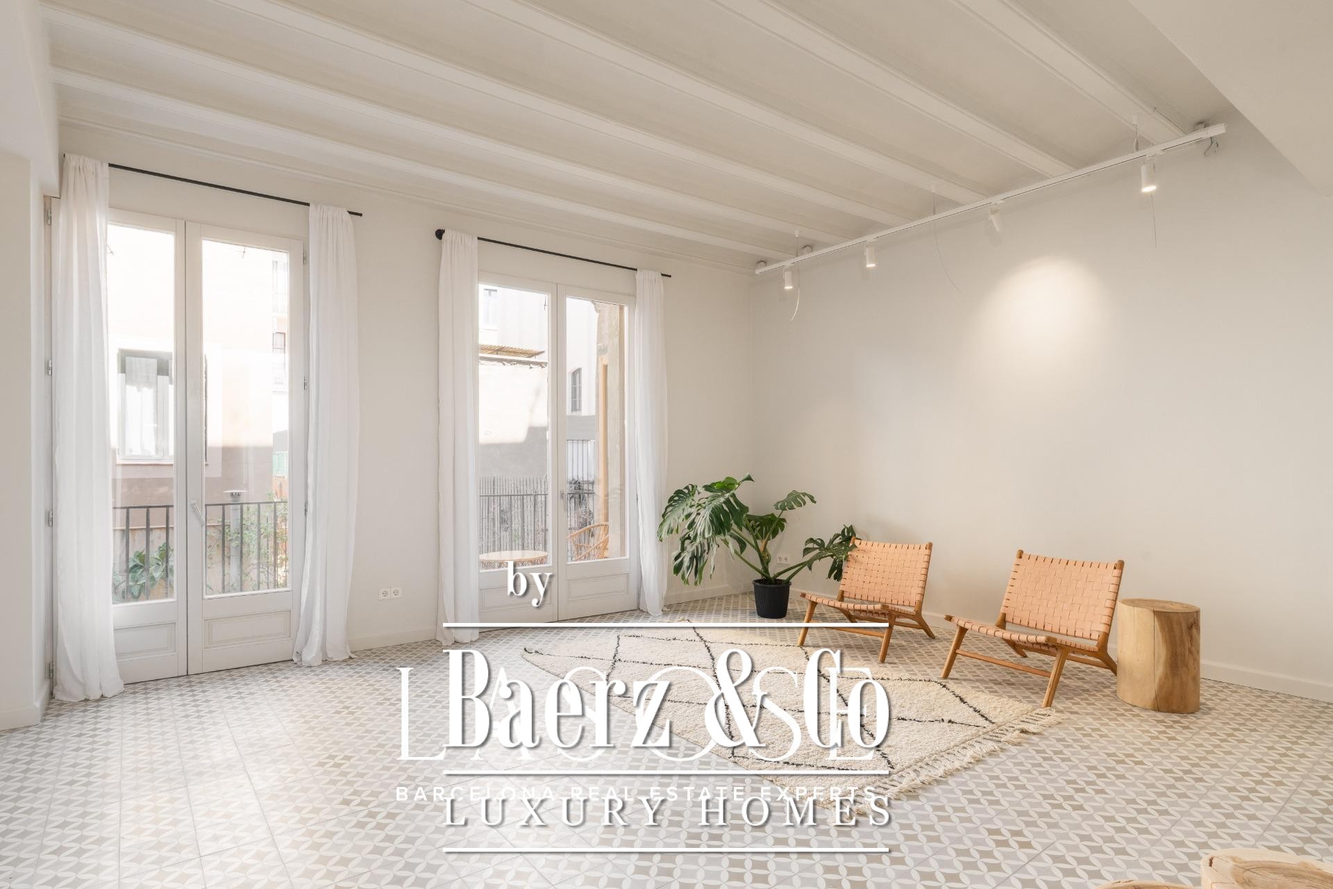 modern finishes. . - Exceptional tranquility, faces a spacious interior courtyard, away from city noise. . - Central ducted air conditioning, heating and cooling for year-round comfort. . - 7 m² balcony and a lovely communal rooftop terrace, perfect spots to relax and enjoy the views. . - Brand-new exterior joinery, premium thermal and acoustic insulation. . . And there’s more! The building has an approved project for elevator installation, a future upgrade that will further enhance the property’s value. . . Living in El Born means enjoying gourmet dining, exclusive boutiques, and a vibrant cultural scene, all just steps from your doorstep. Ready to fall in love with this architectural gem? . Contact us today to schedule a viewing!