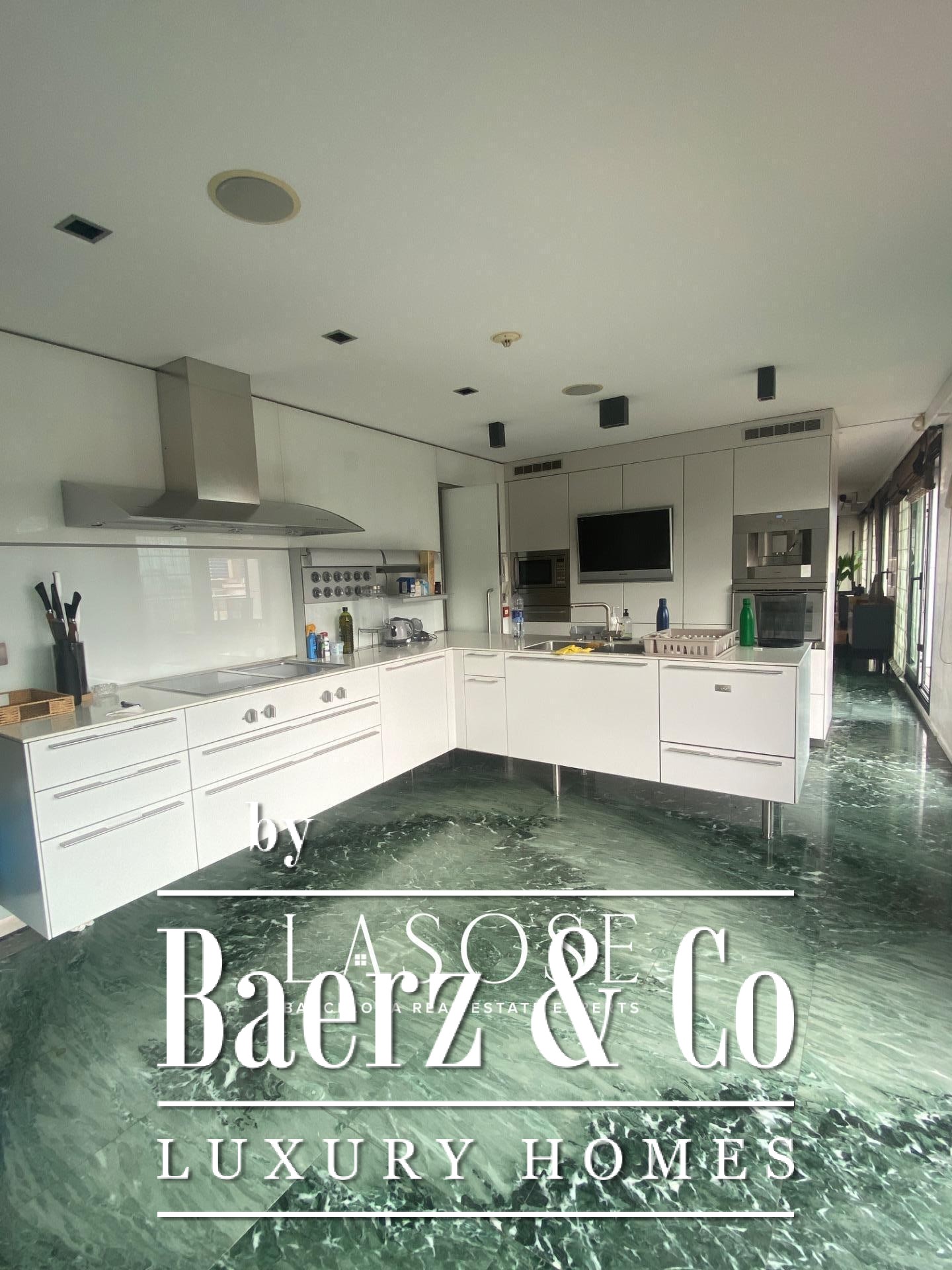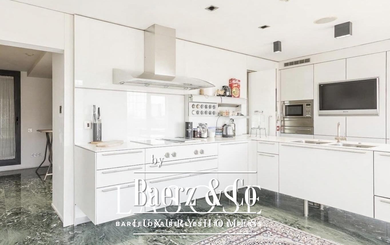 enjoying a quiet evening, this space is designed to impress. This level also features:. . A fully equipped designer kitchen with high-end appliances, double fridge and freezer, built-in coffee machine and TV. . A pantry and a wine cellar for all your culinary needs. . Two spacious double bedrooms, both with their own en-suite bathrooms and ample closet space. . A service bedroom with full bathroom. . Head up to the third floor, and you'll find a true city escape — a stunning rooftop terrace with a heated glass-enclosed swimming pool that opens for summer and closes for winter, plus an additional bathroom for convenience. It's a private retreat with breathtaking 360º views across the entire city.. . Other premium features include ducted air conditioning by floor, motorized blinds and awnings, elegant wood and marble parquet flooring, and two private parking spaces with a storage room in the same building.. . *Location*. . Located between Via Augusta and Travessera de Gràcia, this home is perfectly positioned with immediate access to metro, FGC rail, and bus connections. You'll be steps from charming boutiques, top-rated schools, green spaces, and the vibrant cultural life of the city.. . Don't miss this opportunity to live in one of Barcelona’s most exclusive neighborhoods. This remarkable penthouse is more than a home — it’s a lifestyle. Come and see it for yourself.