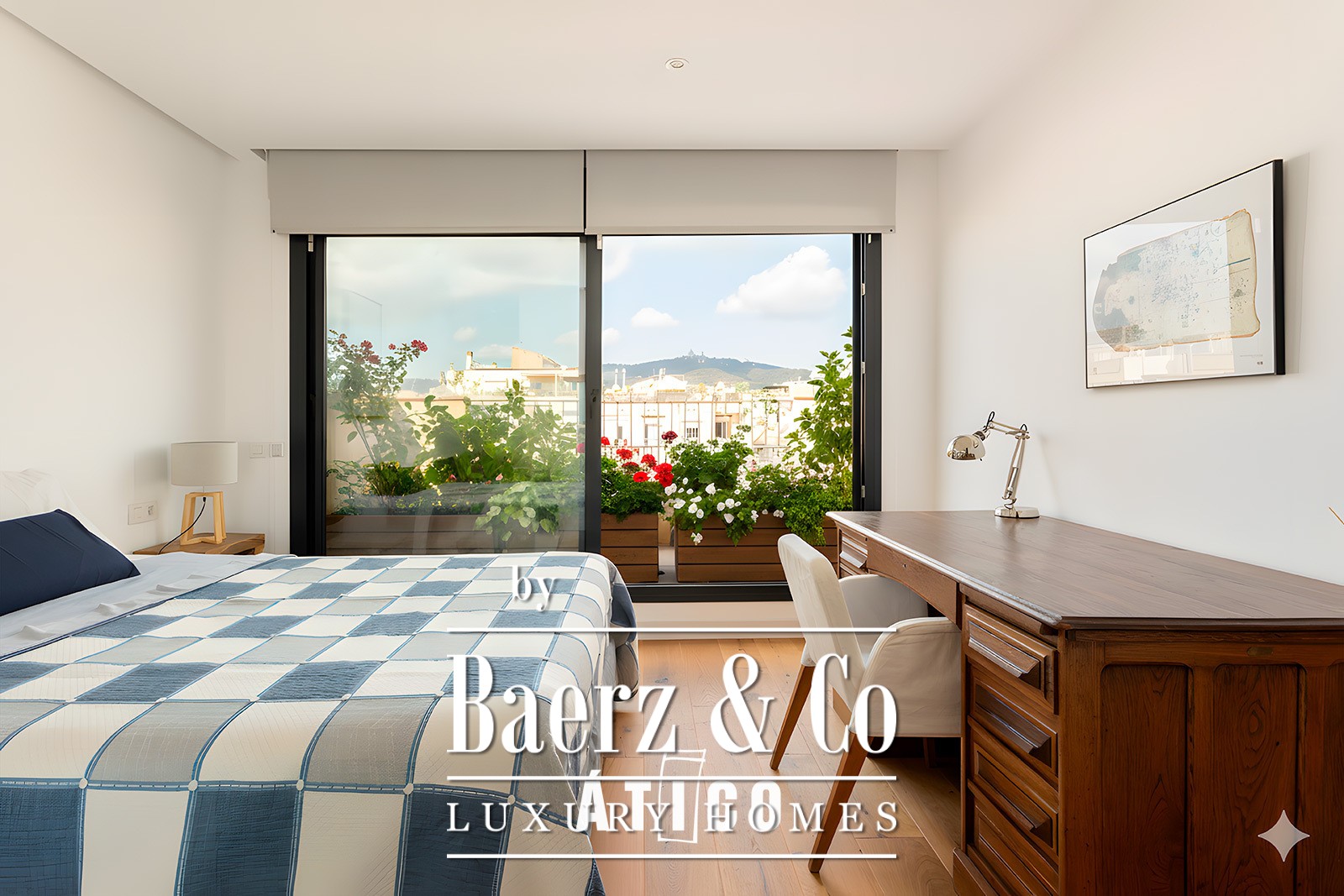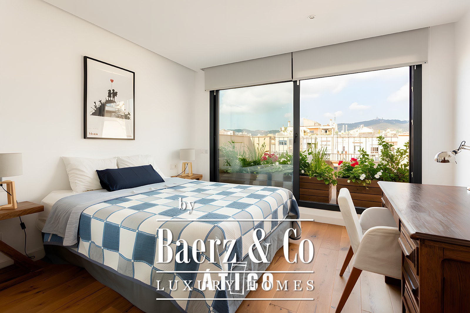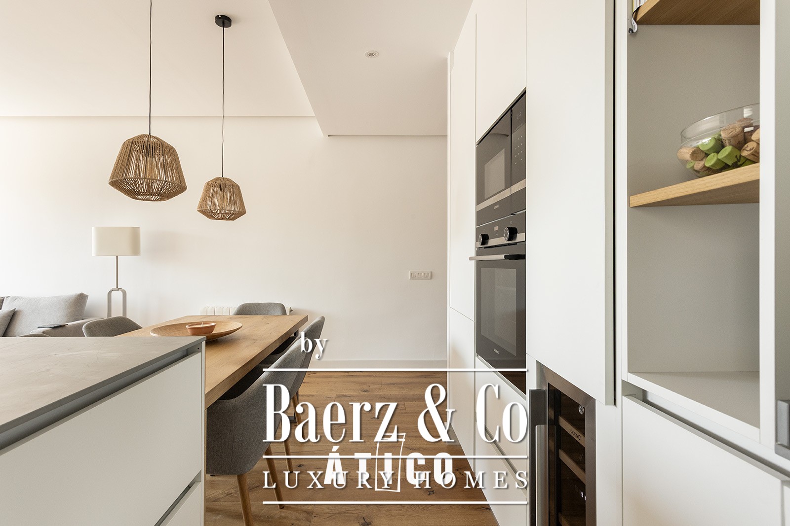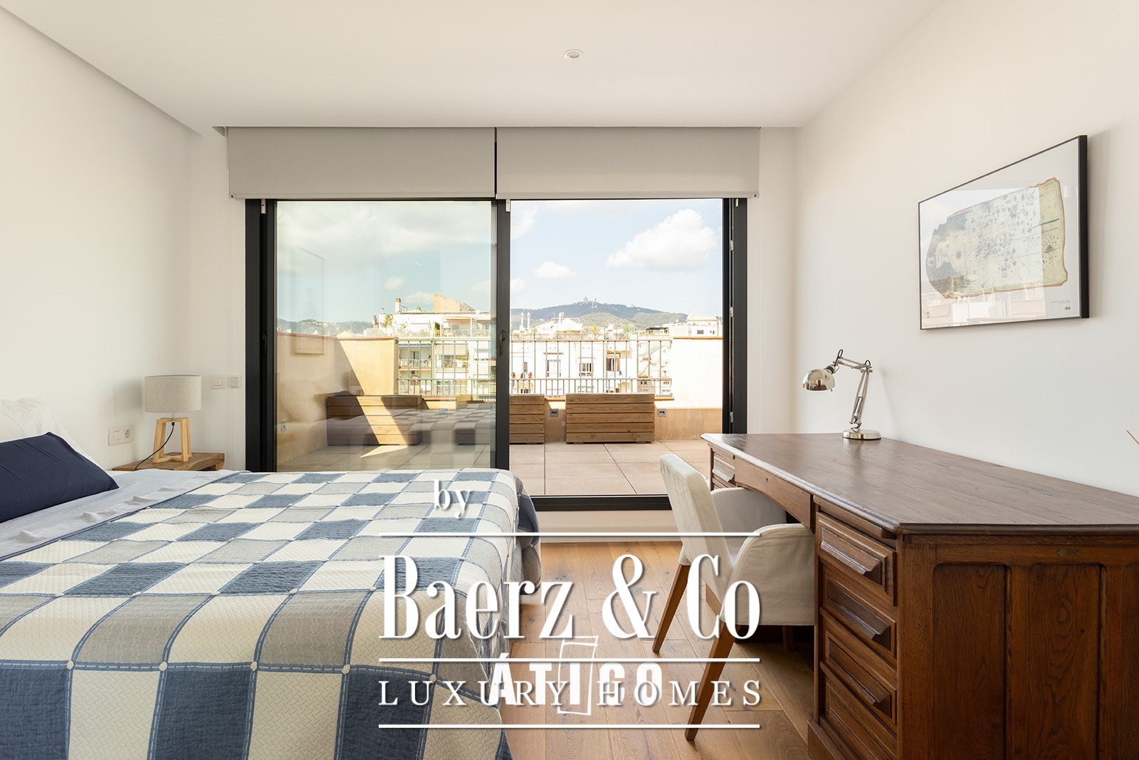 In the Eixample Izquierdo, a step away from Calle Enric Granados, known for its bars, terraces and cosmopolitan atmosphere and just six minutes' walk from the vibrant and elegant Rambla Catalunya, you will find this 104 m² penthouse plus 32 m of terraces. An authentic urban refuge that combines modern comfort with the charm of Barcelona life. Practically new and with an impeccable distribution, this home has been designed to enjoy every corner. The heart of the house is the large living-dining room with open kitchen, an open and welcoming space that extends towards a magnificent 16 m² terrace facing the sea. Enjoying a majestic view that combines the grandeur of the National Palace with the serenity of the Montjuïc mountain. An ideal place to organize dinners, have a drink in the evening or simply let yourself be lifted by the tranquility of the elevated environment. The main suite, spacious and bathed in natural light, has an elegant dressing room and an en suite bathroom. From it there is direct access to a second terrace of 14m², facing Tibidabo and the emblematic "island" of the Eixample, an icon of Barcelona urbanism. This double orientation provides sun throughout the day and unobstructed views that fill the space with calm and clarity. At night, the illuminated silhouette of Tibidabo adds a special charm, turning this stay into an authentic refuge with a serene and privileged atmosphere. The house is completed by a second double bedroom, with natural light and a second bathroom with bathtub, ideal for offering comfort and privacy to guests or to adapt to different needs. The kitchen, modern, functional and bathed in natural light, has custom-made furniture and is fully equipped with high-end appliances, as well as a wine bar, ideal for those who value details and enjoy the art of entertaining at home. The finishes reflect the quality and care