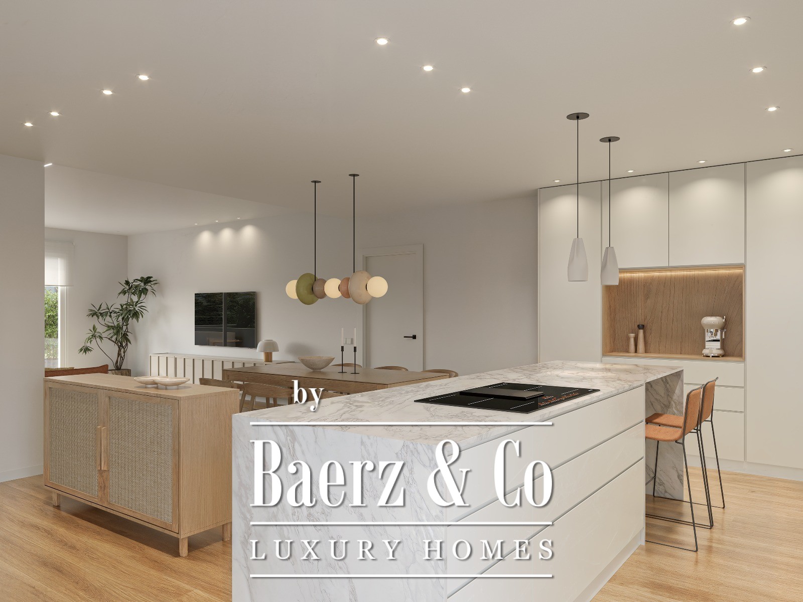 The practical and versatile layout allows for three or four bedrooms, adapting to different lifestyles. The spacious and open living area integrates a designer kitchen with the living-dining room, from which there is direct access to the garden, becoming the heart of the home.