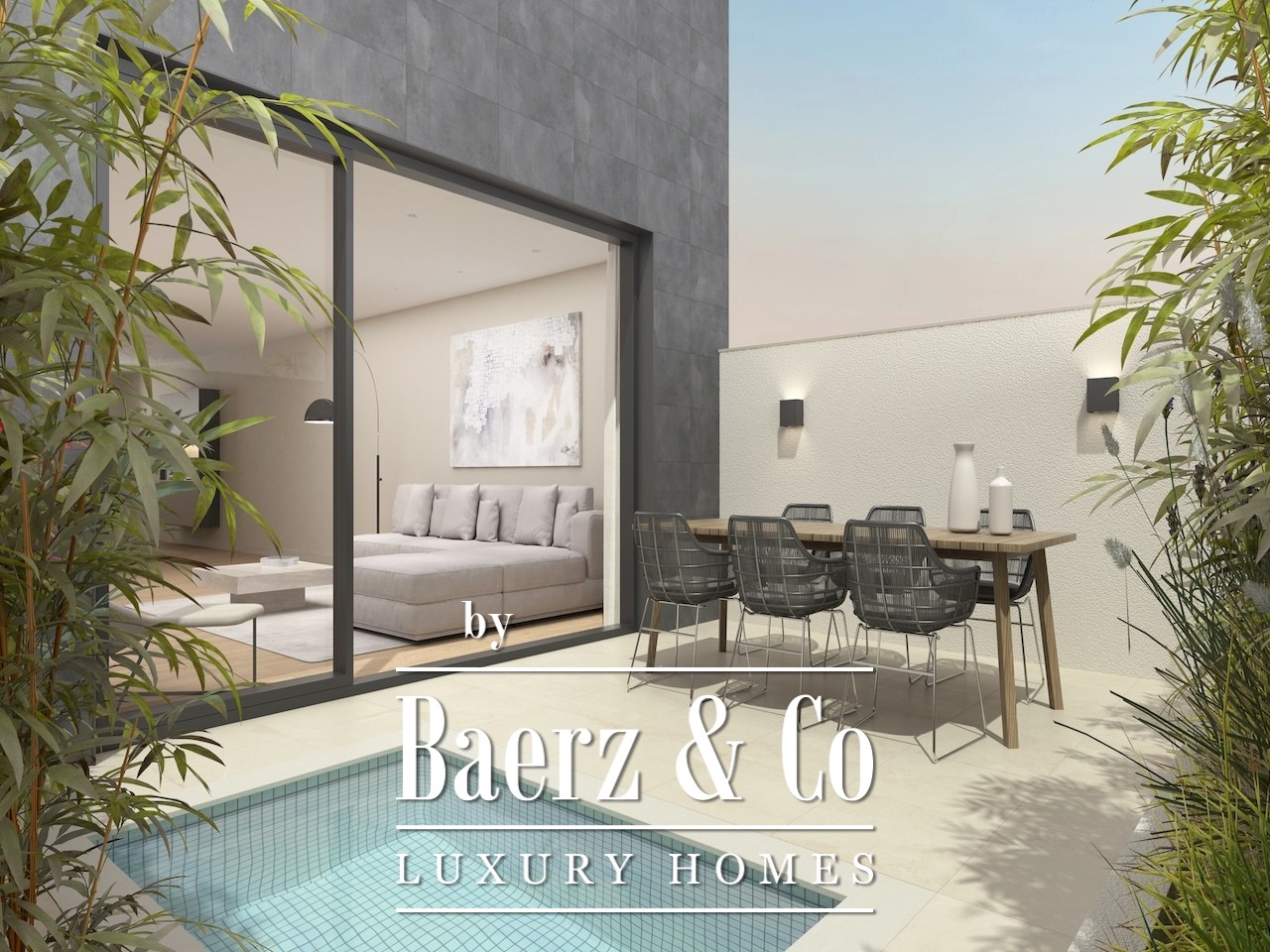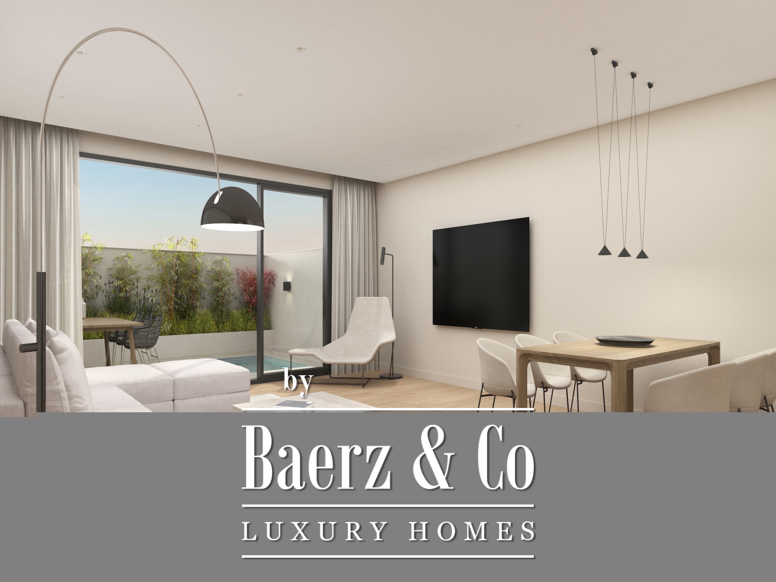 Housed in a newly built project of four exclusive residences, the 127m² duplex spans a ground floor and upper level, introducing light and space through considered design. The main living and dining area—spanning 59.24m²—features an open kitchen and seamless flow to a 22m² private garden, where the possibility of a personal pool offers a further layer of tranquility. Upstairs, two bedrooms comprise a 13m² suite with built-in wardrobe and en-suite, alongside a secondary 8.44m² bedroom and adjacent full bathroom. Every room is exterior facing, ensuring natural light throughout.