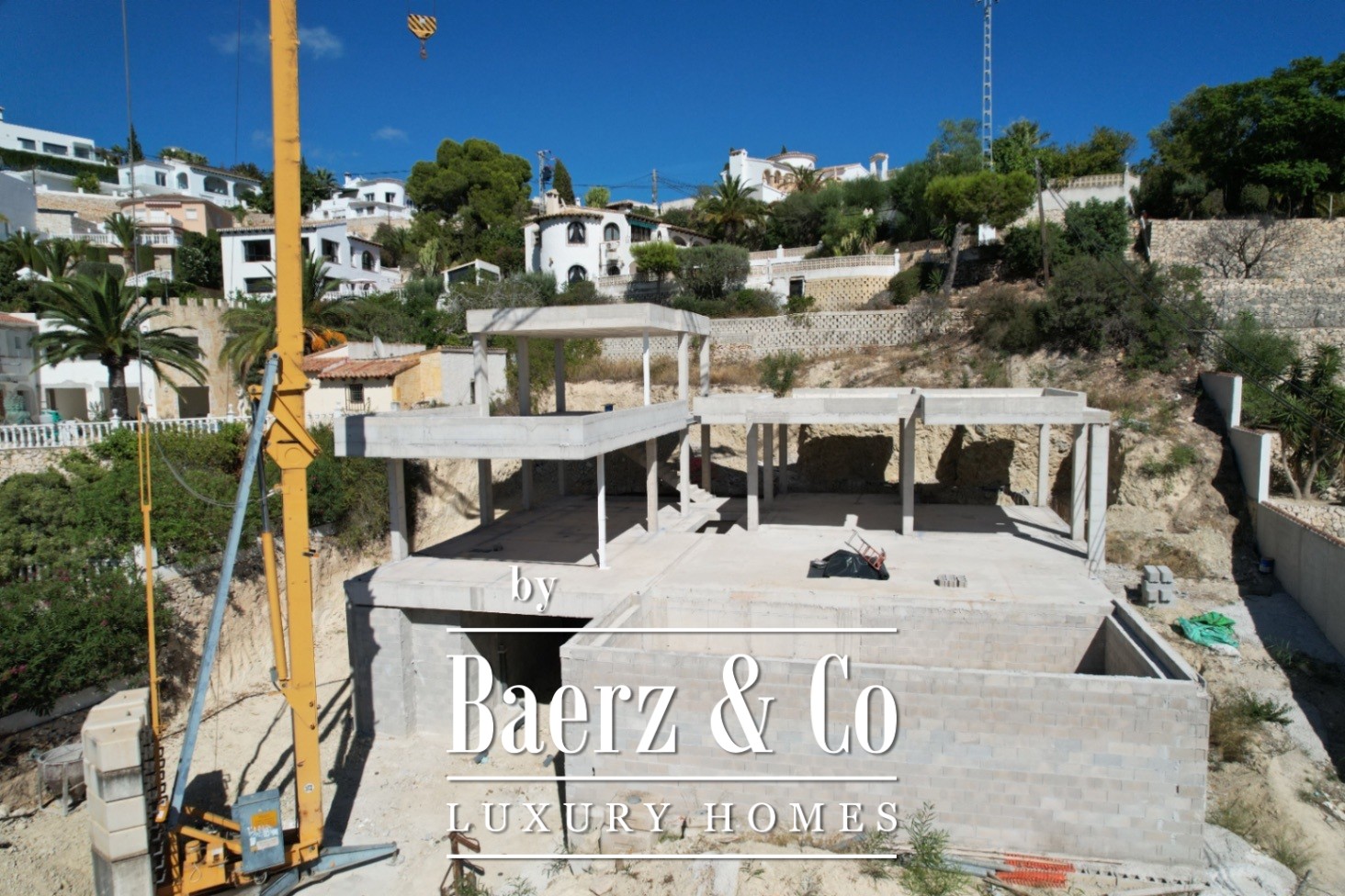 Located in a quiet cul-de-sac in the exclusive San Jaime urbanization in Benissa, this project offers sea views and enviable tranquility, allowing residents to enjoy their privacy amidst an idyllic setting. The charming environment not only provides natural beauty but also proximity to essential and recreational spots. The renowned San Jaime golf course is just a stone's throw away, while the well-known supermarket Pepe La Sal caters to all your daily needs. This remarkable villa is designed over three elegant floors, achieving a perfect balance between style, comfort, and functionality. - ENTRY FLOOR: Upon entering, you are greeted by an area with the garage, laundry room, and technical room. This thoughtfully designed space ensures that practical aspects of life are seamlessly integrated without compromising on style. - GROUND FLOOR: As you proceed to the living room, you are enveloped in a world of elegance and comfort. The open living/dining/kitchen area exudes a welcoming atmosphere, ideal for family gatherings or entertaining guests. Additionally, this floor features two spacious
