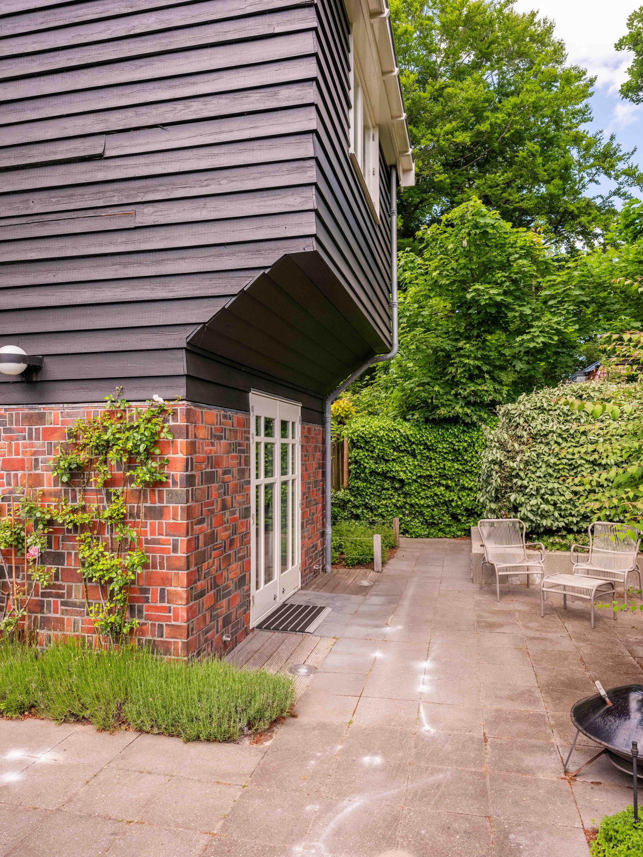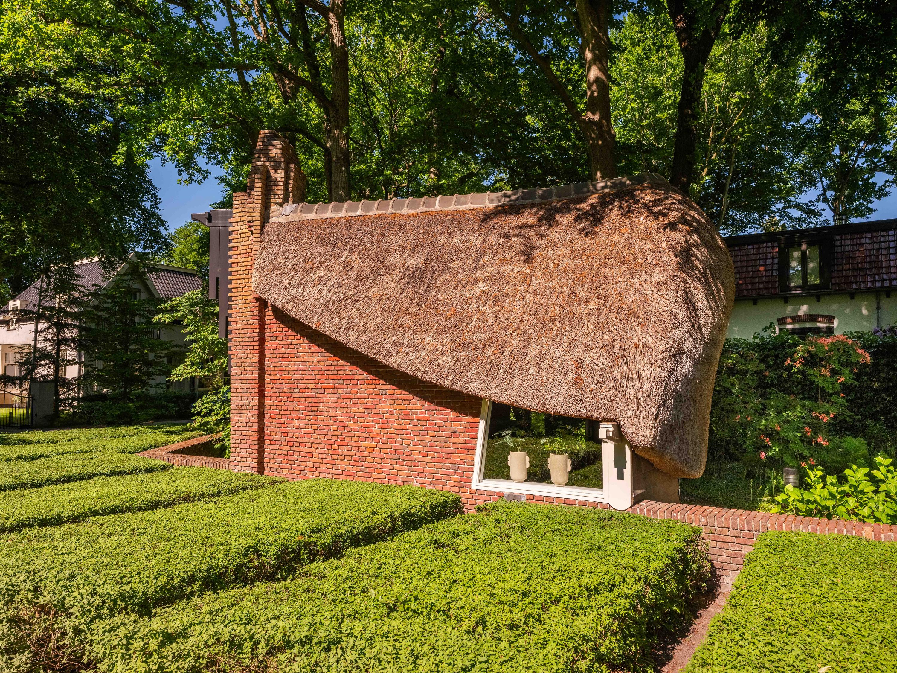 The icing on the cake is the ‘entrance’ cottage, located at the front of the plot, between the privet hedges. This characteristic building with a thatched roof evokes the image of a ‘sloop moored to the Ark’. A delightful workplace with authentic Amsterdam School elements.