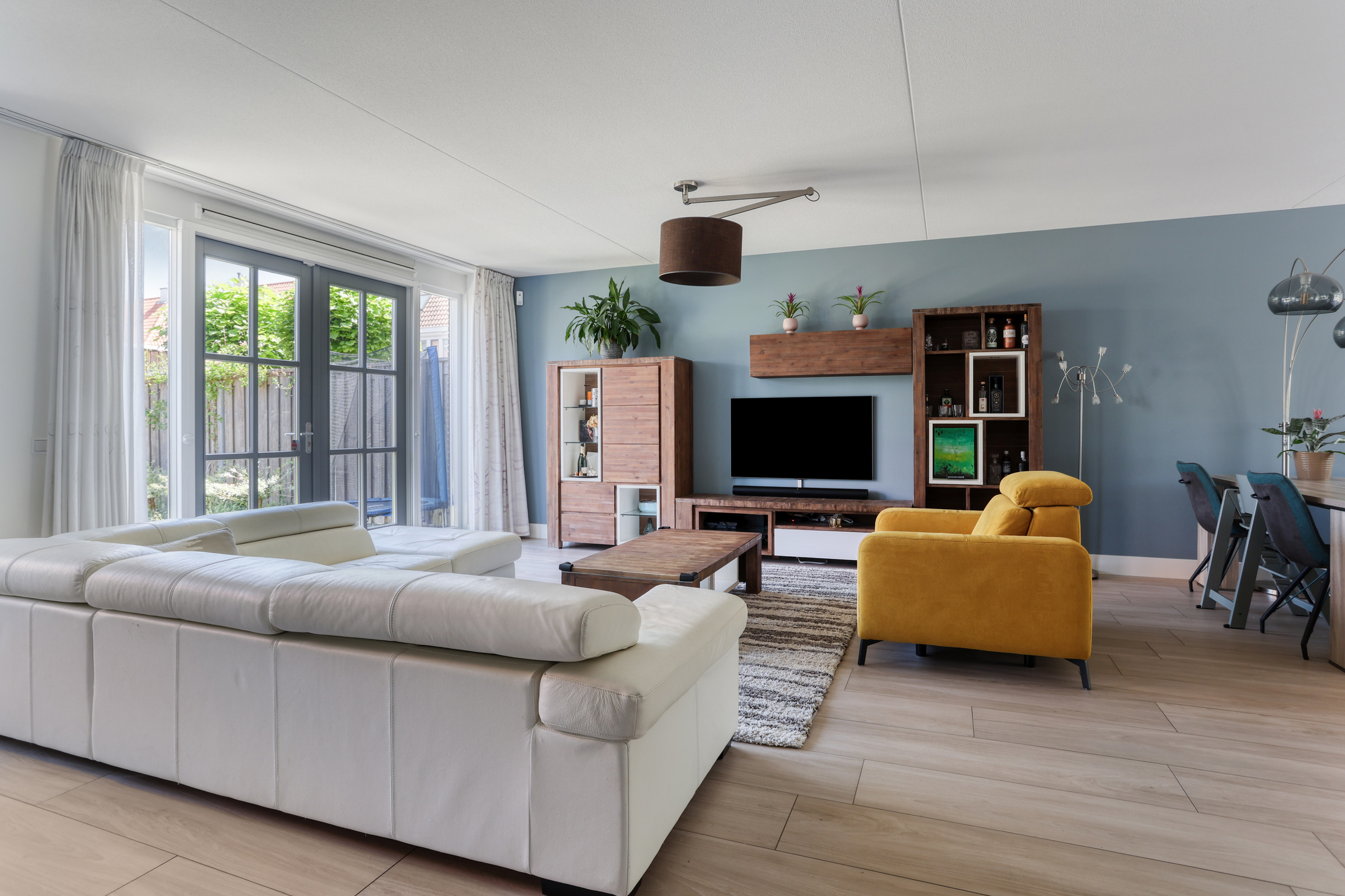 The property features a modern open kitchen and bathroom, five spacious bedrooms, and a private driveway with space for two cars. From the kitchen window, you have a direct view of the large playground in front of the house—ideal for families with young children. The street itself is car-free, contributing to a safe and peaceful living environment.