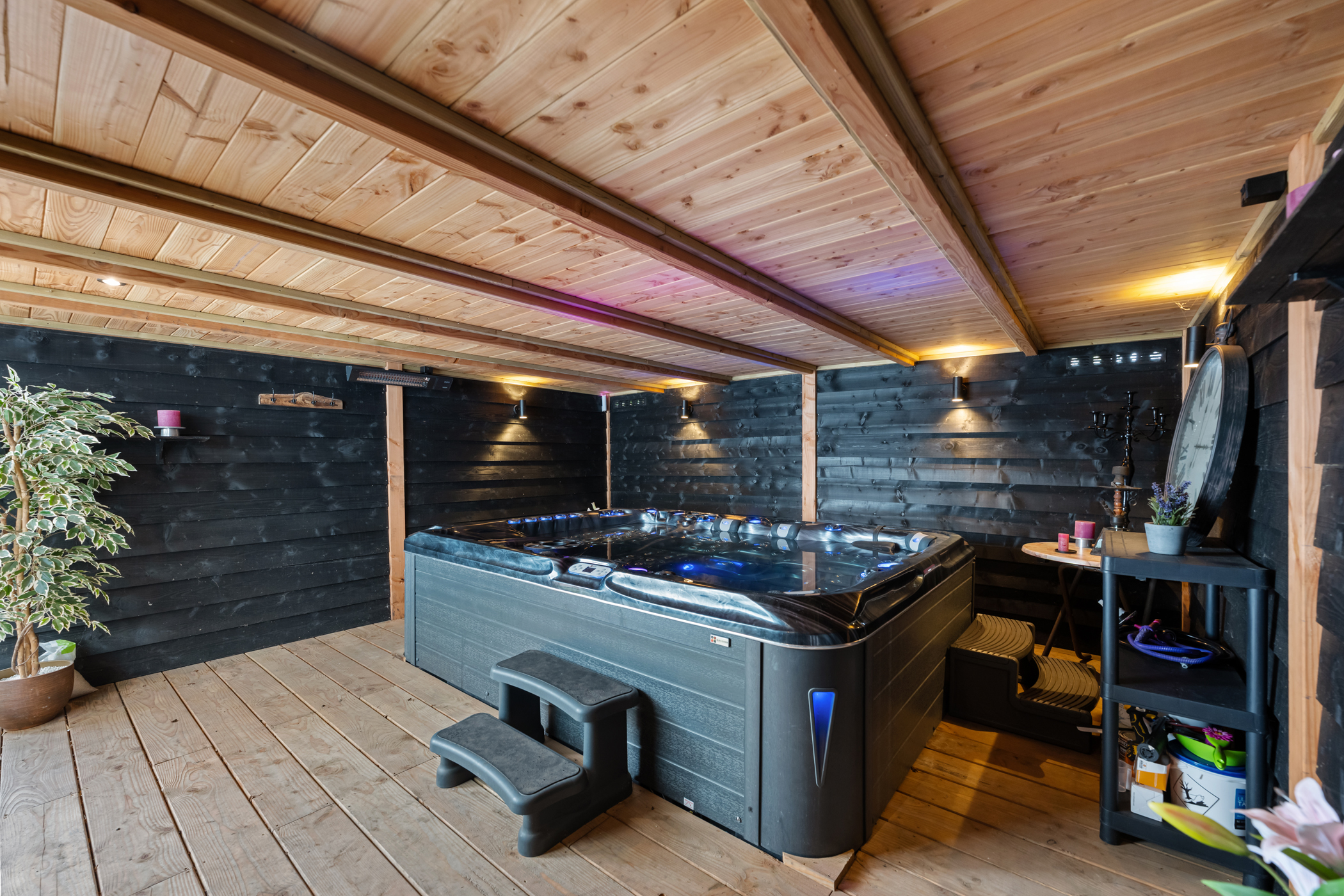 The expansive grounds offer both sunny and secluded garden zones, an outdoor area with canopy and jacuzzi, and private gated parking. Everyday amenities are all within walking distance, ensuring a peaceful yet central lifestyle. This property brings together tranquility, architectural grandeur, and proximity to daily life—all in one exceptional villa.