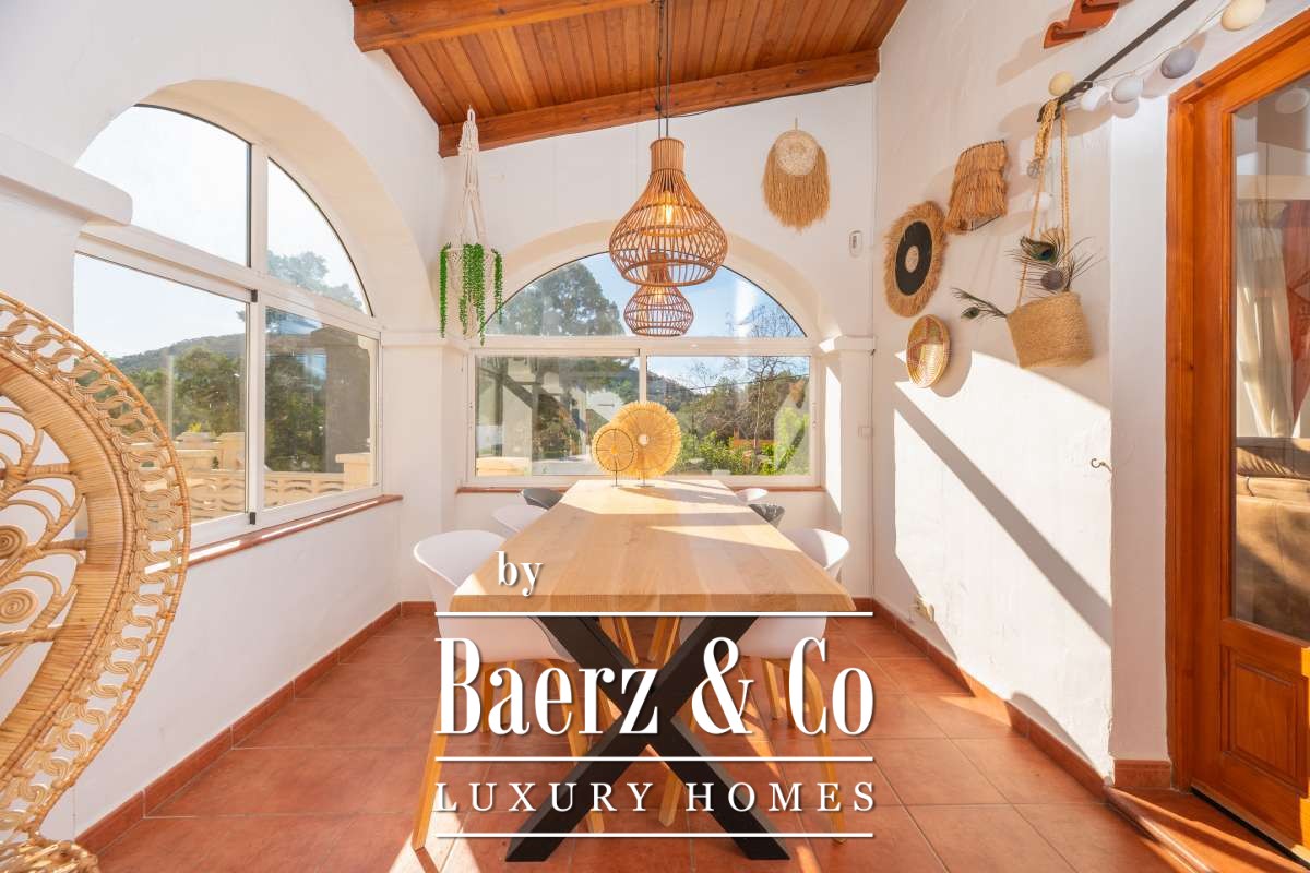The outdoor world here is as inviting as the interior. Multiple terraces and a private pool are surrounded by citrus trees and mature gardens, offering unbroken privacy for afternoons in the sun or evenings with friends. From the roof terrace or poolside, forest and mountain views settle into the horizon, framing every moment with a sense of calm. Air conditioning, heating, an alarm system, and technology ensure comfort in all seasons. Beaches, restaurants, clubs, and shops are just minutes away, yet the ambiance remains grounded in authenticity and peace.