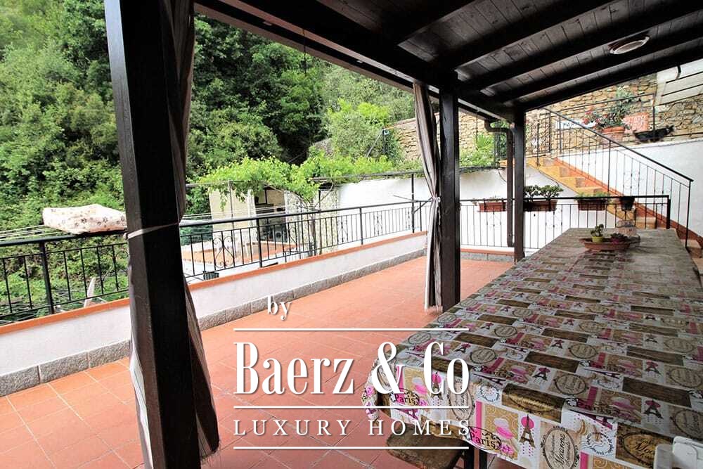 On the sunny edge of the charming village of Camporosso, surrounded by olive groves and Mediterranean tranquility, lies this spacious villa with panoramic views of the valley and the sea. Thanks to its location at the end of a dead-end road, you can enjoy complete privacy here, while all the amenities of the village are still close by.