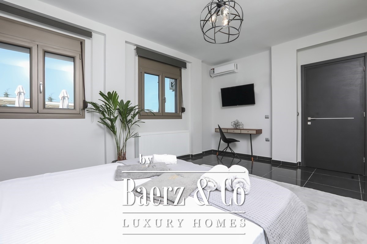 This property opens with two independent ground-floor apartments, each thoughtfully designed for autonomy and privacy. The main maisonette spans the first and second floors, featuring an expansive living zone, state-of-the-art kitchen, and a sequence of luminous bedrooms opening to semi-outdoor spaces that invite in sea breezes and landscape views. Five bathrooms are distributed across the home for comfort.
