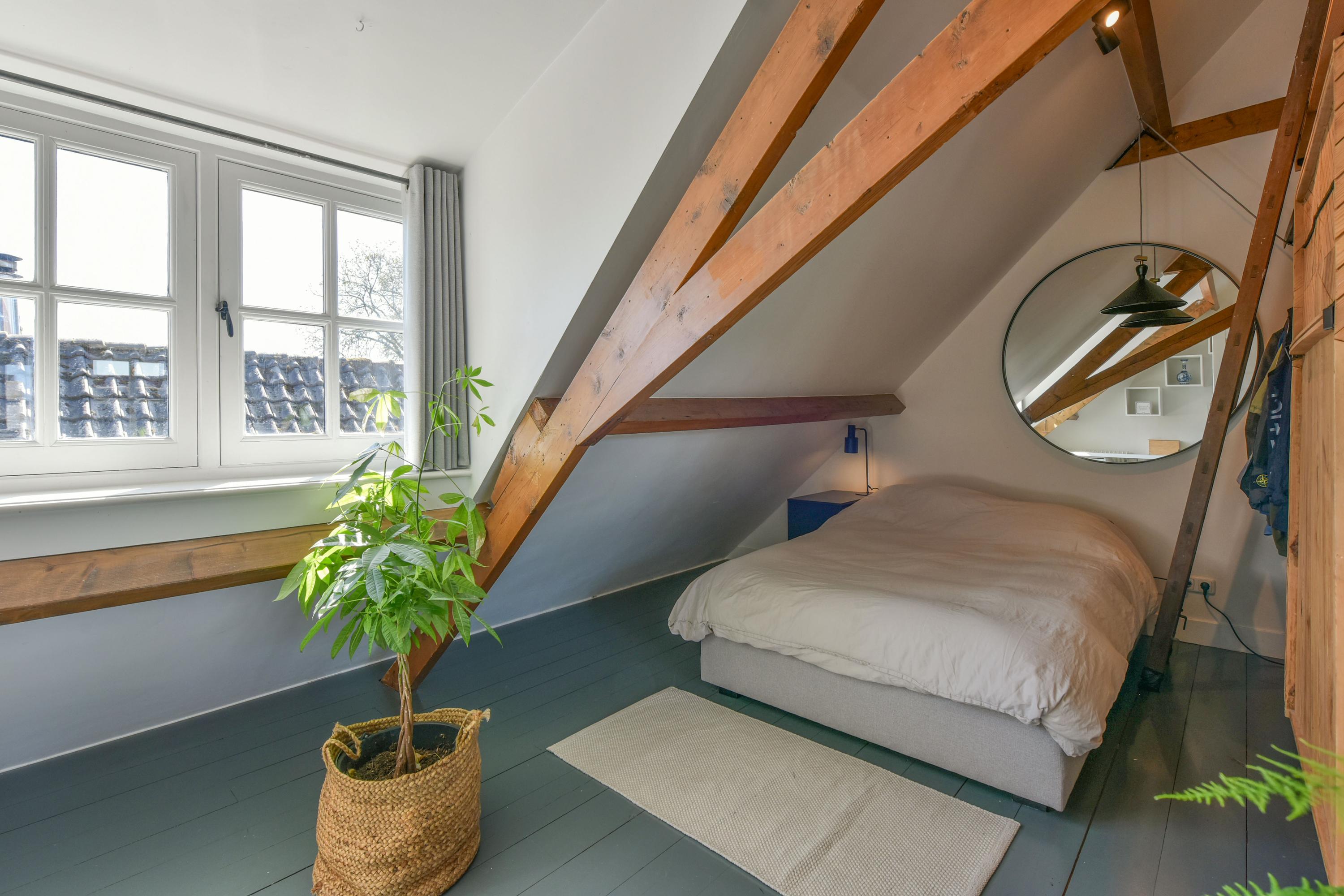 The raised room (“opkamer”) is reached via a staircase, under which you'll find the original cheese cellar. A clever bit of craftsmanship: part of the staircase lifts to reveal the cellar, where original wooden cheese trays remain – silent witnesses to the home’s artisanal past. The room above exudes atmosphere and history, making it perfect as a cozy TV room, home office, or playroom.