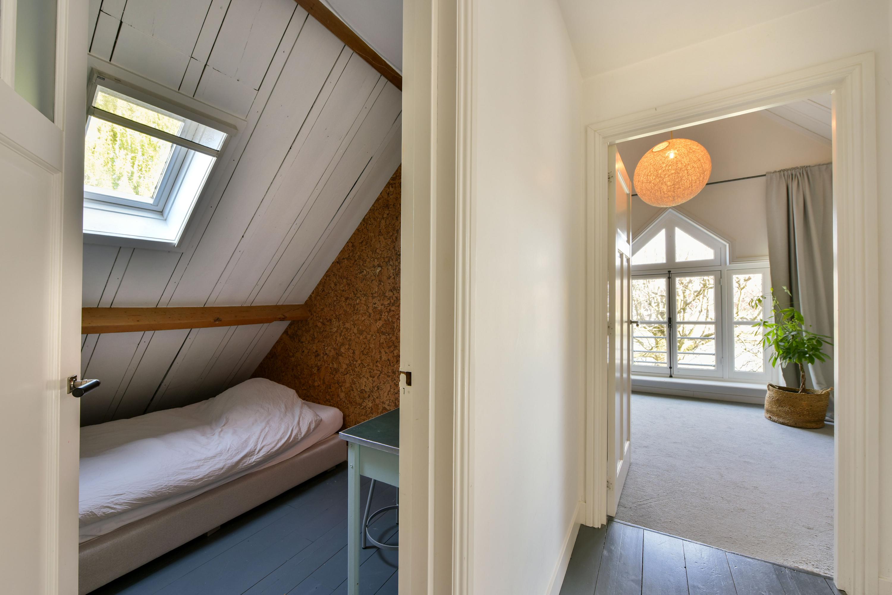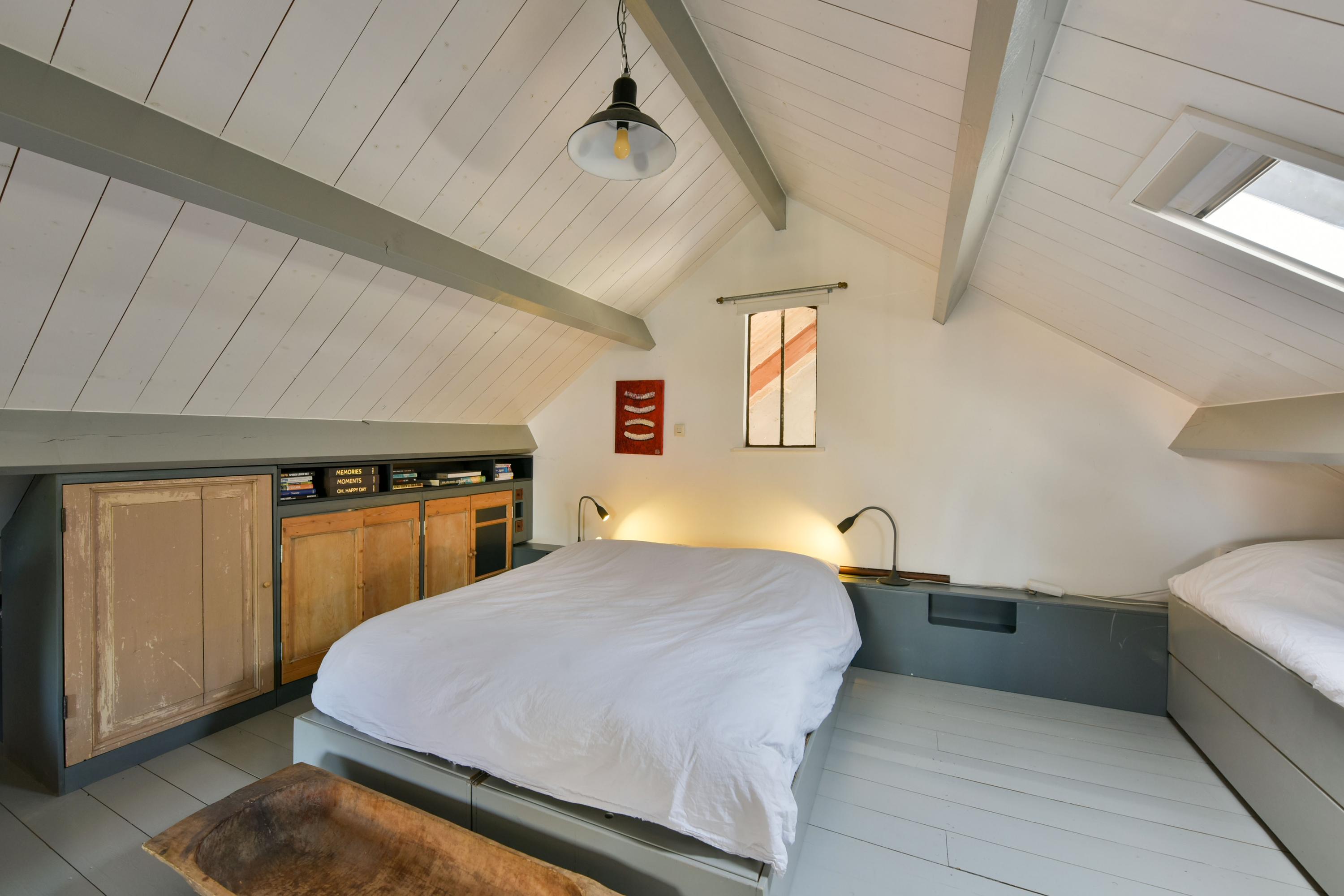 Another bedroom with dormer window features a custom wardrobe – a work of art in itself, designed by artist Daan van den Berg. This room combines practical use with artistic flair.